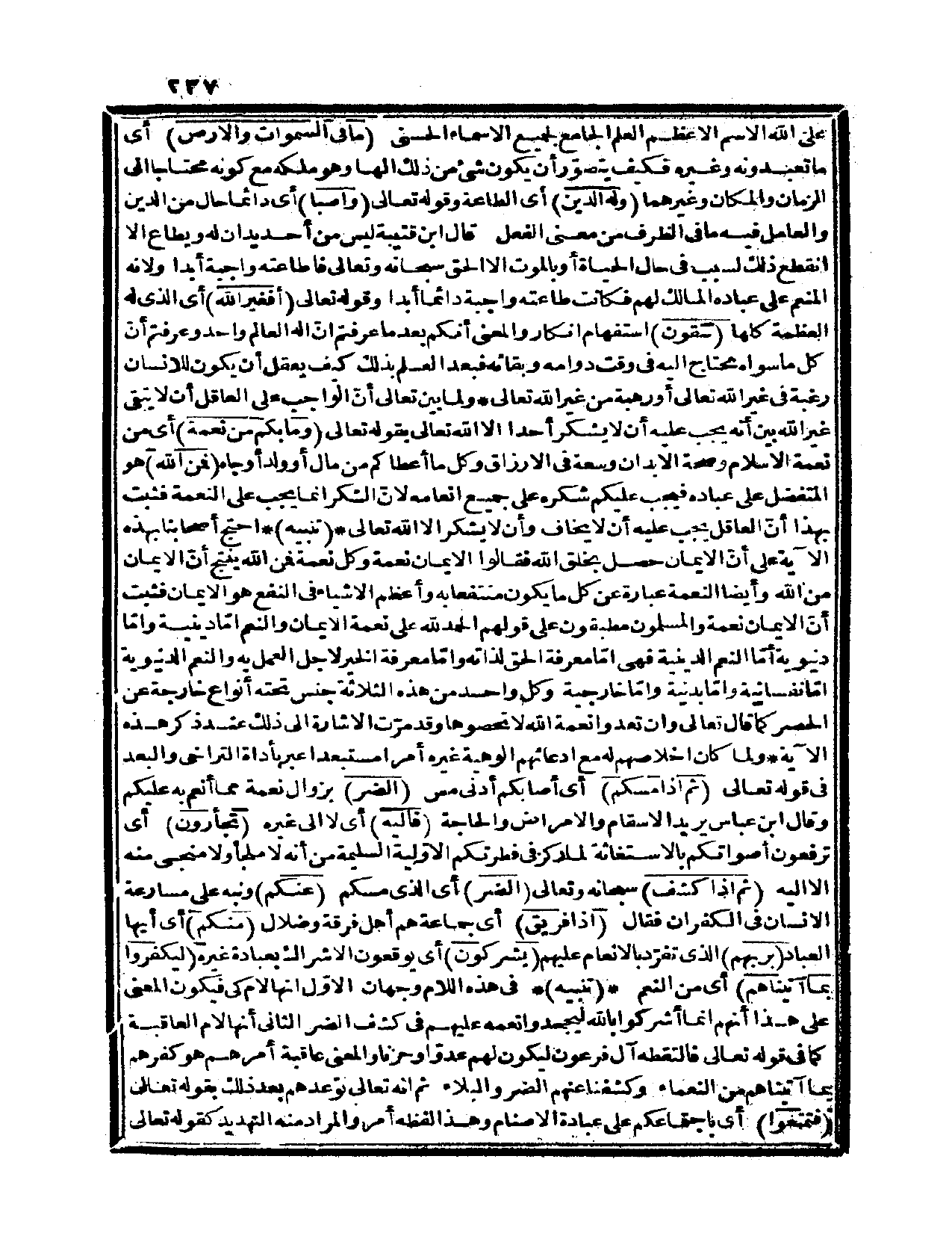 نفسانية وإمّا بدنية وإمّا خارجية، وكل واحد من هذه الثلاثة جنس تحته أنواع خارجة عن الحصر. كما قال تعالى: {وإن تعدوا نعمة الله لا تحصوها} (إبراهيم، 34)