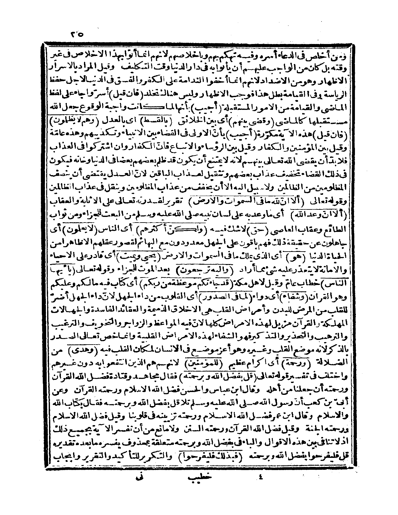 فإن قيل: هذه الآية مكرّرة؟ أجيب: بأنّ الأولى في القضاء بين الأنبياء وتكذيبهم وهذه عامّة. وقيل: بين المؤمنين والكفار. وقيل: بين الرؤساء والأتباع، فإنّ الكفار وإن اشتركوا في العذاب فلا بدّ أن يقضي الله تعالى بينهم؛ لأنه لا يمتنع أن يكون قد ظلم بعضهم بعضاً في الدنيا وخانه، فيكون في ذلك القضاء تخفيف عذاب بعضهم وتثقيل لعذاب الباقين؛ لأنّ العدل يقتضي أن ينصف المظلومين من الظالمين، ولا سبيل إليه إلا أن يخفف من عذاب المظلومين، ويثقل في عذاب الظالمين. وقوله تعالى:
