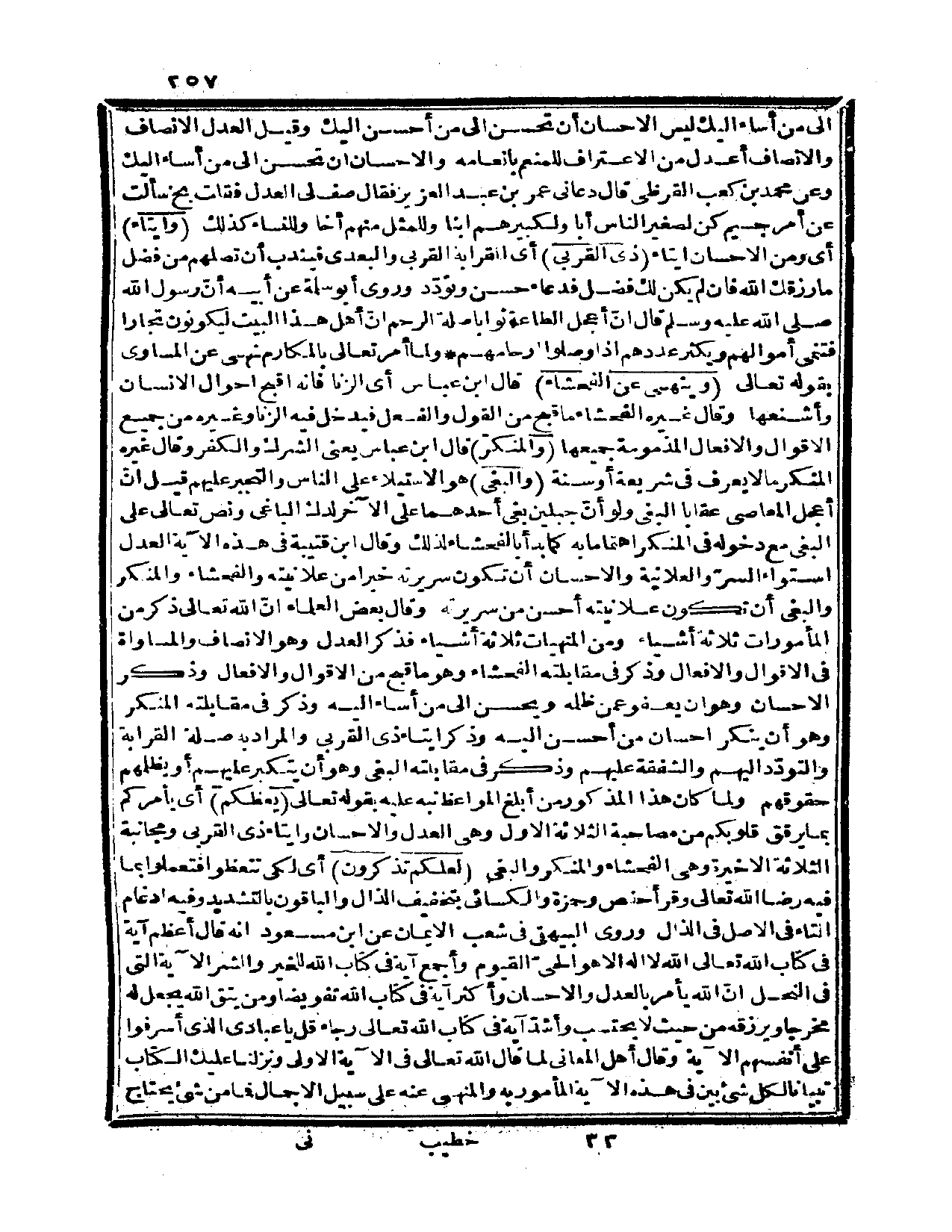 وأجمع آية في كتاب الله للخير والشر الآية التي في النحل: {إنّ الله يأمر بالعدل والإحسان} وأكثر آية في كتاب الله تفويضاً: {ومن يتق الله يجعل له مخرجاً ويرزقه من حيث لا يحتسب} (الطلاق: 2، 3)