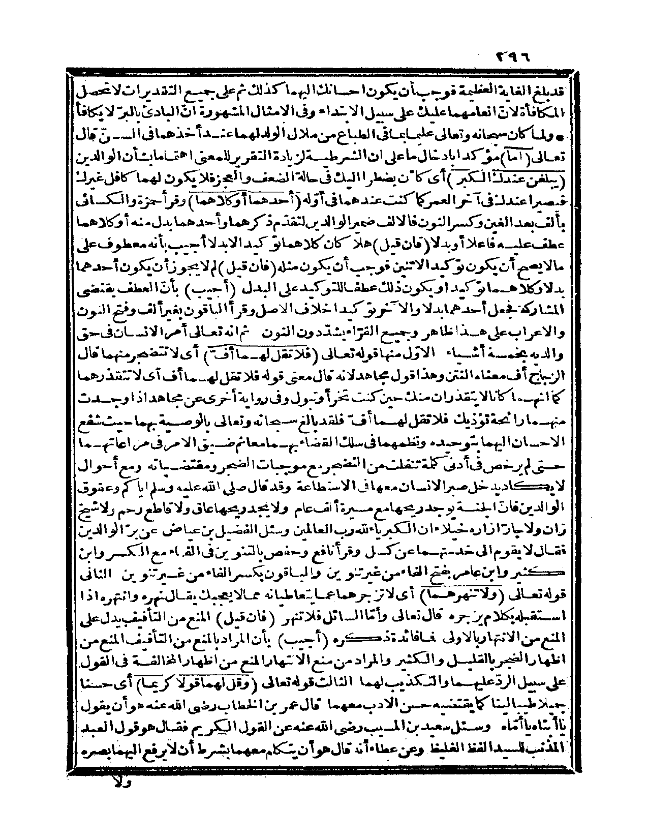 قد بلغ الغاية العظيمة فوجب أن يكون إحسانك إليهما كذلك ثم على جميع التقديرات لا تحصل المكافأة لأن إنعامهما عليك على سبيل الابتداء. وفي الأمثال المشهورة أنّ البادئ بالبرّ لا يكافأ.