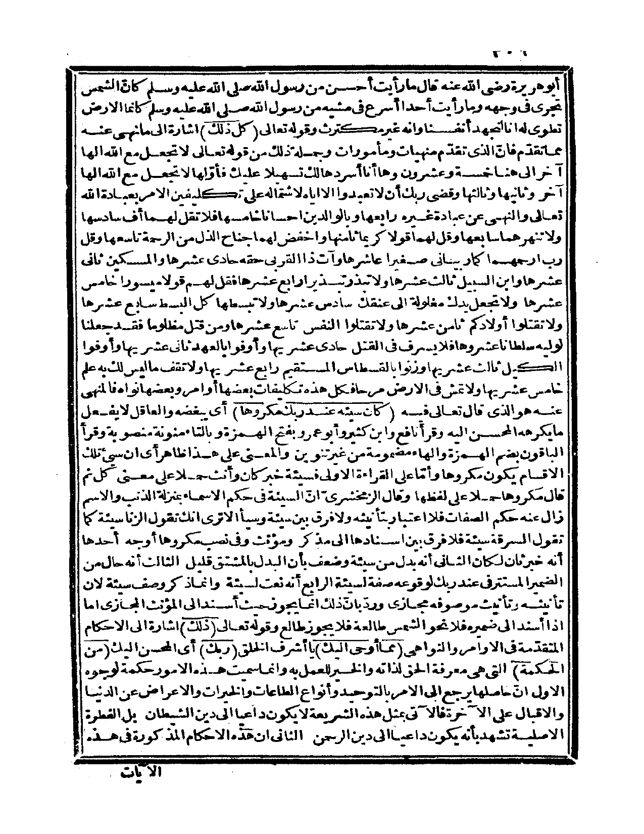 إلى هنا خمسة وعشرون وها أنا أسردها لك تسهيلاً عليك. فأوّلها: {لا تجعل مع الله إلهاً آخر} (الإسراء، 22)