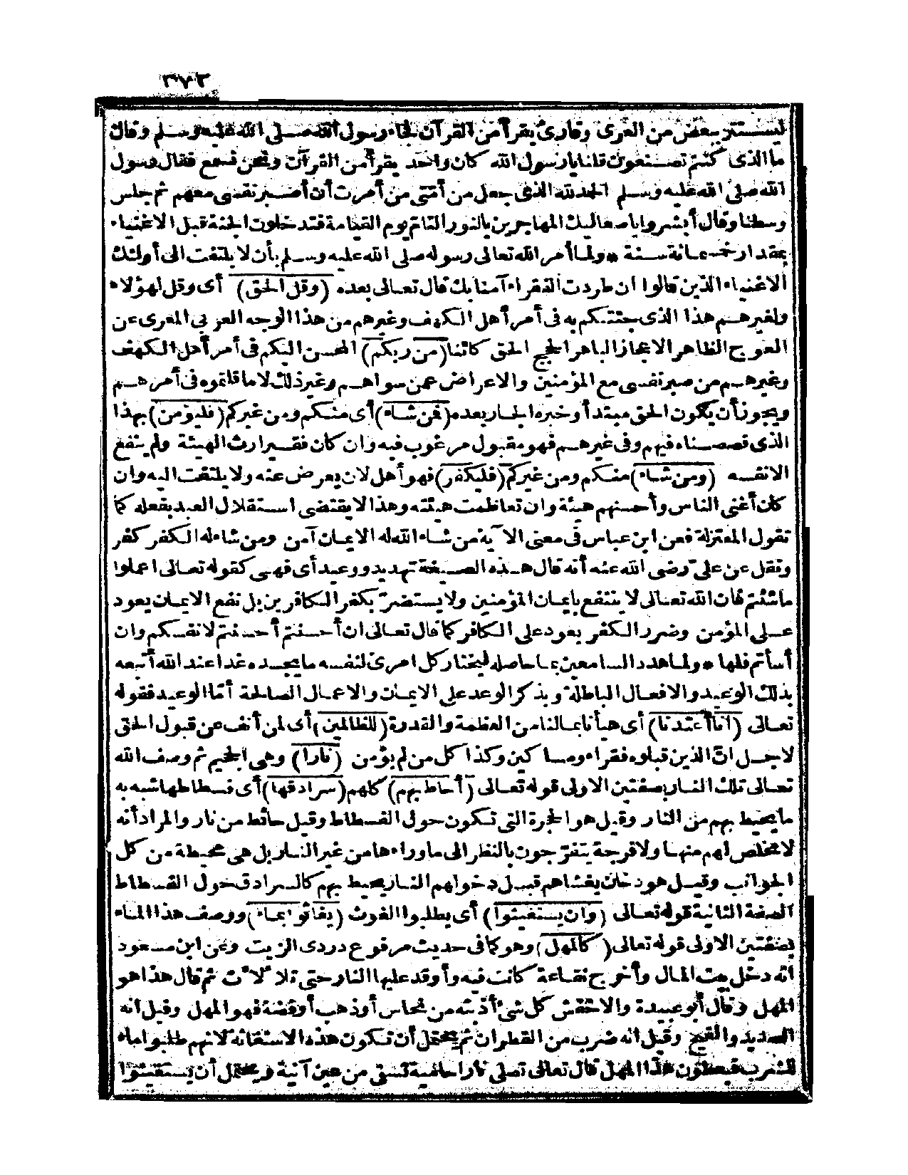 ليستتر ببعض من العري وقارئ يقرأ من القرآن فجاء رسول الله صلى الله عليه وسلم وقال: «ما الذي كنتم تصنعون؟ قلنا: يا رسول الله كان واحد يقرأ من القرآن ونحن نسمع فقال رسول الله صلى الله عليه وسلم الحمد لله الذي جعل من أمّتي من أمرت أن أصبر نفسي معهم ثم جلس وسطنا وقال: أبشروا يا صعاليك المهاجرين بالنور التامّ يوم القيامة فتدخلون الجنة قبل الأغنياء بمقدار خمسمائة سنة» . ولما أمر الله تعالى رسوله صلى الله عليه وسلم بأن لا يلتفت إلى أولئك الأغنياء الذين قالوا: إن طردت الفقراء آمنا بك. قال تعالى بعده: