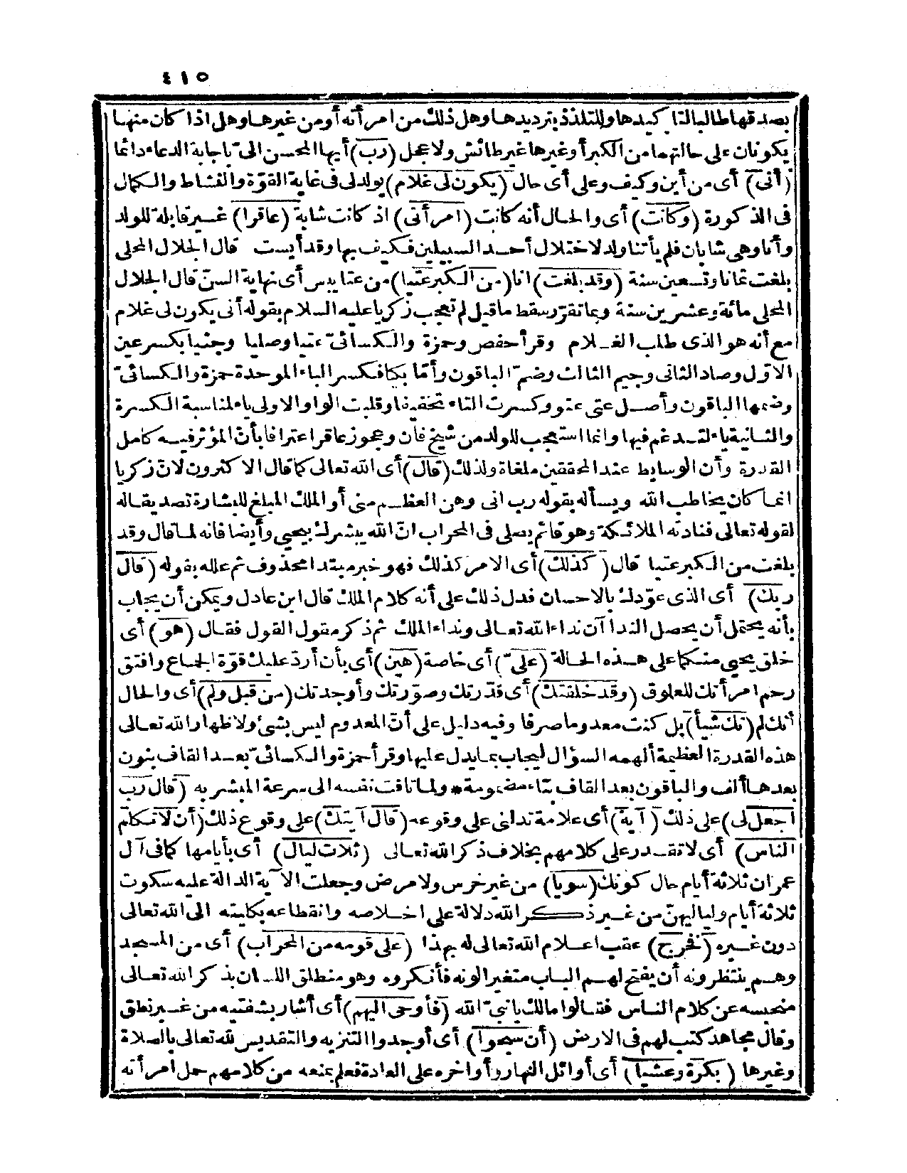 بصدقها طالباً لتأكيدها وللتلذذ بترديدها وهل ذلك من امرأته أو من غيرها؟ وهل إذا كان منها يكونان على حالتهما من الكبر أو غيرها غير طائش ولا عجل؟ {رب} أيها المحسن إليّ بإجابة الدعاء دائماً {أنّى} أي: من أين وكيف وعلى أي: حال {يكون لي غلام} يولد في غاية القوة والنشاط والكمال في الذكورة {وكانت} أي والحال أنه كانت {امرأتي} إذ كانت شابة {عاقراً} غير قابلة للولد وأنا وهي شابان فلم يأتنا ولد لاختلال أحد السبيلين فكيف بها وقد أيست؟ قال الجلال المحلي: بلغت ثماناً وتسعين سنة {وقد بلغت} أنا {من الكبر عتياً} من عتا يبس أي: نهاية السنّ، قال الجلال المحلي: مائة وعشرين سنة وبما تقرر سقط ما قيل لم تعجب زكريا عليه السلام بقوله: أنى يكون لي غلام مع أنه هو الذي طلب الغلام، وقرأ حفص وحمزة والكسائي عتياً وصلياً وجثياً بكسر عين الأوّل وصاد الثاني وجيم الثالث وضم الباقون، وأما بكياً فكسر الباء الموحدة حمزة والكسائي وضمها الباقون، وأصل عتي عتو وكسرت التاء تخفيفاً وقلبت الواو الأولى ياء لمناسبة الكسرة، والثانية ياء لتدغم فيها وإنما استعجب للولد من شيخ فان وعجوز عاقر اعترافاً بأن المؤثر فيه كامل القدرة وأن الوسايط عند المحققين ملغاة ولذلك