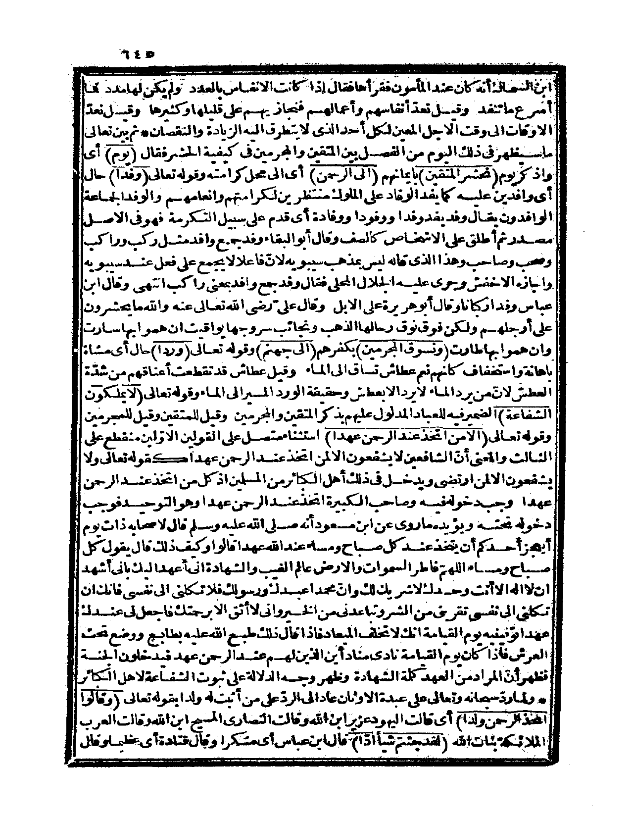 ابن السماك أنه كان عند المأمون فقرأها فقال إذا كانت الأنفاس بالعدد ولم يكن لها مدد فما أسرع ما تنفد، وقيل: نعدّ أنفاسهم وأعمالهم فنجازيهم على قليلها وكثيرها، وقيل نعدّ الأوقات إلى وقت الأجل المعين لكل أحد الذي لا يتطرق إليه الزيادة والنقصان. ثم بيّن تعالى ما سيظهر في ذلك اليوم من الفصل بين المتقين والمجرمين في كيفية الحشر فقال: