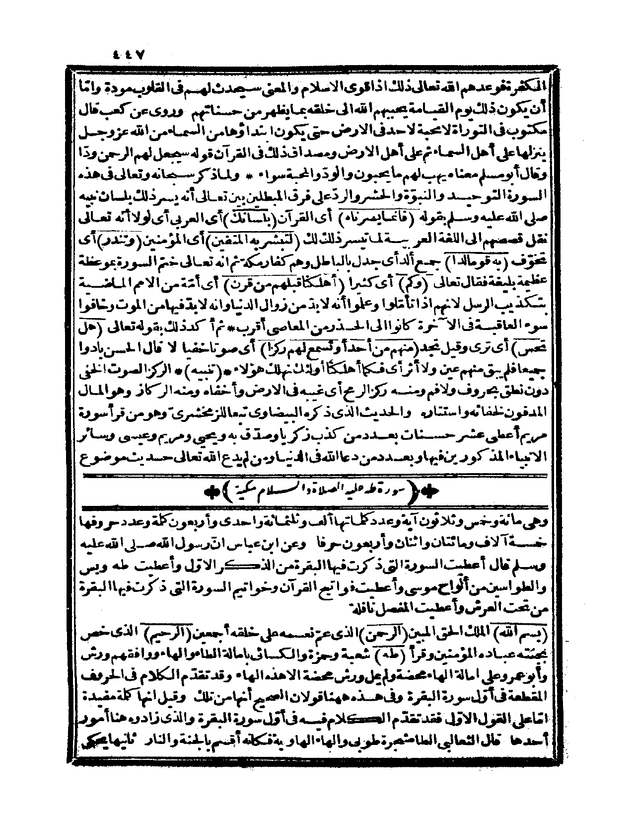 وهي مائة وخمس وثلاثون آية وعدد كلماتها ألف وثلاثمائة وإحدى وأربعون كلمة وعدد حروفها خمسة آلاف ومائتان واثنان وأربعون حرفاً وعن ابن عباس أنّ رسول الله صلى الله عليه وسلم قال: أعطيت السورة التي ذكرت فيها البقرة من الذكر الأوّل وأعطيت طه ويس والطواسين من ألواح موسى وأعطيت فواتيح القرآن وخواتيم السورة التي ذكرت فيها البقرة من تحت العرش وأعطيت المفصل نافلة» .