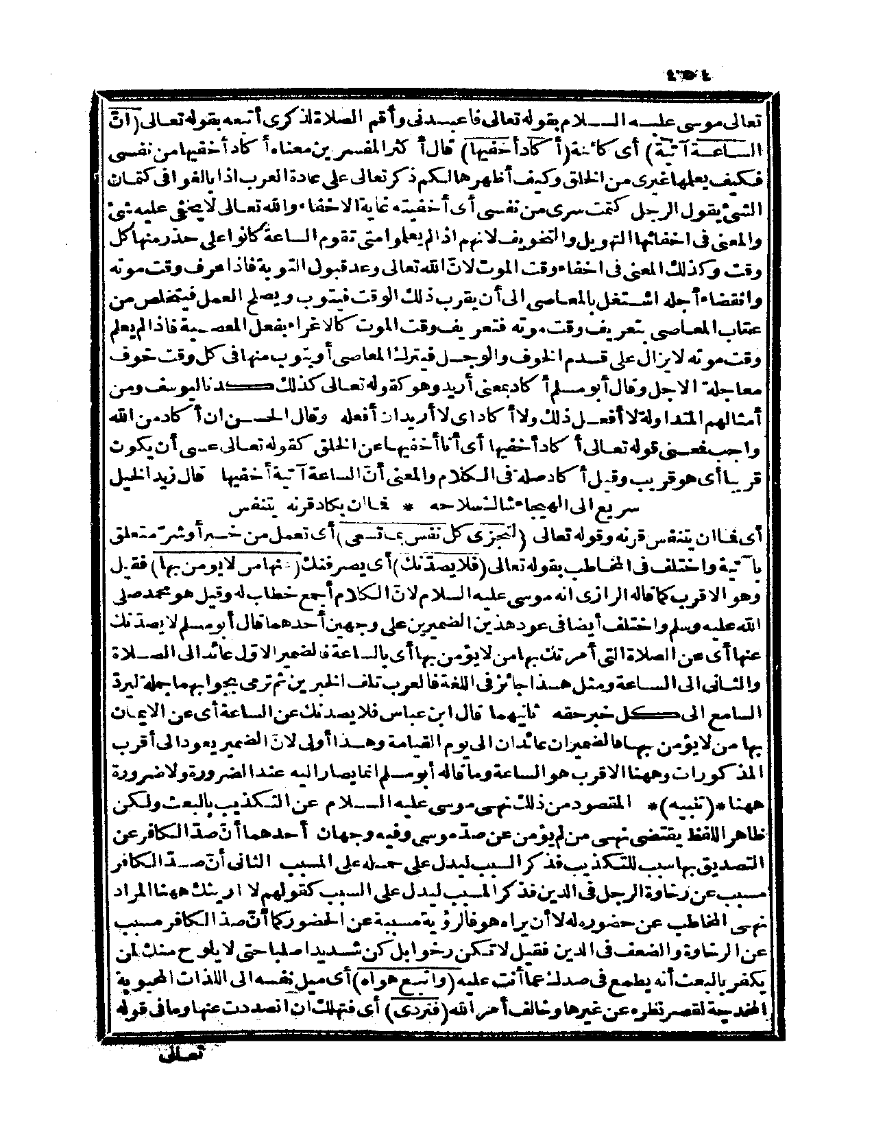 تنبيه: المقصود من ذلك نهى موسى عليه السلام عن التكذيب بالبعث ولكن ظاهر اللفظ يقتضي نهي من لم يؤمن عن صدّ موسى وفيه وجهان: