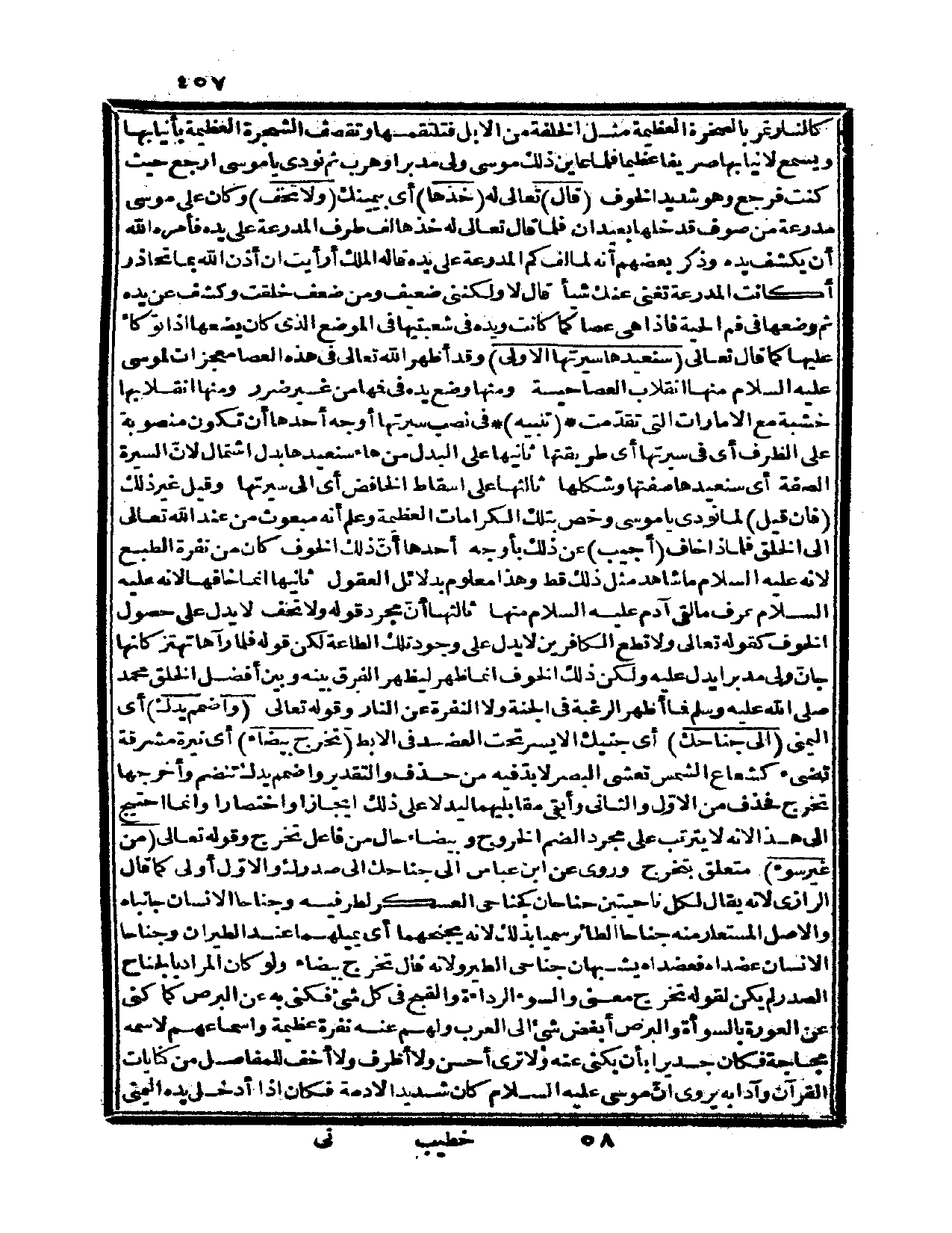 ثالثها: على إسقاط الخافض أي: إلى سيرتها وقيل غير ذلك. فإن قيل: لما نودي يا موسى وخص بتلك الكرامات العظيمة وعلم أنه مبعوث من عند الله تعالى إلى الخلق فلماذا خاف؟ أجيب عن ذلك بأوجه أحدها: أنّ ذلك الخوف كان من نفرة الطبع لأنه عليه السلام ما شاهد مثل ذلك قط وهذا معلوم بدلائل العقول ثانيها: إنما خافها لأنه عليه السلام عرف ما لقي آدم عليه السلام منها. ثالثها: أنّ مجرد قوله ولا تخف لا يدل على حصول الخوف كقوله تعالى: {ولا تطع الكافرين} (الأحزاب، 1)