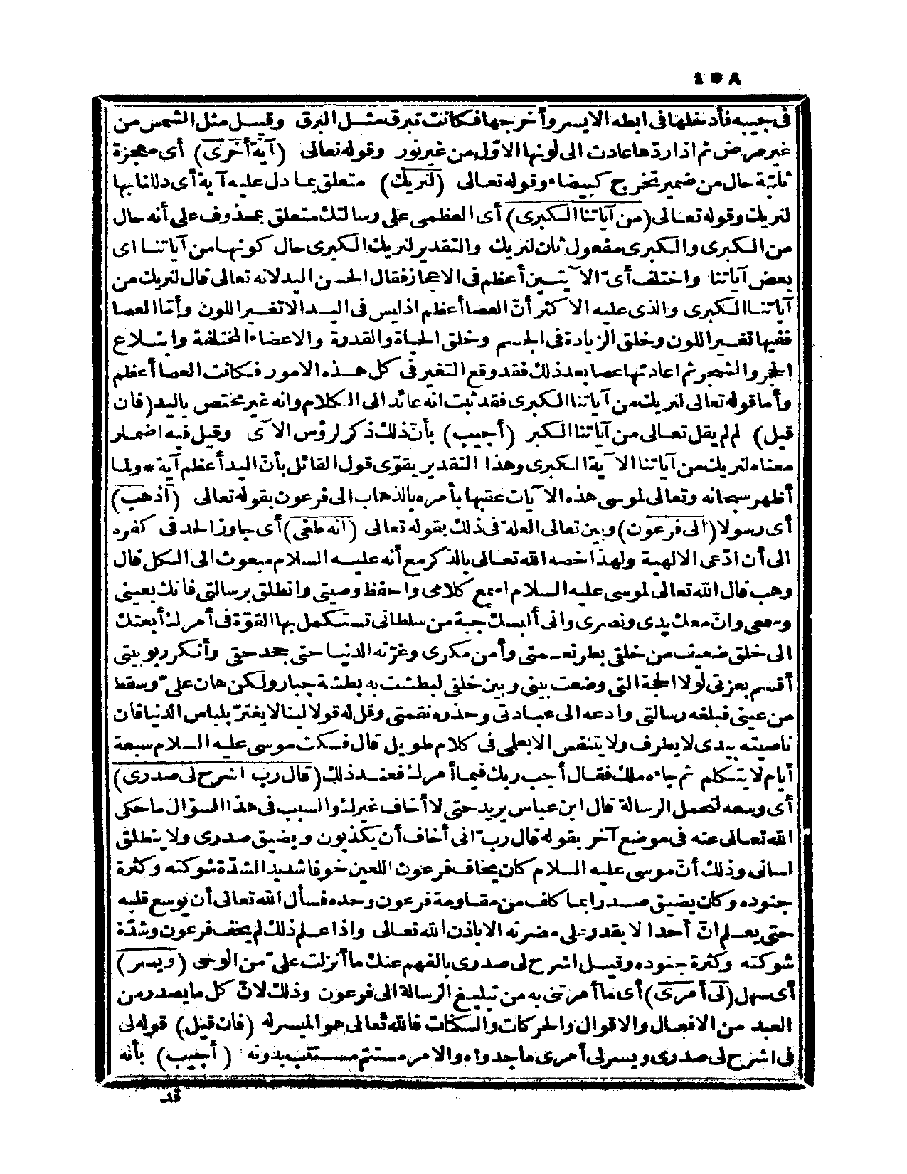 في جيبه فأدخلها في إبطه الأيسر وأخرجها فكانت تبرق مثل البرق وقيل مثل الشمس من غير مرض ثم إذا أردّها عادت إلى لونها الأوّل من غير نور وقوله تعالى: {آية أخرى} أي: معجزة ثابتة حال من ضمير تخرج كبيضاء وقوله تعالى: