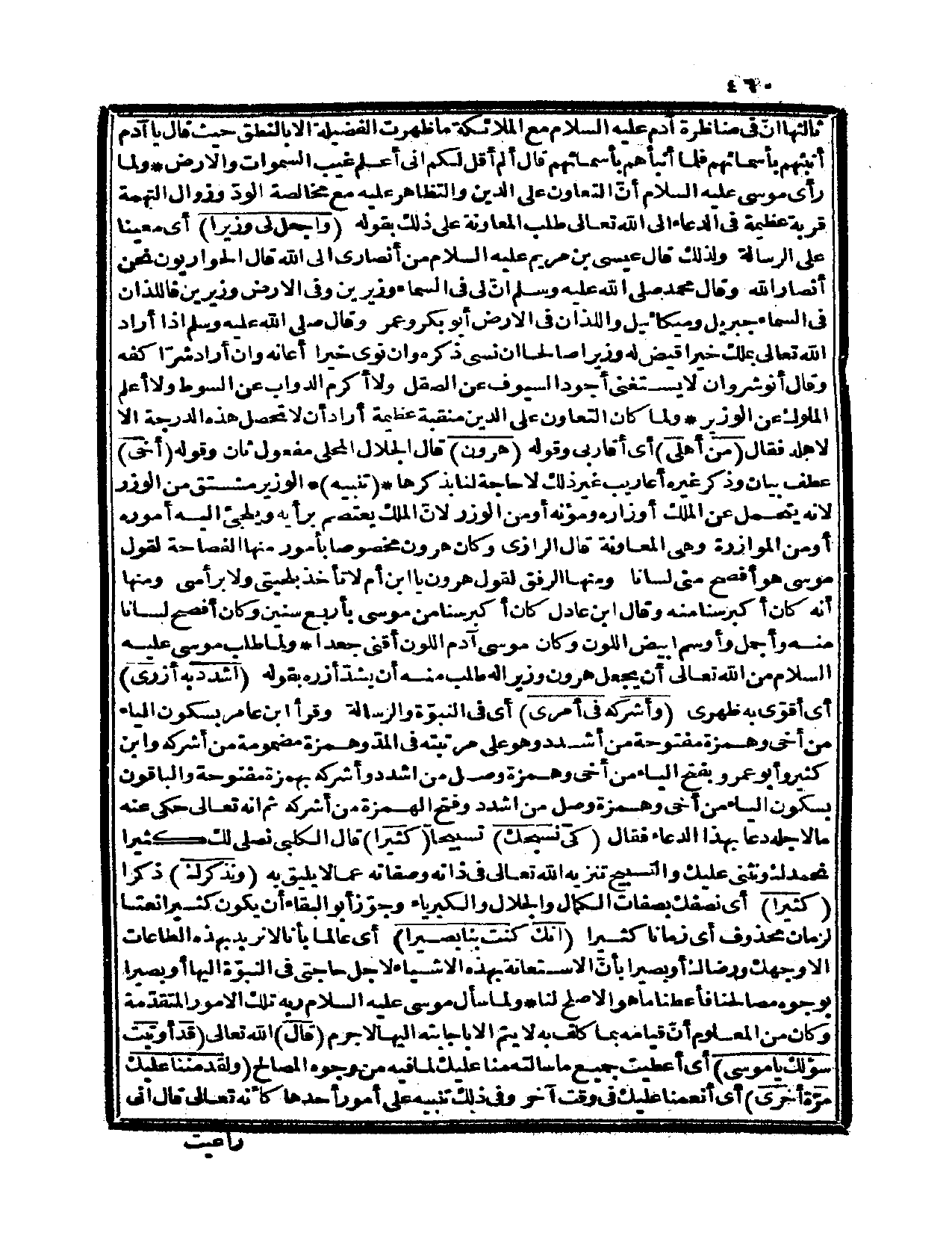 تنبيه: الوزير مشتق من الوزر لأنه يتحمل عن الملك أوزاره ومؤنه، أو من الوزر لأنّ الملك يعتصم برأيه ويلجئ إليه أموره، أو من الموازرة وهي المعاونة. قال الرازي: وكان هارون مخصوصاً بأمور منها الفصاحة لقول موسى: {هو أفصح مني لساناً} (القصص، 34)