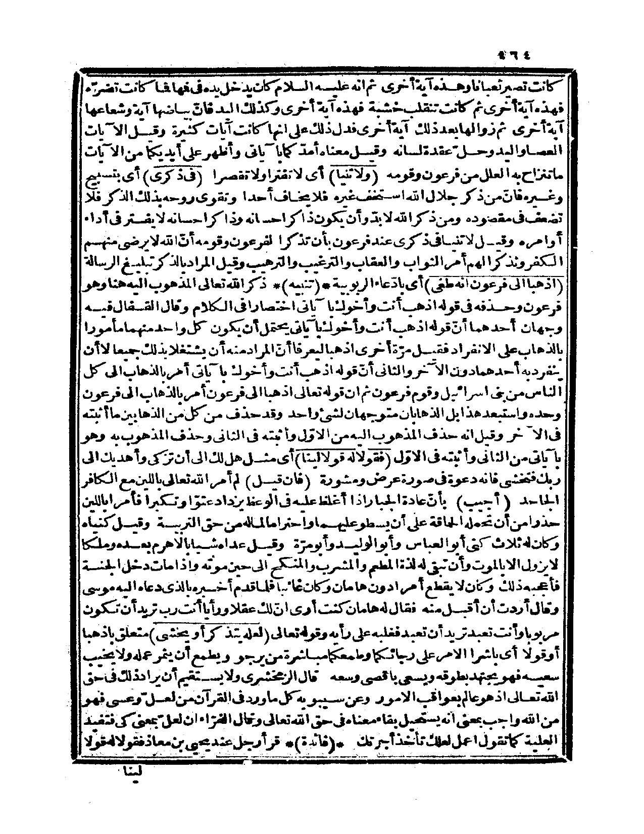 وقيل: الآيات العصا واليد وحلّ عقدة لسانه وقيل: معناه أمدّكما بآياتي وأظهر على أيديكما من الآيات ما تنزاح به العلل من فرعون وقومه {ولاتنيا} أي: لا تفترا ولا تقصرا {في ذكري} أي: بتسبيح وغيره فإنّ من ذكر جلال الله استخف غيره فلا يخاف أحداً وتقوى روحه بذلك الذكر فلا تضعف في مقصوده، ومن ذكر الله لا بدّ وأن يكون ذاكر إحسانه، وذاكر إحسانه لا يفتر في أداء أوامره وقيل: لاتنيا في ذكرى عند فرعون بأن تذكرا لفرعون وقومه أنّ الله لا يرضى منهم الكفر وتذكرا لهم أمر الثواب والعقاب والترغيب والترهيب وقيل: المراد بالذكر تبليغ الرسالة