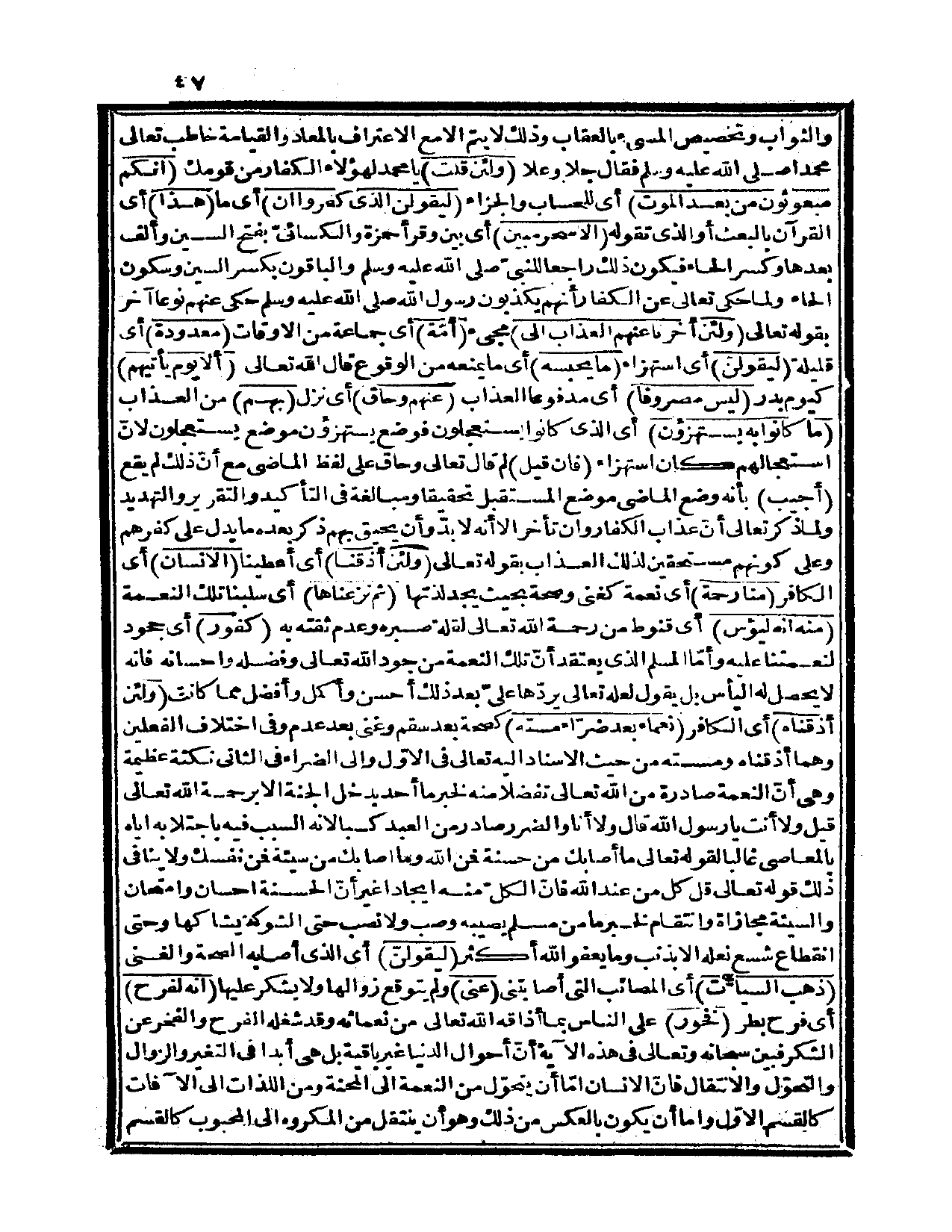 {ولئن أخرنا عنهم العذاب إلى} مجيء {أمّة} أي: جماعة من الأوقات {معدودة} أي: قليلة {ليقولنّ} أي: استهزاء {ما يحبسه} أي: ما يمنعه من الوقوع قال الله تعالى: {ألا يوم يأتيهم} كيوم بدر {ليس مصروفاً} أي: مدفوعاً العذاب {عنهم وحاق} أي: نزل {بهم} من العذاب {ما كانوا به يستهزؤون} أي: الذي كانوا يستعجلون، فوضع يستهزؤون موضع يستعجلون؛ لأنّ استعجالهم كان استهزاء. فإن قيل: لم قال تعالى: وحاق على لفظ الماضي مع أنّ ذلك لم يقع؟ أجيب: بأنه وضع الماضي موضع المستقبل تحقيقاً ومبالغة في التأكيد والتقرير والتهديد. ولما ذكر تعالى أنّ عذاب الكفار وإن تأخر إلا أنه لا بدّ وأن يحيق بهم ذكر بعده ما يدل على كفرهم وعلى كونهم مستحقين لذلك العذاب بقوله تعالى: