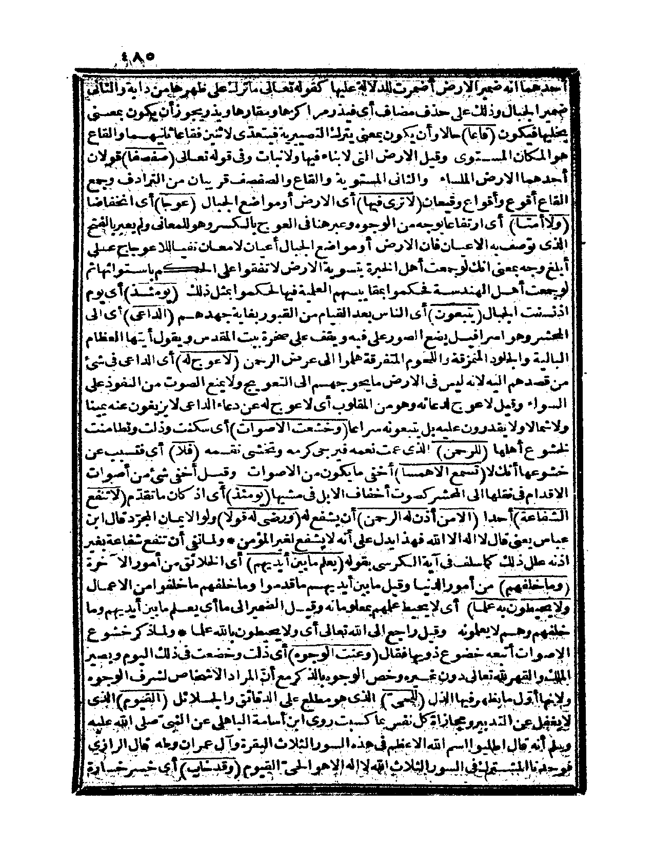 أحدهما: أنه ضمير الأرض أضمرت للدلالة عليها كقوله تعالى: {ما ترك على ظهرها من دابة} (فاطر، 45) ، والثاني: ضمير الجبال، وذلك على حذف مضاف أي: فيذر مراكزها ومقارها، ويذر يجوز أن يكون بمعنى يخليها، فيكون {قاعاً} حالاً وأن يكون بمعنى يترك التصييريه، فيتعدى لاثنين فقاعاً ثانيهما، والقاع هو المكان المستوي، وقيل: الأرض التي لا بناء فيها، ولا نبات، وفي قوله تعالى: {صفصفاً} قولان أحدهما: الأرض الملساء، والثاني: المستوية، والقاع والصفصف قريبان من الترادف، وجمع القاع أقوع وأقواع وقيعان