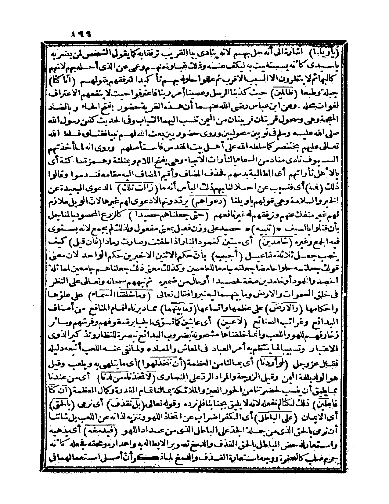 {وما خلقنا السماء} على علوِّها وإحكامها {والأرض} على عظمها واتساعها {وما بينهما} مما دبرناه لتمام المنافع من أصناف البدائع وغرائب الصنائع {لاعبين} أي: عابثين كما تسوّي الجبابرة سقوفهم وفرشهم، وسائر زخارفهم للهو واللعب، وإنما خلقناها مشحونة بضروب البدائع تبصرة للنظار، وتذكيراً لذوي الاعتبار، وتسبيباً لما ينتظم به أمر العباد في المعاش والمعاد، ولما نفى عنه اللعب أتبعه دليله، فقال عز وجل: