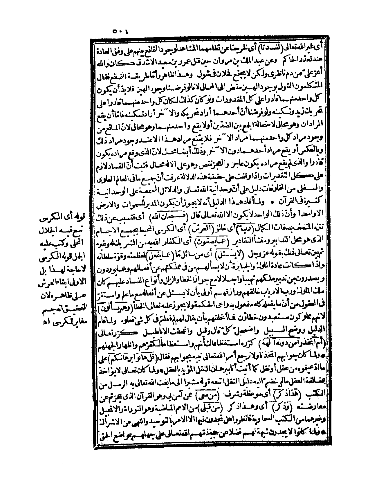 وأما طريقة التمانع فقال المتكلمون: القول بوجود إلهين مفضٍ إلى المحال لأنّا لو فرضنا وجود إلهين، فلا بدّ أن يكون كل واحد منهما قادراً على كل المقدورات، ولو كان كذلك لكان كل واحد منهما قادراً على تحريك زيد وتسكينه، ولو فرضنا أنّ أحدهما أراد تحريكه والآخر أراد تسكينه، فإمّا أن يقع المرادان وهو محال لاستحالة الجمع بين الضدّين، أو لا يقع واحد منهما، وهو محال؛ لأنّ المانع من وجود مراد كل واحد منهما مراد الآخر، فلا يمتنع مراد هذا إلا عند وجود مراد ذلك وبالعكس، أو يقع مراد أحدهما دون الآخر، وذلك أيضاً محال؛ لأنّ الذي وقع مراده يكون قادراً، والذي لم يقع مراده يكون عاجزاً، والعجز نقص، وهو على الإله محال، فثبت أن الفساد لازم على كل التقديرات، وإذا وقفت على حقيقة هذه الدلالة عرفت أنّ جميع ما في العالم العلوي والسفلي من المخلوقات دليل على أنّ وحدانية الله تعالى والدلائل السمعية على الوحدانية كثيرة في القرآن، ولما أفاد هذا الدليل أنه لا يجوز أن يكون المدبر للسموات والأرض إلا واحداً، وأن ذلك الواحد لا يكون إلا الله تعالى قال: {فسبحان الله} أي: فتسبب عن ذلك تنزه المتصف بصفات الكمال {ربّ} أي: خالق {العرش} أي: الكرسي المحيط بجميع الأجسام الذي هو محل التدابير، ومنشأ التقادير {عما يصفون} أي: الكفار الله به من الشريك له وغيره، ثم بيّن تعالى ذلك بقوله عز وجل: