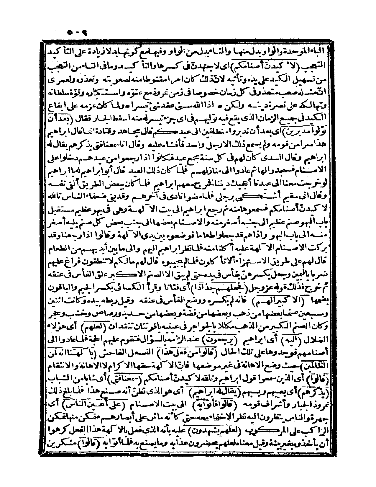 الباء الموحدة والواو بدل منها والتاء بدل من الواو وفيها مع كونها بدلاً زيادة على التأكيد التعجب {لأكيدن أصنامهم} أي: لأجتهدنّ في كسرها والتأكيد وما في التاء من التعجب من تسهيل الكيد على يده وتأتيه لأنّ ذلك كان أمراً مقنوطاً منه لصعوبته وتعذره ولعمري إنّ مثله صعب متعذر في كل زمان خصوصاً في زمن نمروذ مع عتّوه واستكباره وقوّة سلطانه وتهالكه على نصرة دينه، ولكن إذا الله سنى عقد شيء تيسراً، ولما كان عزمه على إيقاع الكيد في جميع الزمان الذي يقع فيه توليهم في أي جزء تيسر له منه أسقط الجار فقال: {بعد أن تولّوا مدبرين} أي: بعد أن تدبروا منطلقين إلى عيدكم قال مجاهد وقتادة: إنما قال إبراهيم هذا سراً من قومه ولم يسمع ذلك إلا رجل واحد فأفشاه عليه وقال: إنا سمعنا فتى يذكرهم يقال له إبراهيم، وقال السدّي: كان لهم في كل سنة مجمع عيد فكانوا إذا رجعوا من عيدهم دخلوا على الأصنام فسجدوا لها ثم عادوا إلى منازلهم، فلما كان ذلك العيد قال أبو إبراهيم له: يا إبراهيم لو خرجت معنا إلى عيدنا أعجبك ديننا فخرج معهم إبراهيم فلما كان ببعض الطريق ألقى نفسه وقال: إني سقيم أشتكي برجلي فلما مضوا نادى في آخرهم وقد بقي ضعفاء الناس تالله لأكيدن أصنامكم فسمعوها منه ثم رجع إبراهيم إلى بيت الآلهة وهي في بهو عظيم مستقبل باب البهو صنم عظيم إلى جنبه أصغر منه والأصنام بعضها إلى جنب بعض كل صنم يليه أصغر منه إلى باب البهو وإذا هم قد جعلوا طعاماً فوضعوه بين يدي الآلهة، وقالوا: إذا رجعنا وقد بركت الأصنام الآلهة عليه أكلنا منه فلما نظر إبراهيم إليهم وإلى ما بين أيديهم من الطعام قال لهم على طريق الاستهزاء: ألا تأكلون؟ فلما لم يجيبوه قال لهم مالكم لا تنطقون، فراغ عليهم ضرباً باليمين وجعل يكسرهن بفأس في يده حتى لم يبق إلا الصنم الأكبر علق الفأس في عنقه ثم خرج، فذلك قوله عز وجل: