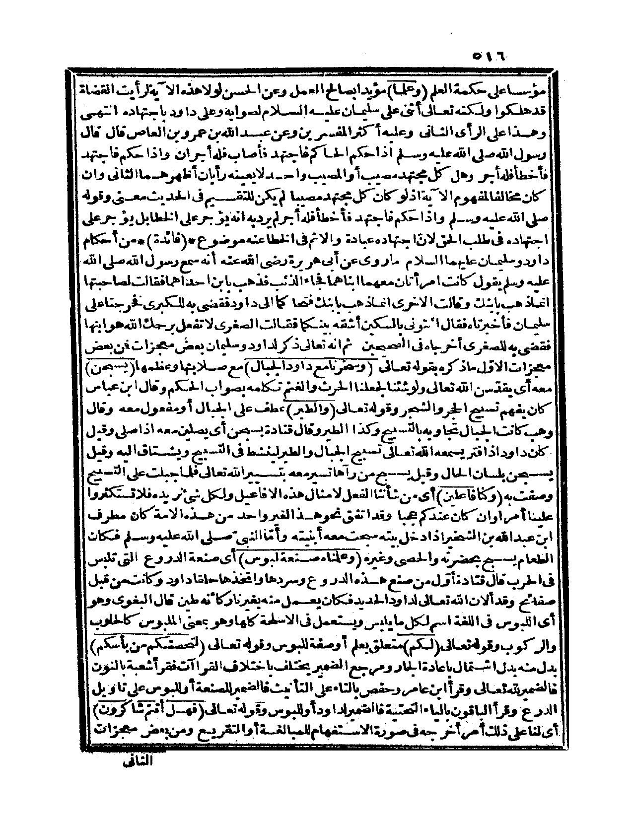 مؤسساً على حكمة العلم {وعلماً} مؤيداً بصالح العمل، وعن الحسن لولا هذه الآية لرأيت القضاة قد هلكوا، ولكنه تعالى أثنى على سليمان عليه السلام لصوابه، وعلى داود باجتهاده انتهى، وهذا على الرأي الثاني، وعليه أكثر المفسرين، وعن عبد الله بن عمرو بن العاص قال: قال رسول الله صلى الله عليه وسلم «إذا حكم الحاكم فاجتهد، فأصاب فله أجران، وإذا حكم فاجتهد فأخطأ، فله أجر» ، وهل كل مجتهد مصيب أو المصيب واحد لا بعينه؟ رأيان أظهرهما الثاني، وإن كان مخالفاً لمفهوم الآية إذ لو كان كل مجتهد مصيباً لم يكن للتقسيم في الحديث معنى وقوله صلى الله عليه وسلم وإذا حكم فاجتهد فأخطأ فله أجر لم يرد به أنه يؤجر على الخطأ بل يؤجر على اجتهاده في طلب الحق؛ لأنّ اجتهاده عبادة، والإثم في الخطأ عنه موضوع.