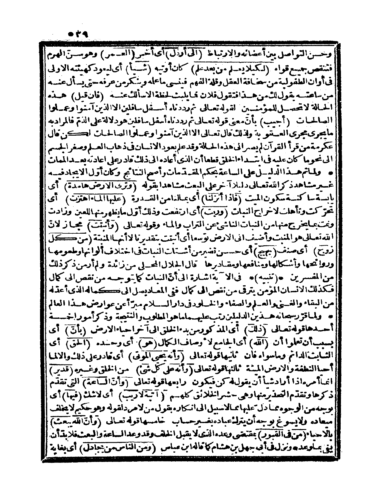تنبيه: في الآية إشارة إلى أنّ النبات كما يتوجه من نقص إلى كمال، فكذلك الإنسان المؤمن يترقى من نقص إلى كمال، ففي المعاد يصل إلى كماله الذي أعدّ له من البقاء والغنى والعلم والصفاء والخلود في دار السلام مبرأ عن عوارض هذا العالم، ولما قرّر سبحانه هذين الدليلين رتب عليهما ما هو المطلوب والنتيجة، وذكر أموراً خمسة أحدها قوله تعالى: