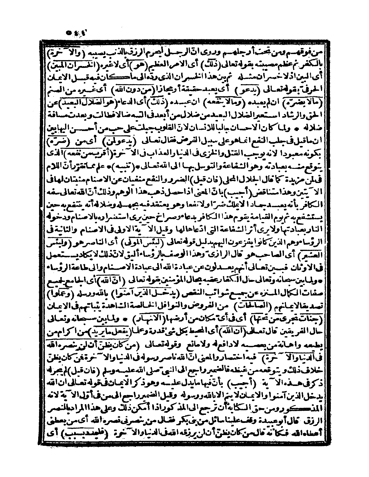 {والآخرة} بالكفر، ثم عظم مصيبته بقوله تعالى: {ذلك} أي: الأمر العظيم {هو} أي: لا غيره. {الخسران المبين} أي: البين إذ لا خسران مثله ثم بين هذا الخسران الذي ردّه إلى ما كان فيه قبل الإيمان الحرفيّ بقوله تعالى: