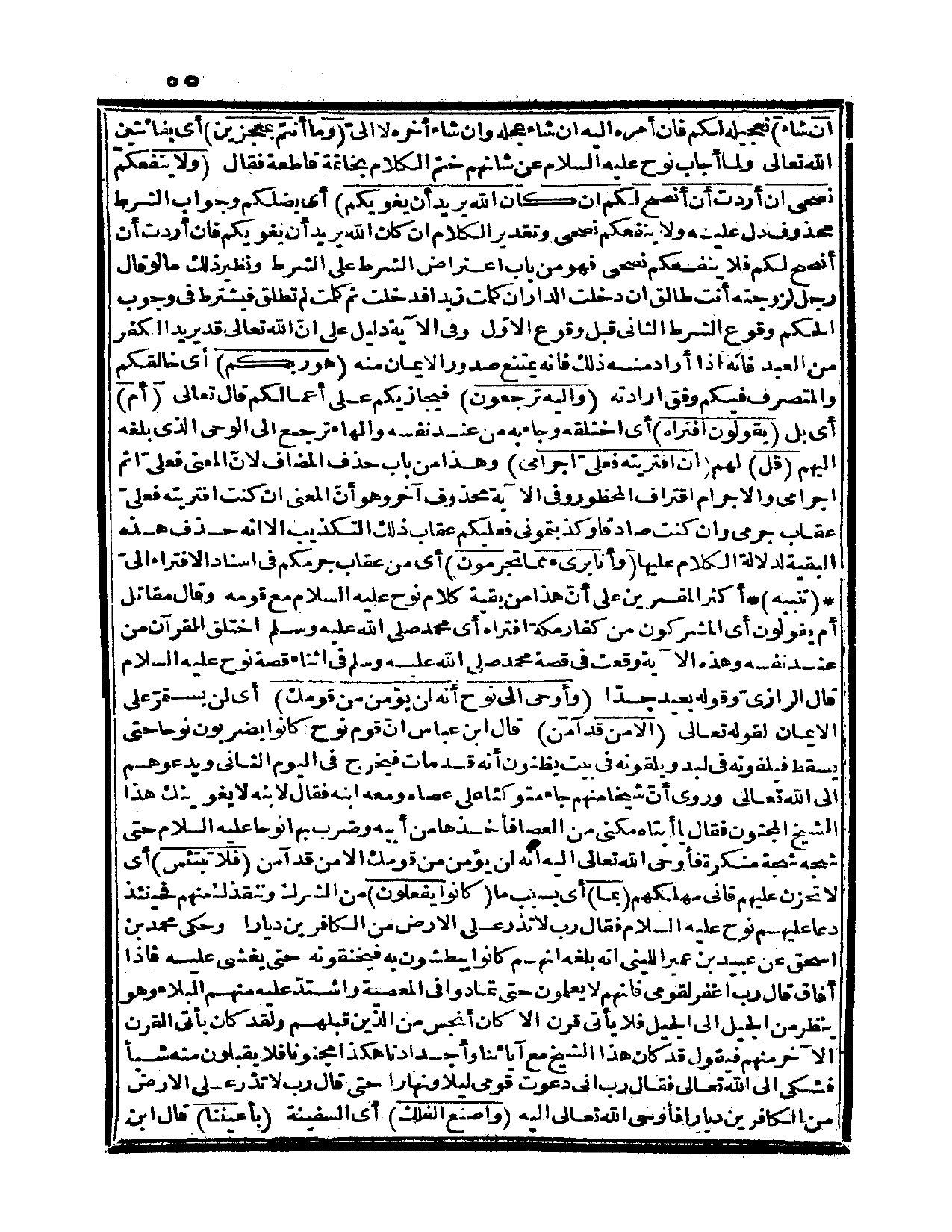 {ولا ينفعكم نصحي إن أردت أن أنصح لكم إن كان الله يريد أن يغويكم} أي: يضلكم وجواب الشرط محذوف دل عليه ولا ينفعكم نصحي. وتقدير الكلام: إن كان الله يريد أن يغويكم فإن أردت أن أنصح لكم فلا ينفعكم نصحي، فهو من باب اعتراض الشرط. على الشرط ونظير ذلك ما لو قال رجل لزوجته: أنت طالق إن دخلت الدار إن كلمت زيداً، فدخلت ثم كلمت لم تطلق فيشترط في وجوب الحكم وقوع الشرط الثاني قبل وقوع الأوّل. وفي الآية دليل على أنّ الله تعالى قد يريد الكفر من العبد فإنه إذا أراد منه ذلك فإنه يمتنع صدور الإيمان منه {هو ربكم} أي: خالقكم والمتصرف فيكم وفق إرادته {وإليه ترجعون} فيجازيكم على أعمالكم قال تعالى: {أم} أي: بل {يقولون افتراه} أي: اختلقه وجاء به من عند نفسه، والهاء ترجع إلى الوحي الذي بلغه إليهم {قل} لهم {إن افتريته فعليّ إجرامي} وهذا من باب حذف المضاف؛ لأنّ المعنى فعليّ إثم إجرامي، والإجرام اقتراف المحظور. وفي الآية محذوف آخر وهو أنّ المعنى إن كنت افتريته فعليّ عقاب جرمي وإن كنت صادقاً وكذبتموني فعليكم عقاب ذلك التكذيب، إلا أنه حذف هذه البقية لدلالة الكلام عليها {وأنا بريء مما تجرمون} أي: من عقاب جرمكم في إسناد الافتراء إليّ.