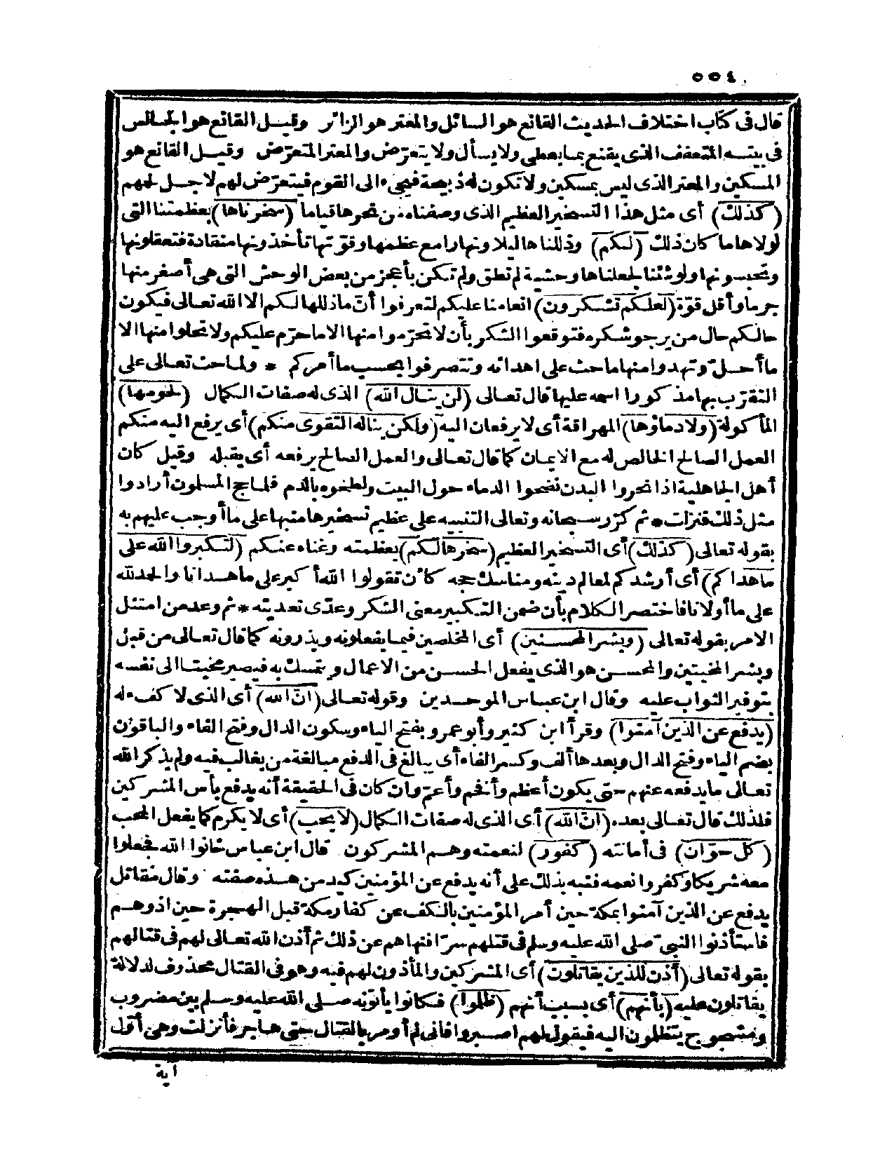والمعتر المعترّض وقيل القانع هو المسكين والمعتر الذي ليس بمسكين، ولا تكون له ذبيحة فيجيء إلى القوم فيتعرّض لهم لأجل لحمهم {كذلك} أي مثل هذا التسخير العظيم الذي وصفناه من نحرها قياماً {سخرناها} بعظمتنا التي لولاها ما كان ذلك {لكم} وذللناها ليلاً ونهاراً مع عظمها وقوّتها تأخذونها منقادة فتعقلونها وتحبسونها ولو شئنا لجعلناها وحشية لم تطق ولم تكن بأعجز من بعض الوحش التي هي أصغر منها جرماً وأقل قوّة {لعلكم تشكرون} إنعامنا عليكم لتعرفوا أنّ ما ذللها لكم إلا الله تعالى، فيكون حالكم حال من يرجو شكره فتوقعوا لشكر بأن لا تحرّموا منها إلا ما حرّم عليكم ولا تحلوا منها إلا ما أحلّ، وتهدوا منها ما حث على إهدائه وتتصرفوا بحسب ما أمركم.