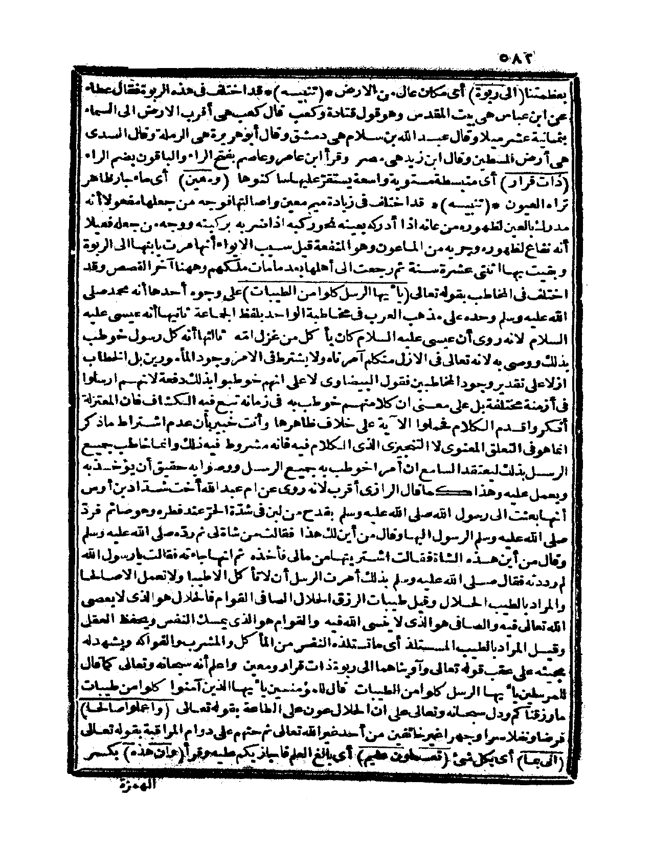 {يا أيها الرسل كلوا من الطيبات} على وجوه؛ أحدها: أنه محمد صلى الله عليه وسلم وحده على مذهب العرب في مخاطبة الواحد بلفظ الجماعة، ثانيها: أنه عيسى عليه السلام؛ لأنه روي أنّ عيسى عليه السلام كان يأكل من غزل أمه، ثالثها: أنه كل رسول خوطب بذلك، ووصي به لأنه تعالى في الأزل متكلم آمر ناهٍ، ولا يشترط في الأمر وجود المأمورين بل الخطاب أزلاً على تقدير وجود المخاطبين، فقول البيضاوي: لا على أنهم خوطبوا بذلك دفعة لأنهم أرسلوا في أزمنة مختلفة بل على معنى أنّ كلاً منهم خوطب به في زمانه، تبع فيه «الكشاف» ، فإن المعتزلة أنكروا قدم الكلام فحملوا الآية على خلاف ظاهرها، وأنت خبير بأنّ عدم اشتراط ما ذكر إنما هو في التعلق المعنوي لا التنجيزي الذي الكلام فيه، فإنه مشروط فيه ذلك، وإنما خاطب جميع الرسل بذلك ليعتقد السامع أنّ أمراً خوطب به جميع الرسل ووصوا به حقيق أنّ يؤخذ به ويعمل عليه، وهذا كما قال الرازي أقرب؛ لأنه روي «عن أم عبد الله أخت شداد بن أوس أنها بعثت إلى رسول الله صلى الله عليه وسلم بقدح من لبن في شدّة الحر عند فطره وهو صائم، فرد صلى الله عليه وسلم إليها وقال: من أين لك هذا؟ فقالت: من شاة لي، ثم رده صلى الله عليه وسلم وقال: من أين هذه الشاة؟ فقالت: اشتريتها من مالي، فأخذه ثم إنها جاءته فقالت: يا رسول الله لم رددته؟ فقال صلى الله عليه وسلم بذلك أمرت الرسل أنّ لا تأكل إلا طيباً، ولا تعمل إلا صالحاً» ، والمراد بالطيب الحلال، وقيل: