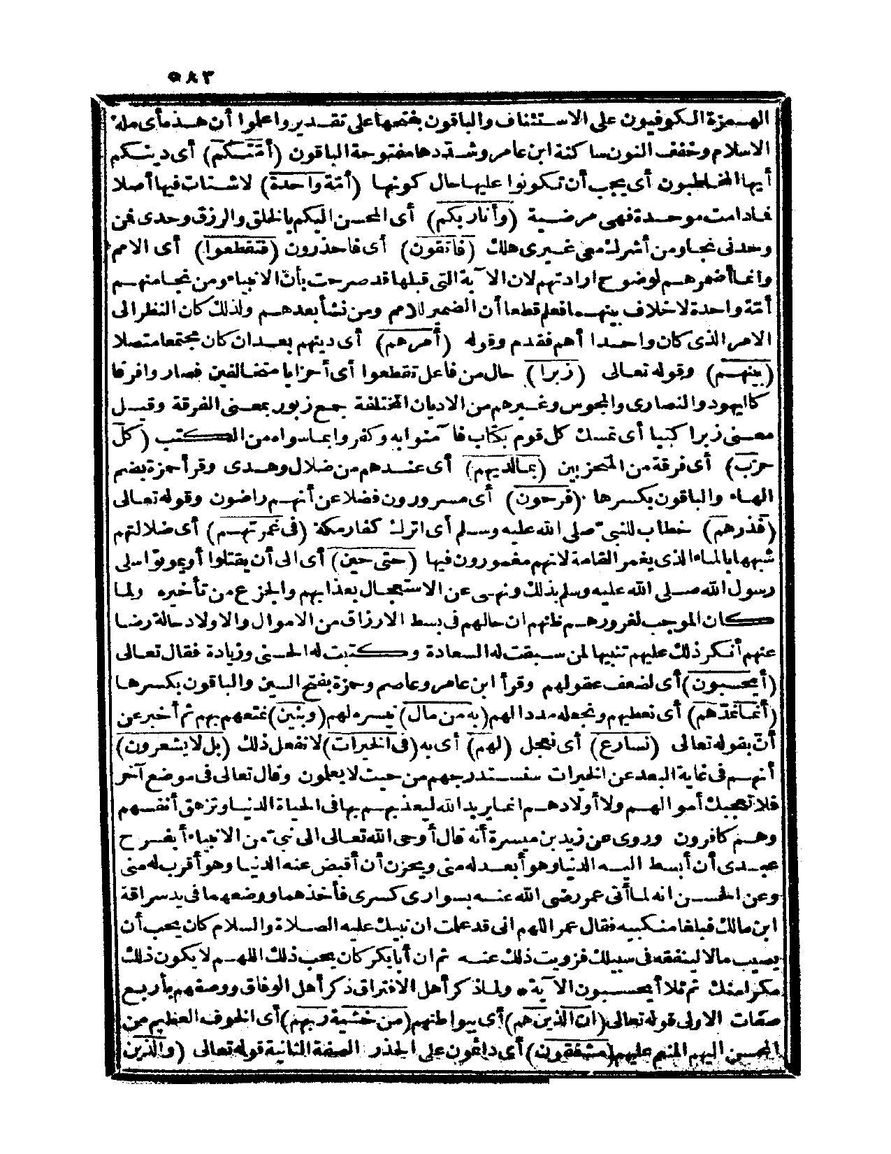 الهمزة الكوفيون على الاستئناف، والباقون بفتحها على تقدير واعلموا أنّ هذه أي: ملة الإسلام، وخفف النون ساكنة ابن عامر وشدّدها مفتوحة الباقون {أمتكم} أي: دينكم أيها المخاطبون أي: يجب أنّ تكونوا عليها حال كونها {أمة واحدة} لا شتات فيها أصلاً، فما دامت موحدة، فهي مرضية {وأنا ربكم} أي: المحسن إليكم بالخلق والرزق وحدي، فمن وحدني نجا، ومن أشرك معي غيري هلك {فاتقون} أي: فاحذرون.