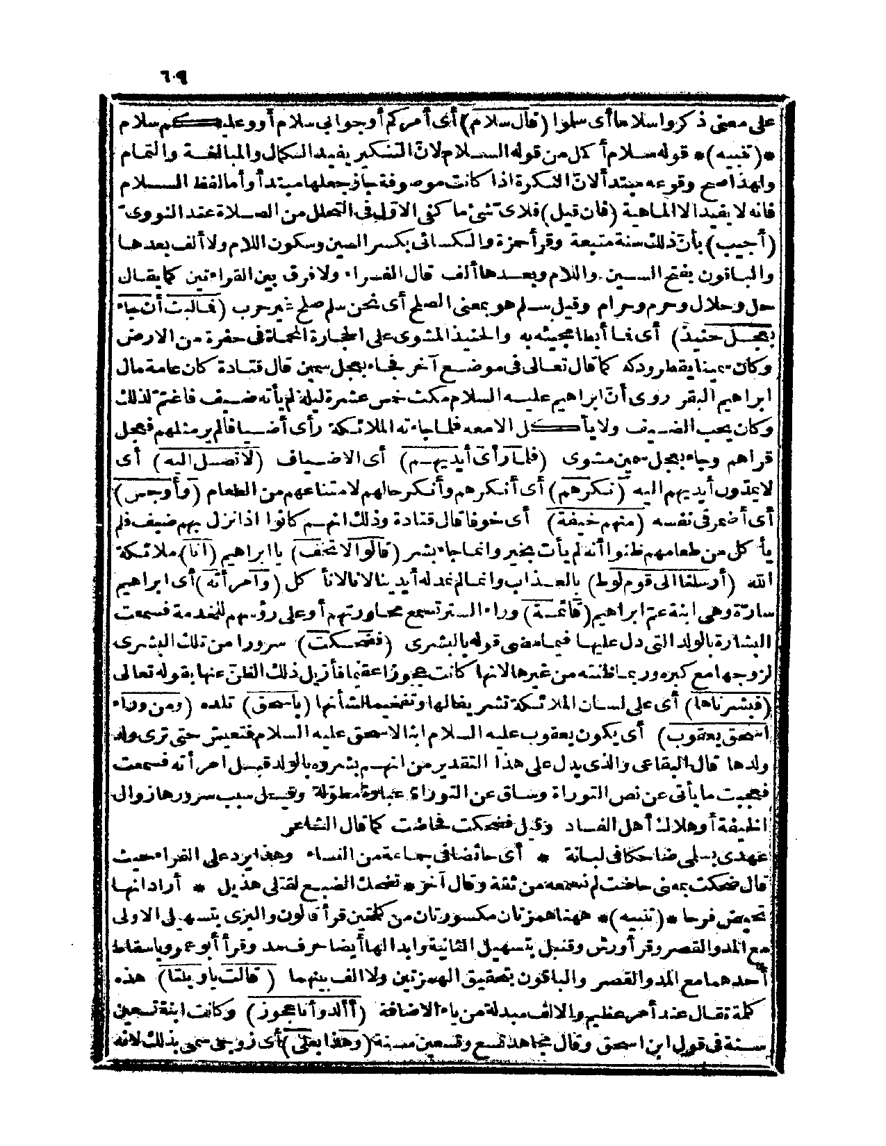 تنبيه: قوله سلام أكمل من قوله السلام، لأنّ التنكير يفيد الكمال والمبالغة والتمام، ولهذا صح وقوعه مبتدأ؛ لأنّ النكرة إذا كانت موصوفة جاز جعلها مبتدأ، أو لفظ السلام فإنه لا يفيد إلا الماهية. فإن قيل: فلأي شيء ما كفى الأوّل في التحلل من الصلاة عند النوويّ؟ أجيب: بأنّ ذلك سنة متبعة. وقرأ حمزة والكسائي بكسر السين وسكون اللام ولا ألف بعدها، والباقون بفتح السين واللام وبعدها ألف. قال الفراء: ولا فرق بين القراءتين كما يقال حل وحلال وحرم وحرام. وقيل سلم هو بمعنى الصلح، أي: نحن سلم صلح غير حرب. {فما لبث أن جاء بعجل حنيذ} (هود، 69) ، أي: فما أبطأ مجيئه به. والحنيذ: المشوي على الحجارة المحماة في حفرة من الأرض، وكان سميناً يقطر ودكه. كما قال تعالى في موضع آخر: {فجاء بعجل سمين} . قال قتادة: كان عامة مال إبراهيم البقر. روي أنّ إبراهيم عليه السلام مكث خمس عشرة ليلة لم يأته ضيف فاغتمّ لذلك وكان يحب الضيف ولا يأكل إلا معه، فلما جاءته الملائكة رأى أضيافاً لم ير مثلهم فعجل قراهم وجاء بعجل سمين مشوي.