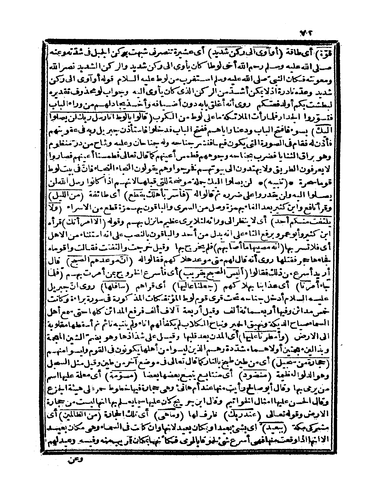 قوّة} ، أي: طاقة {أو آوي إلى ركن شديد} ، أي: عشيرة تنصرني شبهت بركن الجبل في شدّته، وعنه صلى الله عليه وسلم «رحم الله أخي لوطاً كان يأوي إلى ركن شديد» ، والركن الشديد نصر الله ومعونته فكأن النبيّ صلى الله عليه وسلم استغرب من لوط عليه السلام قوله: {أو آوي إلى ركن شديد} وعدّه نادرة إذ لا يمكن أشدّ من الركن الذي كان يأوي إليه، وجواب لو محذوف تقديره: لبطشت بكم أو لدفعتكم، روي أنه أغلق بابه دون أضيافه وأخذ يجادلهم من وراء الباب فتسوّروا الجدار فلما رأت الملائكة ما على لوط من الكرب.