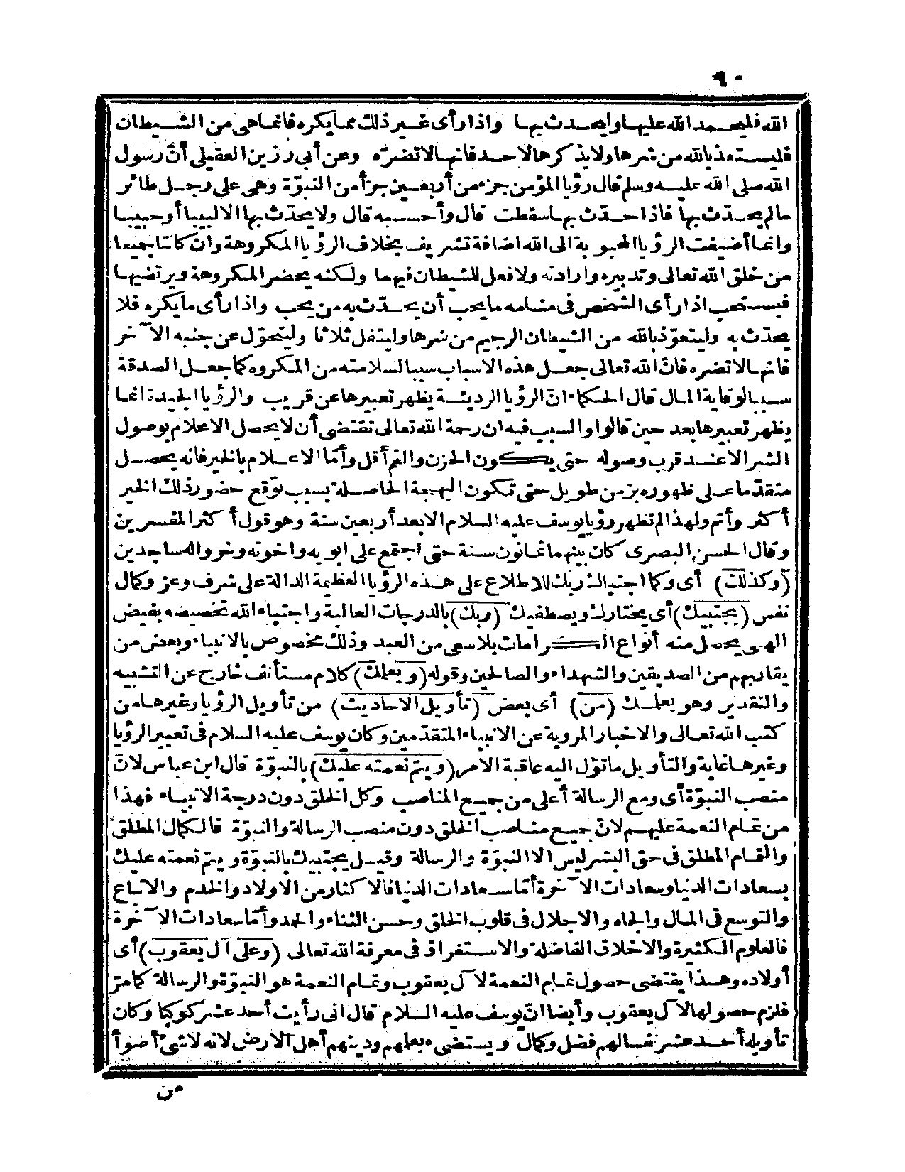 الله فليحمد الله عليها وليحدث بها وإذا رأى غير ذلك مما يكره فإنما هي من الشيطان فليستعذ بالله من شرها ولا يذكرها لأحد فإنها لا تضرّه» . وعن أبي رزين العقيلي أنّ رسول الله صلى الله عليه وسلم قال: «رؤيا المؤمن جزء من أربعين جزءاً من النبوّة، وهي على رجل طائر ما لم يحدّث بها فإذا حدّث بها سقطت» قال: وأحسبه قال: «ولا يحدّث بها إلا لبيباً أو حبيباً» وإنما أضيفت الرؤيا المحبوبة إلى الله إضافة تشريف بخلاف الرؤيا المكروهة وإن كانتا جميعاً من خلق الله تعالى وتدبيره وإرادته ولا فعل للشيطان فيهما، ولكنه يحضر المكروهة ويرتضيها، فيستحب إذا رأى الشخص في منامه ما يحب أن يحدّث به من يحب، وإذا رأى ما يكره فلا يحدّث به وليتعوذ بالله من الشيطان الرجيم من شرها، وليتفل ثلاثاً، وليتحول عن جنبه الآخر فإنها لا تضرّه، فإنّ الله تعالى جعل هذه الأسباب سبباً لسلامته من المكروه كما جعل الصدقة سبباً لوقاية المال. قال الحكماء: إنّ الرؤيا الرديئة يظهر تعبيرها عن قريب والرؤيا الجيدة إنما يظهر تعبيرها بعد حين، قالوا: والسبب فيه أن رحمة الله تعالى تقتضي أن لا يحصل الإعلام بوصول الشر إلا عند قرب وصوله حتى يكون الحزن والغم أقل، وأمّا الإعلام بالخير فإنه يحصل متقدّماً على ظهوره بزمن طويل حتى تكون البهجة الحاصلة بسبب توقع حضور ذلك الخير أكثر وأتم، ولهذا لم تظهر رؤيا يوسف عليه السلام إلا بعد أربعين سنة، وهو قول أكثر المفسرين، وقال الحسن البصري: كان بينهما ثمانون سنة حتى اجتمع على أبويه وإخوته وخروا له ساجدين.