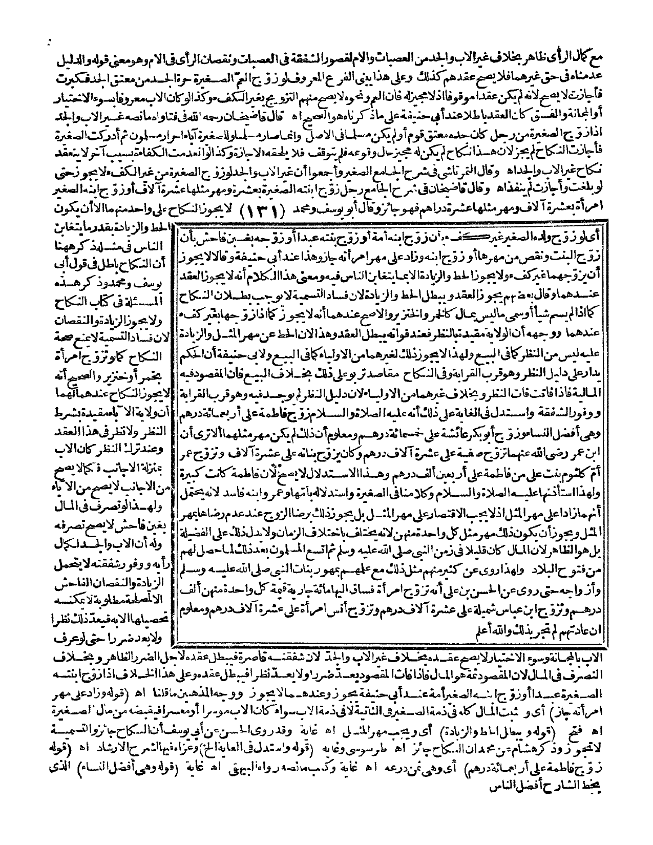 وَاسْتَدَلَّ فِي الْغَايَةِ عَلَى ذَلِكَ أَنَّهُ - عَلَيْهِ الصَّلَاةُ وَالسَّلَامُ - «زَوَّجَ فَاطِمَةَ عَلَى أَرْبَعمِائَةِ دِرْهَمٍ وَهِيَ أَفْضَلُ النِّسَاءِ» وَزَوَّجَ أَبُو بَكْرٍ عَائِشَةَ عَلَى خَمْسِمِائَةِ دِرْهَمٍ، وَمَعْلُومٌ أَنَّ ذَلِكَ لَمْ يَكُنْ مَهْرَ مِثْلِهِمَا، أَلَا تَرَى أَنَّ ابْنَ عُمَرَ - رَضِيَ اللَّهُ عَنْهُمَا - تَزَوَّجَ صَفِيَّةَ عَلَى عَشَرَةِ آلَافِ دِرْهَمٍ وَكَانَ يُزَوِّجُ بَنَاتِهِ عَلَى عَشَرَةِ آلَافٍ وَتَزَوَّجَ عُمَرُ أُمَّ كُلْثُومِ بِنْتَ عَلِيٍّ مِنْ فَاطِمَةَ عَلَى أَرْبَعِينَ أَلْفِ دِرْهَمٍ، وَهَذَا الِاسْتِدْلَال لَا يَصِحُّ؛ لِأَنَّ فَاطِمَةَ كَانَتْ كَبِيرَةً وَلِهَذَا اسْتَأْذَنَهَا - عَلَيْهِ الصَّلَاةُ وَالسَّلَامُ -، وَكَلَامُنَا فِي الصَّغِيرَةِ وَاسْتِدْلَالِهِ بِأُمِّهَا وَعُمَرَ وَابْنِهِ فَاسِدٌ؛ لِأَنَّهُ يَحْتَمِلُ أَنَّهُمَا زَادَا عَلَى مَهْرِ الْمِثْلِ إذْ لَا يَجِبُ الِاقْتِصَارُ عَلَى مَهْرِ الْمِثْلِ بَلْ يَجُوزُ ذَلِكَ بِرِضَا الزَّوْجِ عِنْدَ عَدَمِ رِضَاهَا بِمَهْرِ الْمِثْلِ وَيَجُوزُ أَنْ يَكُونَ ذَلِكَ مَهْرَ مِثْلِ كُلِّ وَاحِدَةٍ مِنْهُنَّ؛ لِأَنَّهُ يَخْتَلِفُ بِاخْتِلَافِ الزَّمَانِ وَلَا يَدُلُّ ذَلِكَ عَلَى الْفَضِيلَةِ بَلْ هُوَ الظَّاهِرُ؛ لِأَنَّ الْمَالَ كَانَ قَلِيلًا فِي زَمَنِ النَّبِيِّ - صَلَّى اللَّهُ عَلَيْهِ وَسَلَّمَ - ثُمَّ اتَّسَعَ الْمُسْلِمُونَ بَعْدَ ذَلِكَ لِمَا حَصَلَ لَهُمْ مِنْ فَتُوحَ الْبِلَادِ وَلِهَذَا رُوِيَ عَنْ كَثِيرٍ مِنْهُمْ مِثْلُ ذَلِكَ مَعَ عِلْمِهِمْ بِمُهُورِ بَنَاتِ النَّبِيِّ - صَلَّى اللَّهُ عَلَيْهِ وَسَلَّمَ - وَأَزْوَاجِهِ حَتَّى رُوِيَ عَنْ الْحَسَنِ بْنِ عَلِيٍّ أَنَّهُ تَزَوَّجَ امْرَأَةً فَسَاقَ إلَيْهَا مِائَةَ جَارِيَةٍ قِيمَةُ كُلِّ وَاحِدَةٍ مِنْهُنَّ أَلْفُ دِرْهَمٍ، وَتَزَوَّجَ ابْنُ عَبَّاسٍ شُمَيْلَهْ عَلَى عَشَرَةِ آلَافِ دِرْهَمٍ وَتَزَوَّجَ أَنَسٌ امْرَأَةً عَلَى عَشَرَةِ آلَافِ دِرْهَمٍ وَمَعْلُومٌ أَنَّ عَادَتَهُمْ لَمْ تَجْرِ بِذَلِكَ وَاَللَّهُ أَعْلَمُ.