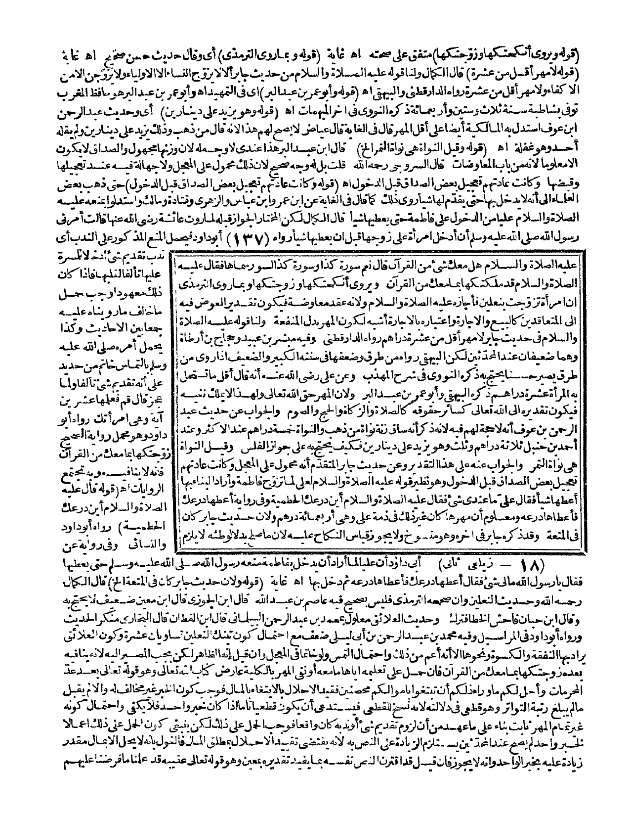 ، وَعَنْ عَلِيٍّ - رَضِيَ اللَّهُ عَنْهُ - أَنَّهُ قَالَ: أَقَلُّ مَا تُسْتَحَلُّ بِهِ الْمَرْأَةُ عَشَرَةُ دَرَاهِمَ، ذَكَرَهُ الْبَيْهَقِيُّ وَأَبُو عُمَرَ بْنُ عَبْدِ الْبَرِّ؛ وَلِأَنَّ الْمَهْرَ حَقُّ اللَّهِ تَعَالَى وَلِهَذَا لَا يَمْلِكُ نَفْيَهُ، فَيَكُونُ تَقْدِيرُهُ إلَى اللَّهِ تَعَالَى كَسَائِرِ حُقُوقِهِ كَالصَّلَاةِ وَالزَّكَاةِ وَالْحَجِّ وَالصَّوْمِ، وَالْجَوَابُ عَنْ حَدِيثِ عَبْدِ الرَّحْمَنِ بْنِ عَوْفٍ أَنَّهُ لَا حُجَّةَ لَهُمْ فِيهِ؛ لِأَنَّهُ ذَكَرَ أَنَّهُ سَاقَ زِنَةَ نَوَاةٍ مِنْ ذَهَبٍ وَالنَّوَاةُ خَمْسَةُ دَرَاهِمَ عِنْدَ الْأَكْثَرِ، وَعِنْدَ أَحْمَدَ بْنِ حَنْبَلٍ ثَلَاثَةُ دَرَاهِمَ وَثُلُثٌ وَهُوَ يَزِيدُ عَلَى دِينَارَيْنِ فَكَيْفَ يُحْتَجُّ بِهِ عَلَى جَوَازِ الْفَلَسِ، وَقِيلَ النَّوَاةُ هِيَ نَوَاةُ التَّمْرِ وَالْجَوَابُ عَنْهُ عَلَى هَذَا التَّقْدِيرِ، وَعَنْ حَدِيثِ جَابِرٍ الْمُتَقَدِّمِ أَنَّهُ مَحْمُولٌ عَلَى الْمُعَجَّلِ وَكَانَتْ عَادَتُهُمْ تَعْجِيلَ بَعْضِ الصَّدَاقِ قَبْلَ الدُّخُولِ وَهُوَ نَظِيرُ «قَوْلِهِ - عَلَيْهِ الصَّلَاةُ وَالسَّلَامُ - لِعَلِيٍّ لَمَّا تَزَوَّجَ فَاطِمَةَ وَأَرَادَ الْبِنَاءَ بِهَا: أَعْطِهَا شَيْئًا، فَقَالَ عَلِيٌّ: مَا عِنْدِي شَيْءٌ فَقَالَ - عَلَيْهِ الصَّلَاةُ وَالسَّلَامُ -: أَيْنَ دِرْعُك الْحُطَمِيَّةُ وَفِي رِوَايَةٍ أَعْطِهَا دِرْعَك فَأَعْطَاهَا دِرْعَهُ»