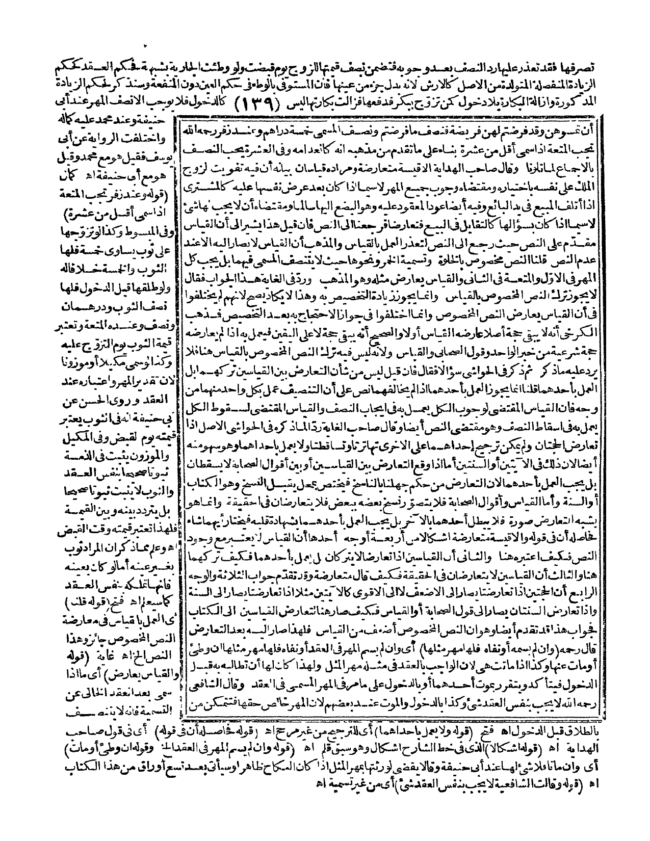 وَقَالَ صَاحِبُ الْهِدَايَةِ: الْأَقْيِسَةُ مُتَعَارِضَةٌ وَمُرَادُهُ قِيَاسَانِ بَيَانُهُ أَنَّ فِيهِ تَفْوِيتَ الزَّوْجِ الْمِلْكَ عَلَى نَفْسِهِ بِاخْتِيَارِهِ وَمُقْتَضَاهُ وُجُوبُ جَمِيعِ الْمَهْرِ لَا سِيَّمَا إذَا كَانَ بَعْدَ عَرْضِ نَفْسِهَا عَلَيْهِ كَالْمُشْتَرِي إذَا أَتْلَفَ الْمَبِيعَ فِي يَدِ الْبَائِعِ وَفِيهِ أَيْضًا عَوْدُ الْمَعْقُودِ عَلَيْهِ وَهُوَ الْبُضْعُ إلَيْهَا سَالِمًا وَمُقْتَضَاهُ أَنْ لَا يَجِبَ لَهَا شَيْءٌ لَا سِيَّمَا إذَا كَانَ بِسُؤَالِهَا كَالتَّقَايُلِ فِي الْبَيْعِ فَتَعَارَضَا فَرَجَعْنَا إلَى النَّصِّ فَإِنْ قِيلَ هَذَا يُشِيرُ إلَى أَنَّ الْقِيَاسَ مُقَدَّمٌ عَلَى النَّصِّ حَيْثُ رُجِعَ إلَى النَّصِّ لِتَعَذُّرِ الْعَمَلِ بِالْقِيَاسِ، وَالْمَذْهَبُ أَنَّ الْقِيَاسَ لَا يُصَارُ إلَيْهِ إلَّا عِنْدَ عَدَمِ النَّصِّ قُلْنَا النَّصُّ مَخْصُوصٌ بِالْخَلْوَةِ وَتَسْمِيَةِ الْخَمْرِ وَنَحْوِهَا حَيْثُ لَا يَتَنَصَّفُ الْمُسَمَّى فِيهِمَا بَلْ يَجِبُ كُلُّ الْمَهْرِ فِي الْأَوَّلِ وَالْمُتْعَةُ فِي الثَّانِي وَالْقِيَاسُ يُعَارِضُ مِثْلَهُ وَهُوَ الْمَذْهَبُ وَرَدَّ فِي الْغَايَةِ هَذَا الْجَوَابَ فَقَالَ: لَا يَجُوزُ تَرْكُ النَّصِّ الْمَخْصُوصِ بِالْقِيَاسِ وَإِنَّمَا يَجُوزُ زِيَادَةُ التَّخْصِيصِ بِهِ، وَهَذَا لَا يَكَادُ يَصِحُّ؛ لِأَنَّهُمْ لَمْ يَخْتَلِفُوا فِي أَنَّ الْقِيَاسَ يُعَارِضُ النَّصَّ الْمَخْصُوصَ وَإِنَّمَا اخْتَلَفُوا فِي جَوَازِ الِاحْتِجَاجِ بِهِ بَعْدَ التَّخْصِيصِ فَمَذْهَبُ الْكَرْخِيِّ أَنَّهُ لَا يَبْقَى حُجَّةً أَصْلًا عَارَضَهُ الْقِيَاسُ أَوْ لَا