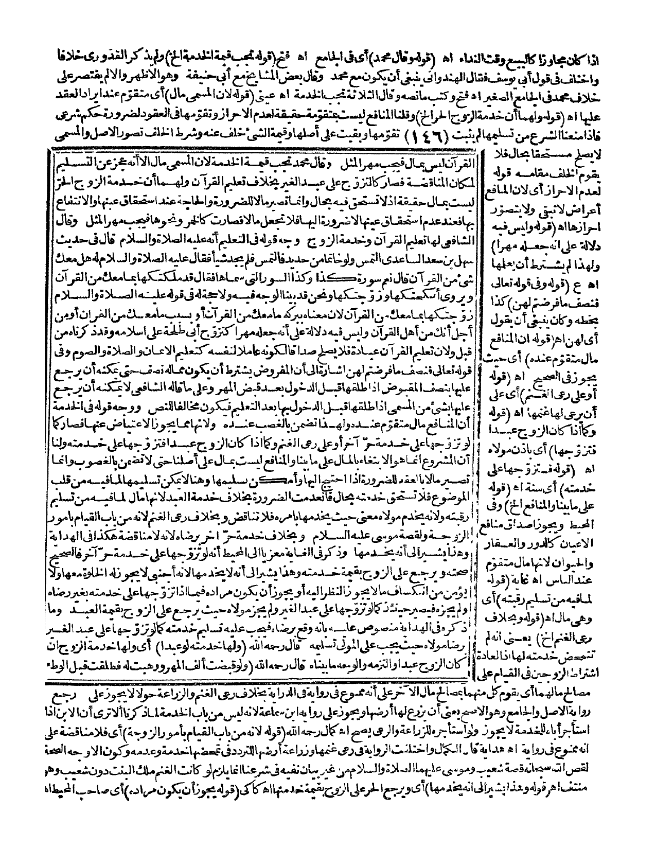 ـــــــــــــــــــــــــــــQإذَا كَانَ مُجَاوَزًا كَالْبَيْعِ وَقْتَ النِّدَاءِ اهـ. (قَوْلُهُ: وَقَالَ مُحَمَّدٌ) أَيْ فِي الْجَامِعِ اهـ. فَتْحٌ (قَوْلُهُ: تَجِبُ قِيمَةُ الْخِدْمَةِ إلَخْ) وَلَمْ يَذْكُرْ الْقُدُورِيُّ خِلَافًا وَاخْتُلِفَ فِي قَوْلِ أَبِي يُوسُفَ فَقَالَ الْهِنْدُوَانِيُّ يَنْبَغِي أَنْ يَكُونَ مَعَ مُحَمَّدٍ، وَقَالَ بَعْضُ الْمَشَايِخِ مَعَ أَبِي حَنِيفَةَ وَهُوَ الْأَظْهَرُ وَإِلَّا لَمْ يَقْتَصِرْ عَلَى خِلَافِ مُحَمَّدٍ فِي الْجَامِعِ الصَّغِيرِ اهـ. فَتْحٌ وَكَتَبَ مَا نَصُّهُ: وَقَالَ الثَّلَاثَةُ تَجِبُ الْخِدْمَةُ اهـ. عَيْنِيٌّ (قَوْلُهُ: لِأَنَّ الْمُسَمَّى مَالٌ) أَيْ مُتَقَوِّمٌ عِنْدَ إيرَادِ الْعَقْدِ عَلَيْهَا اهـ. (قَوْلُهُ: وَلَهُمَا أَنَّ خِدْمَةَ الزَّوْجِ الْحُرِّ إلَخْ) وَقُلْنَا الْمَنَافِعُ لَيْسَتْ بِمُتَقَوِّمَةٍ حَقِيقَةً لِعَدَمِ الْإِحْرَازِ وَتَقَوُّمُهَا فِي الْعُقُودِ لِضَرُورَةِ حُكْمٍ شَرْعِيٍّ فَإِذَا مَنَعْنَا الشَّرْعَ مِنْ تَسْلِيمِهَا لَمْ يَثْبُتْ تَقَوُّمُهَا وَبَقِيَتْ عَلَى أَصْلِهَا وَقِيمَةُ الشَّيْءِ خَلَفٌ عَنْهُ وَشَرْطُ الْخَلَفِ تَصَوُّرُ الْأَصْلِ وَالْمُسَمَّى لَا يَصْلُحُ مُسْتَحَقًّا بِحَالٍ فَلَا يَقُومُ الْخَلَفُ مَقَامَهُ قَوْلُهُ: لِدَعْمِ الْإِحْرَازِ أَيْ لِأَنَّ الْمَنَافِعَ أَعْرَاضٌ لَا تَبْقَى وَلَا يُتَصَوَّرُ إحْرَازُهَا اهـ. (قَوْلُهُ: وَلَيْسَ فِيهِ دَلَالَةٌ عَلَى أَنَّهُ جَعَلَهُ مَهْرًا) وَلِهَذَا لَمْ يَشْتَرِطْ أَنْ يُعَلِّمَهَا اهـ. ع (قَوْلُهُ: وَفِي قَوْله تَعَالَى {فَنِصْفُ مَا فَرَضْتُمْ} [البقرة: 237] كَذَا بِخَطِّهِ وَكَانَ يَنْبَغِي أَنْ يَقُولَ أَيْ لَهُنَّ اهـ. (قَوْلُهُ: إنَّ الْمَنَافِعَ مَالٌ مُتَقَوِّمٌ عِنْدَهُ) أَيْ حَيْثُ يَجُوزُ فِي الصَّحِيحِ اهـ. (قَوْلُهُ: أَوْ عَلَى رَعْيِ الْغَنَمِ) أَيْ عَلَى أَنْ يَرْعَى لَهَا غَنَمَهَا اهـ. (قَوْلُهُ: وَكَمَا إذَا كَانَ الزَّوْجُ عَبْدًا فَتَزَوَّجَهَا) أَيْ بِإِذْنِ مَوْلَاهُ اهـ. (قَوْلُهُ: فَتَزَوَّجَهَا عَلَى خِدْمَتِهِ) أَيْ سَنَةً اهـ. (قَوْلُهُ: عَلَى مَا بَيَّنَّا وَالْمَنَافِعُ إلَخْ) وَفِي الْمُحِيطِ وَيَجُوزُ إصْدَاقُ مَنَافِعِ الْأَعْيَانِ كَالدُّورِ وَالْعَقَارِ وَالْحَيَوَانِ؛ لِأَنَّهَا مَالٌ مُتَقَوِّمٌ عِنْدَ النَّاسِ اهـ. غَايَةٌ (قَوْلُهُ: لِمَا فِيهِ مِنْ تَسْلِيمِ رَقَبَتِهِ) أَيْ وَهِيَ مَالٌ اهـ. (قَوْلُهُ: وَبِخِلَافِ رَعْيِ الْغَنَمِ إلَخْ) يَعْنِي أَنَّهُ لَمْ تَتَمَحَّضْ خِدْمَتُهُ لَهَا إذْ الْعَادَةُ اشْتِرَاطُ الزَّوْجَيْنِ فِي الْقِيَامِ عَلَى مَصَالِحِ مَالِهِمَا أَيْ يَقُومُ كُلٌّ مِنْهُمَا بِمَصَالِحِ مَالِ الْآخَرِ عَلَى أَنَّهُ مَمْنُوعٌ فِي رِوَايَةٍ فِي الدِّرَايَةِ بِخِلَافِ رَعْيِ الْغَنَمِ وَالزِّرَاعَةِ حَوْلًا لَا يَجُوزُ عَلَى رِوَايَةِ الْأَصْلِ وَالْجَامِعِ وَهُوَ الْأَصَحُّ يَعْنِي أَنْ يَزْرَعَ لَهَا أَرْضًا وَيَجُوزُ عَلَى رِوَايَةِ ابْنِ سِمَاعَةَ؛ لِأَنَّهُ لَيْسَ مِنْ بَابِ الْخِدْمَةِ لِمَا ذَكَرْنَا أَلَا تَرَى أَنَّ الِابْنَ إذَا اسْتَأْجَرَ أَبَاهُ لِلْخِدْمَةِ لَا يَجُوزُ وَلَوْ اسْتَأْجَرَهُ لِلزِّرَاعَةِ وَالرَّعْيِ يَصِحُّ اهـ. كَمَالٌ - رَحِمَهُ اللَّهُ - (قَوْلُهُ: لِأَنَّهُ مِنْ بَابِ الْقِيَامِ بِأُمُورِ الزَّوْجَةِ) أَيْ فَلَا مُنَاقَضَةَ عَلَى أَنَّهُ مَمْنُوعٌ فِي رِوَايَةٍ اهـ. هِدَايَةٌ قَالَ الْكَمَالُ، وَاخْتَلَفَتْ الرِّوَايَةُ فِي رَعْيِ غَنَمِهَا وَزِرَاعَةِ أَرْضِهَا لِلتَّرَدُّدِ فِي تَمَحُّضِهَا خِدْمَةً وَعَدَمِهِ، وَكَوْنُ الْأَوْجَهِ الصِّحَّةَ لَقَصَّ اللَّهُ سُبْحَانَهُ قِصَّةَ شُعَيْبٍ وَمُوسَى - عَلَيْهِمَا الصَّلَاةُ وَالسَّلَ