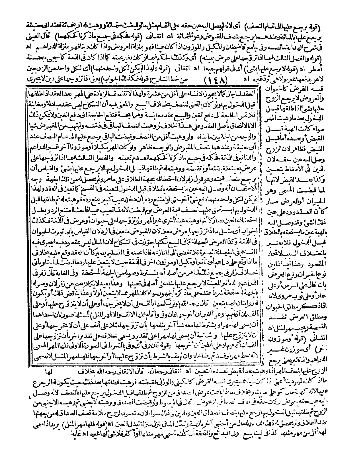 ـــــــــــــــــــــــــــــQقَوْلُهُ: يَرْجِعُ عَلَيْهَا إلَى تَمَامِ النِّصْفِ) أَيْ؛ لِأَنَّهُ لَمْ يَصِلْ إلَيْهِ عَيْنُ حَقِّهِ عَلَى التَّمَامِ مِثْلَ مَا لَوْ قَبَضَتْ سِتَّمِائَةٍ وَوَهَبَتْ لَهُ أَرْبَعَمِائَةٍ فَعِنْدَ أَبِي حَنِيفَةَ يَرْجِعُ عَلَيْهَا بِالْمِائَةِ، وَعِنْدَهُمَا يَرْجِعُ بِنِصْفِ الْمَقْبُوضِ وَهُوَ ثَلَثُمِائَةٍ اهـ. أَتْقَانِيٌّ (قَوْلُهُ: فَحُكْمُهُ فِي جَمِيعِ مَا ذَكَرْنَا كَحُكْمِهَا) قَالَ الْعَيْنِيُّ فِي شَرْحِ الْهِدَايَةِ مَا نَصُّهُ وَفِي جَامِعِ قَاضِي خَانْ وَالْمَكِيلُ وَالْمَوْزُونُ إذَا كَانَ عَيْنًا فَهُوَ بِمَنْزِلَةِ الْعُرُوضِ، وَإِذَا كَانَ دَيْنًا فَهُوَ بِمَنْزِلَةِ الدَّرَاهِمِ اهـ. (قَوْلُهُ: وَالْفَصْلُ الثَّالِثُ فِيمَا إذَا تَزَوَّجَهَا عَلَى عَرْضٍ بِعَيْنِهِ) أَيْ وَكَذَلِكَ الْحُكْمُ فِيمَا لَوْ كَانَ بِغَيْرِ عَيْنِهِ كَمَا إذَا كَانَ فِي الذِّمَّةِ كَمَا سَيَجِيءُ بَعْدَ سِتَّةِ أَسْطُرٍ اهـ. (قَوْلُهُ: لَا يَرْجِعُ عَلَيْهَا بِشَيْءٍ) أَيْ فِي قَوْلِهِمْ جَمِيعًا اهـ. أَتْقَانِيٌّ (قَوْلُهُ: وَلِهَذَا لَمْ يَكُنْ لِكُلِّ وَاحِدٍ مِنْهُمَا) أَيْ لِكُلِّ وَاحِدٍ مِنْ الزَّوْجَيْنِ لَا هُوَ يَدْفَعُهَا غَيْرُهُ وَلَا هِيَ تَرُدُّ غَيْرَهُ اهـ، مِنْ خَطِّ الشَّارِحِ. (قَوْلُهُ: فَكَذَلِكَ الْجَوَابُ) يَعْنِي إذَا تَزَوَّجَهَا عَلَى دَيْنٍ لَا يَجْرِي فِيهِ الْقَرْضُ كَالْحَيَوَانِ وَالْعُرُوضِ لَا يَرْجِعُ الزَّوْجُ عَلَيْهَا بِشَيْءٍ إذَا طَلَّقَهَا قَبْلَ الدُّخُولِ بَعْدَ مَا وَهَبَتْ الْمَهْرَ سَوَاءٌ كَانَتْ الْهِبَةُ قَبْلَ الْقَبْضِ أَوْ بَعْدَهُ أَمَّا قَبْلَ الْقَبْضِ فَظَاهِرٌ؛ لِأَنَّ الزَّوْجَ وَصَلَ إلَيْهِ عَيْنُ حَقِّهِ؛ لِأَنَّ الدَّيْنَ فِي الْإِسْقَاطِ يَتَعَيَّنُ، وَكَذَا بَعْدَ الْقَبْضِ؛ لِأَنَّهَا لَمَّا قَبَضَتْ الْمُسَمَّى وَهُوَ الْحَيَوَانُ أَوْ الْعَرْضُ صَارَ كَأَنَّ الْعَقْدَ وَرَدَ عَلَى عَيْنِ ذَلِكَ الشَّيْءِ، وَقَدْ وَصَلَ إلَيْهِ بِالْهِبَةِ عَيْنُ مَا يَسْتَحِقُّهُ بِالطَّلَاقِ قَبْلَ الدُّخُولِ فَلَا يُعْتَبَرُ بِاخْتِلَافِ السَّبَبِ لِاتِّحَادِ الْمَقْصُودِ، وَهَذَا فِيمَا إذَا بَيَّنَ نَوْعَ الْحَيَوَانِ وَنَوْعَ الْعَرْضِ بِأَنْ قَالَ عَلَى فَرَسٍ أَوْ عَلَى حِمَارٍ أَوْ عَلَى ثَوْبٍ مَرْوِيٍّ؛ لِأَنَّهُ إذَا ذَكَرَ مُطْلَقَ الْحَيَوَانِ وَمُطْلَقَ الْعَرْضِ تَفْسُدُ التَّسْمِيَةُ وَيَجِبُ مَهْرُ الْمِثْلِ اهـ. أَتْقَانِيٌّ (قَوْلُهُ: أَوْ مَوْزُونٍ آخَرَ) أَيْ مَوْزُونٍ غَيْرِ الدَّرَاهِمِ وَالدَّنَانِيرِ يَعْنِي يَرْجِعُ الزَّوْجُ عَلَيْهَا بِنِصْفِ الْمَهْرِ إذَا وَهَبَتْ بَعْدَ الْقَبْضِ لِعَدَمِ التَّعْيِينِ اهـ. أَتْقَانِيٌّ - رَحِمَهُ اللَّهُ - قَالَ الْأَتْقَانِيُّ - رَحِمَهُ اللَّهُ - بِخِلَافِ مَا إذَا كَانَ الْمَهْرُ دَيْنًا أَعْنِي إذَا كَانَ دَيْنًا مِمَّا يَجْرِي فِيهِ الْقَرْضُ كَالْكَيْلِيِّ وَالْوَزْنِيِّ فَقَبَضَتْهُ فَوَهَبَتْهُ فَطَلَّقَهَا بَعْدَ ذَلِكَ حَيْثُ يَكُونُ لَهُ الرُّجُوعُ عَلَيْهَا؛ لِأَنَّهُ كَهِبَةِ مَالٍ آخَرَ عَلَى مَا بَيَّنَّا وَبِخِلَافِ مَا إذَا بَاعَتْ عَرْضَ الصَّدَاقِ مِنْ الزَّوْجِ، ثُمَّ طَلَّقَهَا قَبْلَ الدُّخُولِ يَرْجِعُ عَلَيْهَا بِالنِّصْفِ؛ لِأَنَّهُ وَصَلَ إلَيْهِ عَيْنُ حَقِّهِ بِعِوَضٍ وَكَانَ حَقُّهُ فِي نِصْفِ الصَّدَاقِ بِلَا عِوَضٍ قَالَ فِي الْمَبْسُوطِ وَلَوْ قَبَضَتْ الصَّدَاقَ وَوَهَبَتْهُ لِأَجْنَبِيٍّ، ثُمَّ وَهَبَهُ الْأَجْنَبِيُّ مِنْ الزَّوْجِ، ثُمَّ طَلَّقَهَا قَبْلَ الدُّخُولِ بِهَا رَجَعَ عَلَيْهَا بِنِصْفِ الصَّدَاقِ، الْعَيْنُ وَالدَّيْنُ فِي ذَلِكَ سَوَاءٌ؛ لِأَنَّ مَقْصُو