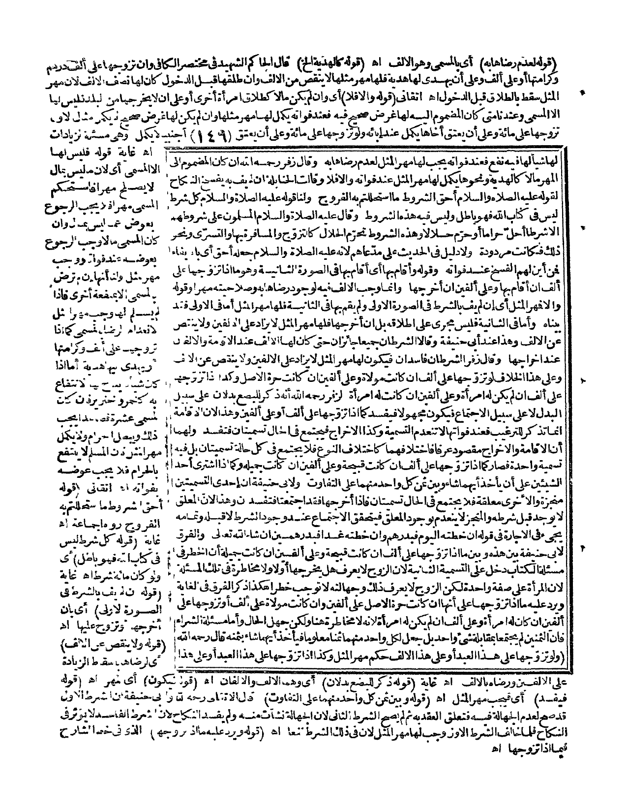 ـــــــــــــــــــــــــــــQقَوْلُهُ: لِعَدَمِ رِضَاهَا بِهِ) أَيْ بِالْمُسَمَّى وَهُوَ الْأَلْفُ اهـ. (قَوْلُهُ: كَالْهَدِيَّةِ إلَخْ) قَالَ الْحَاكِمُ الشَّهِيدُ فِي مُخْتَصَرِ الْكَافِي وَإِنْ تَزَوَّجَهَا عَلَى أَلْفِ دِرْهَمٍ وَكَرَامَتِهَا أَوْ عَلَى أَلْفٍ وَعَلَى أَنْ يُهْدِيَ لَهَا هَدِيَّةً فَلَهَا مَهْرُ مِثْلِهَا لَا يُنْقِصُ مِنْ الْأَلْفِ وَإِنْ طَلَّقَهَا قَبْلَ الدُّخُولِ كَانَ لَهَا نِصْفُ الْأَلْفِ؛ لِأَنَّ مَهْرَ الْمِثْلِ سَقَطَ بِالطَّلَاقِ قَبْلَ الدُّخُولِ اهـ. أَتْقَانِيٌّ (قَوْلُهُ: وَإِلَّا فَلَا) أَيْ وَإِنْ لَمْ يَكُنْ مَالًا كَطَلَاقِ امْرَأَةٍ أُخْرَى أَوْ عَلَى أَنْ لَا يُخْرِجَهَا مِنْ الْبَلَدِ، فَلَيْسَ لَهَا إلَّا الْمُسَمَّى، وَعِنْدَنَا مَتَى كَانَ الْمَضْمُومُ إلَيْهِ لَهَا غَرَضٌ صَحِيحٌ فِيهِ فَعِنْدَ فَوَاتِهِ يُكْمِلُ لَهَا مَهْرَ مِثْلِهَا وَإِنْ لَمْ يَكُنْ لَهَا غَرَضٌ صَحِيحٌ لَا يُكْمِلُ، مِثَالُ الْأَوَّلِ تَزَوَّجَهَا عَلَى مِائَةٍ وَعَلَى أَنْ يُعْتِقَ أَخَاهَا يُكْمِلُ عِنْدَ إبَائِهِ وَلَوْ تَزَوَّجَهَا عَلَى مِائَةٍ وَعَلَى أَنْ يُعْتِقَ أَجْنَبِيًّا لَا يُكْمِلُ وَهِيَ مَسْأَلَةُ الزِّيَادَاتِ اهـ. غَايَةٌ قَوْلِهِ، فَلَيْسَ لَهَا إلَّا الْمُسَمَّى أَيْ لِأَنَّ مَا لَيْسَ بِمَالٍ لَا يَصْلُحُ مَهْرًا فَاسْتَحْكَمَ الْمُسَمَّى مَهْرًا فَلَا يَجِبُ الرُّجُوعُ بِعِوَضٍ عَمَّا لَيْسَ بِمَالٍ وَإِنْ كَانَ الْمُسَمَّى مَالًا وَجَبَ الرُّجُوعُ بِعِوَضِهِ عِنْدَ فَوَاتِهِ وَوَجَبَ مَهْرُ الْمِثْلِ وَلَنَا أَنَّهَا إنْ لَمْ تَرْضَ بِالْمُسَمَّى إلَّا بِمَنْفَعَةٍ أُخْرَى فَإِذَا لَمْ يُسَلَّمْ لَهَا وَجَبَ مَهْرُ الْمِثْلِ لِانْعِدَامِ الرِّضَا بِالْمُسَمَّى كَمَا إذَا تَزَوَّجَهَا عَلَى أَلْفٍ وَكَرَامَتِهَا أَوْ يُهْدِي إلَيْهَا هَدِيَّةً أَمَّا إذَا كَانَ شَيْئًا لَا يُبَاحُ لَهَا الِانْتِفَاعُ بِهِ كَالْخَمْرِ وَالْخِنْزِيرِ فَإِنْ كَانَ الْمُسَمَّى عَشْرَةً فَصَاعِدًا يَجِبُ ذَلِكَ وَيَبْطُلُ الْحَرَامُ وَلَا يُكْمِلُ مَهْرَ الْمِثْلِ؛ لِأَنَّ الْمُسْلِمَ لَا يَنْتَفِعُ بِالْحَرَامِ فَلَا يَجِبُ عِوَضُهُ بِفَوَاتِهِ. اهـ. أَتْقَانِيٌّ. (قَوْلُهُ: «أَحَقُّ الشُّرُوطِ مَا اسْتَحْلَلْتُمْ بِهِ الْفُرُوجَ») رَوَاهُ الْجَمَاعَةُ اهـ. غَايَةٌ (قَوْلُهُ: «كُلُّ شَرْطٍ لَيْسَ فِي كِتَابِ اللَّهِ فَهُوَ بَاطِلٌ») أَيْ وَلَوْ كَانَ مِائَةَ شَرْطٍ اهـ. غَايَةٌ (قَوْلُهُ: إنْ لَمْ يَفِ بِالشَّرْطِ فِي الصُّورَةِ الْأُولَى) أَيْ بِأَنْ أَخْرَجَهَا أَوْ تَزَوَّجَ عَلَيْهَا اهـ. (قَوْلُهُ: وَلَا يَنْقُصُ عَنْ الْأَلْفِ) أَيْ لِرِضَاهَا بِإِسْقَاطِ الزِّيَادَةِ عَلَى الْأَلْفَيْنِ وَرِضَاهُ بِالْأَلْفِ اهـ. غَايَةٌ (قَوْلُهُ: ذُكِرَ لِلْبُضْعِ بَدَلَانِ) أَيْ وَهُمَا الْأَلْفُ وَالْأَلْفَانِ اهـ. (قَوْلُهُ: فَيَكُونُ) أَيْ الْمَهْرُ اهـ. (قَوْلُهُ: فَيَفْسُدُ) أَيْ فَيَجِبُ مَهْرُ الْمِثْلِ اهـ. (قَوْلُهُ: وَبَيْنَ ثَمَنِ كُلِّ وَاحِدٍ مِنْهُمَا عَلَى التَّفَاوُتِ) قَالَ الْأَتْقَانِيُّ - رَحِمَهُ اللَّهُ - وَلِأَبِي حَنِيفَةَ أَنَّ الشَّرْطَ الْأَوَّلَ قَدْ صَحَّ لِعَدَمِ الْجَهَالَةِ فِيهِ فَتَعَلَّقَ الْعَقْدُ بِهِ، ثُمَّ لَمْ يَصِحَّ الشَّرْطُ الثَّانِي؛ لِأَنَّ الْجَهَالَةَ نَشَأَتْ مِنْهُ وَلَمْ يَفْسُدْ النِّكَاحُ؛ لِأَنَّ الشَّرْطَ الْفَاسِدَ لَا يُؤَثِّرُ فِي النِّكَاحِ فَلَمَّا خَالَفَ الشَّرْطَ الْأَوَّلَ وَجَبَ لَهَا مَهْرُ الْمِثْلِ؛ لِأَنَّ فِي ذَلِكَ الشَّرْطِ نَفْعًا اهـ. (قَوْلُهُ: وَيُرَدُّ عَلَيْهِ مَا إذَا تَزَوَّجَهَا) الَّذِي فِي خَطِّ الشَّارِحِ فِيمَا إذَا تَزَوَّجَهَا اهـ.