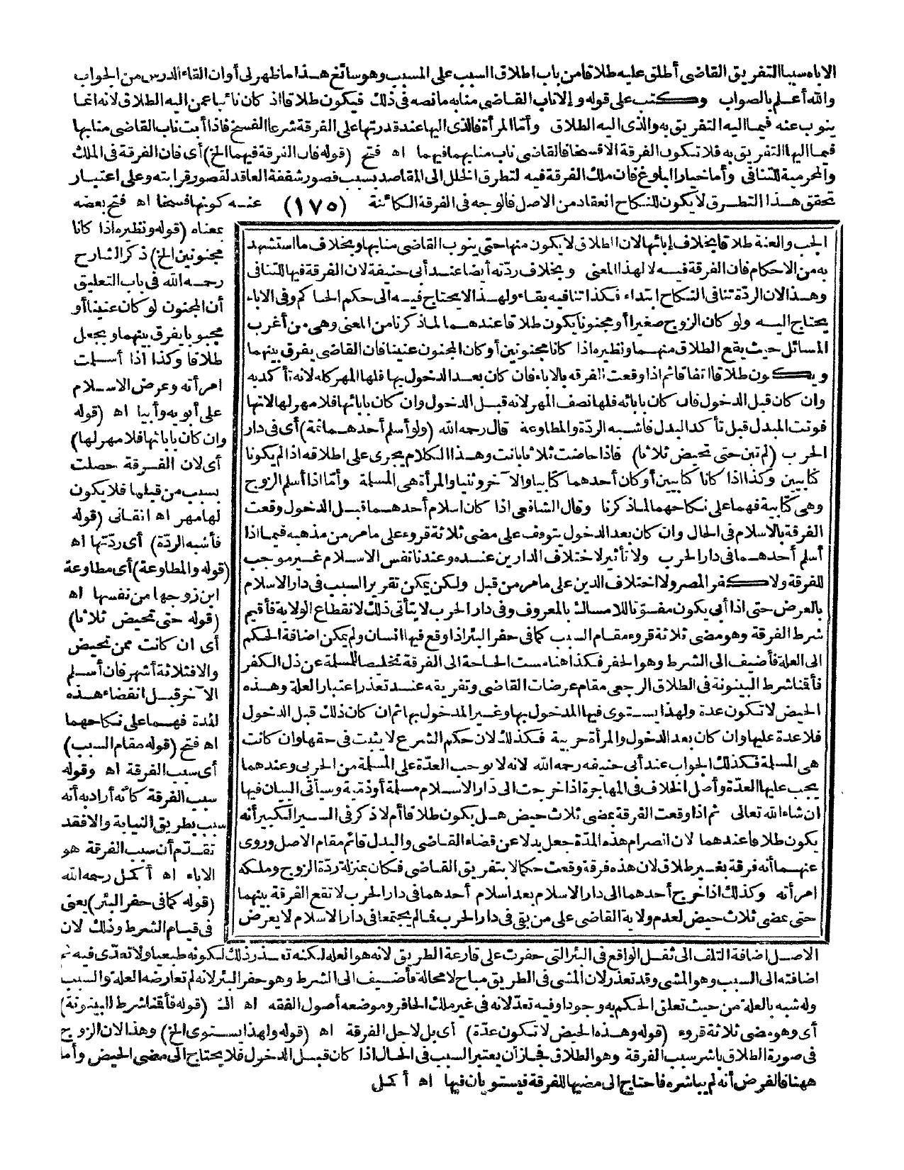 وَقَوْلُهُ: سَبَبَ الْفُرْقَةِ كَأَنَّهُ أَرَادَ بِهِ أَنَّهُ سَبَبٌ بِطَرِيقِ النِّيَابَةِ وَإِلَّا فَقَدْ تَقَدَّمَ أَنَّ سَبَبَ الْفُرْقَةِ هُوَ الْإِبَاءُ اهـ. أَكْمَلُ - رَحِمَهُ اللَّهُ - (قَوْلُهُ: كَمَا فِي حَفْرِ الْبِئْرِ) يَعْنِي فِي قِيَامِ الشَّرْطِ وَذَلِكَ لِأَنَّ الْأَصْلَ إضَافَةُ التَّلَفِ إلَى ثِقَلِ الْوَاقِعِ فِي الْبِئْرِ الَّتِي حُفِرَتْ عَلَى قَارِعَةِ الطَّرِيقِ؛ لِأَنَّهُ هُوَ الْعِلَّةُ لَكِنَّهُ تَعَذَّرَ ذَلِكَ لِكَوْنِهِ طَبْعِيًّا وَلَا تَعَدِّيَ فِيهِ، ثُمَّ إضَافَتُهُ إلَى السَّبَبِ وَهُوَ الْمَشْيُ، وَقَدْ تَعَذَّرَ؛ لِأَنَّ الْمَشْيَ فِي الطَّرِيقِ مُبَاحٌ لَا مَحَالَةَ فَأُضِيفَ إلَى الشَّرْطِ وَهُوَ حَفْرُ الْبِئْرِ؛ لِأَنَّهُ لَمْ تُعَارِضْهُ الْعِلَّةُ وَالسَّبَبُ وَلَهُ شَبَهٌ بِالْعِلَّةِ مِنْ حَيْثُ تَعَلُّقُ الْحُكْمِ بِهِ وُجُودًا وَفِيهِ تَعَدٍّ؛ لِأَنَّهُ فِي غَيْرِ مِلْكِ الْحَافِرِ وَمَوْضِعُهُ أُصُولُ الْفِقْهِ اهـ.