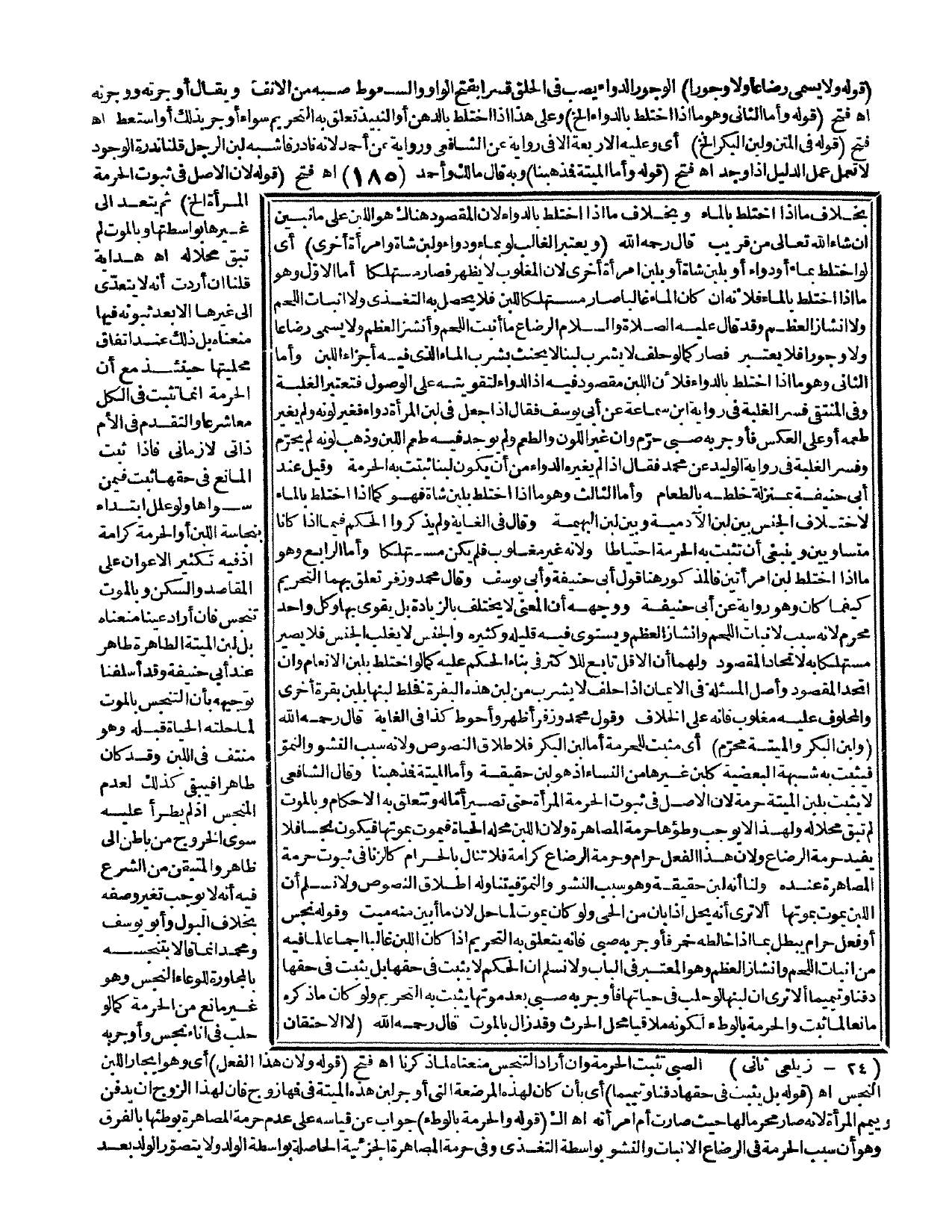 وَأَمَّا الثَّالِثُ وَهُوَ مَا إذَا اخْتَلَطَ بِلَبَنِ شَاةٍ فَهُوَ كَمَا إذَا اخْتَلَطَ بِالْمَاءِ لِاخْتِلَافِ الْجِنْسِ بَيْنَ لَبَنِ الْآدَمِيَّةِ وَبَيْنَ لَبَنِ الْبَهِيمَةِ، وَقَالَ فِي الْغَايَةِ وَلَمْ يَذْكُرُوا الْحُكْمَ فِيمَا إذَا كَانَا مُتَسَاوِيَيْنِ وَيَنْبَغِي أَنْ تَثْبُتَ بِهِ الْحُرْمَةُ احْتِيَاطًا؛ وَلِأَنَّهُ غَيْرُ مَغْلُوبٍ فَلَمْ يَكُنْ مُسْتَهْلَكًا، وَأَمَّا الرَّابِعُ وَهُوَ مَا إذَا اخْتَلَطَ لَبَنُ امْرَأَتَيْنِ فَالْمَذْكُورُ هُنَا قَوْلُ أَبِي حَنِيفَةَ وَأَبِي يُوسُفَ، وَقَالَ مُحَمَّدٌ وَزُفَرُ تَعَلَّقَ بِهِمَا التَّحْرِيمُ كَيْفَمَا كَانَ وَهُوَ رِوَايَةٌ عَنْ أَبِي حَنِيفَةَ وَوَجْهُهُ أَنَّ الْمَعْنَى لَا يَخْتَلِفُ بِالزِّيَادَةِ، بَلْ يَقْوَى بِهَا وَكُلُّ وَاحِدٍ مُحَرِّمٌ؛ لِأَنَّهُ سَبَبٌ لِإِنْبَاتِ اللَّحْمِ وَإِنْشَازِ الْعَظْمِ وَيَسْتَوِي فِيهِ قَلِيلُهُ وَكَثِيرُهُ وَالْجِنْسُ لَا يَغْلِبُ الْجِنْسَ فَلَا يَصِيرُ مُسْتَهْلَكًا بِهِ لِاتِّحَادِ الْمَقْصُودِ وَلَهُمَا أَنَّ الْأَقَلَّ تَابِعٌ لِلْأَكْثَرِ فِي بِنَاءِ الْحُكْمِ عَلَيْهِ، كَمَا لَوْ اخْتَلَطَ بِلَبَنِ الْأَنْعَامِ وَإِنْ اتَّحَدَ الْمَقْصُودُ، وَأَصْلُ الْمَسْأَلَةِ فِي الْأَيْمَانِ إذَا حَلَفَ لَا يَشْرَبُ مِنْ لَبَنِ هَذِهِ الْبَقَرَةِ فَخَلَطَ لَبَنَهَا بِلَبَنِ بَقَرَةٍ أُخْرَى وَالْمَحْلُوفُ عَلَيْهِ مَغْلُوبٌ فَإِنَّهُ عَلَى الْخِلَافِ وَقَوْلُ مُحَمَّدٍ وَزُفَرَ أَظْهَرُ وَأَحْوَطُ كَذَا فِي الْغَايَةِ.