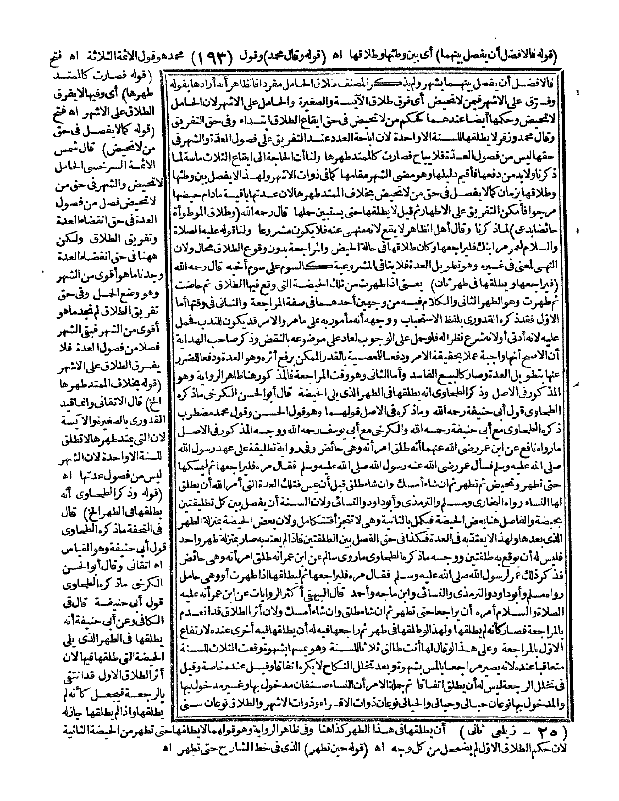 وَذَكَرَ الطَّحَاوِيُّ أَنَّهُ يُطَلِّقُهَا فِي الطُّهْرِ الَّذِي يَلِي الْحَيْضَةَ قَالَ أَبُو الْحَسَنِ الْكَرْخِيُّ مَا ذَكَرَهُ الطَّحَاوِيُّ قَوْلُ أَبِي حَنِيفَةَ - رَحِمَهُ اللَّهُ - وَمَا ذَكَرَهُ فِي الْأَصْلِ قَوْلُهُمَا وَهُوَ قَوْلُ الْحَسَنِ وَقَوْلُ مُحَمَّدٍ مُضْطَرِبٌ ذَكَرَهُ الطَّحَاوِيُّ مَعَ أَبِي حَنِيفَةَ - رَحِمَهُ اللَّهُ - وَالْكَرْخِيُّ مَعَ أَبِي يُوسُفَ - رَحِمَهُ اللَّهُ -، وَوَجْهُ الْمَذْكُورِ فِي الْأَصْلِ مَا رَوَاهُ نَافِعٌ عَنْ «ابْنِ عُمَرَ - رَضِيَ اللَّهُ عَنْهُمَا - أَنَّهُ طَلَّقَ امْرَأَتَهُ وَهِيَ حَائِضٌ» وَفِي رِوَايَةٍ «تَطْلِيقَةً عَلَى عَهْدِ رَسُولِ اللَّهِ - صَلَّى اللَّهُ عَلَيْهِ وَسَلَّمَ - فَسَأَلَ عُمَرُ - رَضِيَ اللَّهُ عَنْهُ - رَسُولَ اللَّهِ - صَلَّى اللَّهُ عَلَيْهِ وَسَلَّمَ - فَقَالَ مُرْهُ فَلْيُرَاجِعْهَا، ثُمَّ لِيُمْسِكْهَا حَتَّى تَطْهُرَ وَتَحِيضَ، ثُمَّ تَطْهُرَ إنْ شَاءَ أَمْسَكَ وَإِنْ شَاءَ طَلَّقَ قَبْلَ أَنْ يَمَسَّ فَتِلْكَ الْعِدَّةُ الَّتِي أَمَرَ اللَّهُ أَنْ يُطَلَّقَ لَهَا النِّسَاءُ». رَوَاهُ الْبُخَارِيُّ وَمُسْلِمٌ وَالتِّرْمِذِيُّ وَأَبُو دَاوُد وَالنَّسَائِيُّ؛