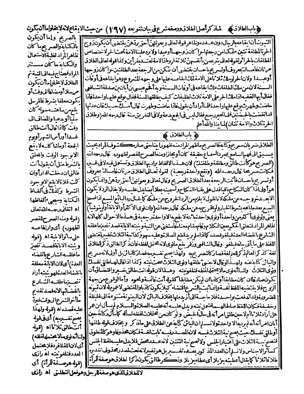 الثُّبُوتِ أَنَّ إيقَاعَهُ بِالرِّجَالِ دُونَ عَدَدِهِ وَظَاهِرُ قَوْله تَعَالَى {وَبُعُولَتُهُنَّ أَحَقُّ بِرَدِّهِنَّ} [البقرة: 228] يَقْتَضِي أَنْ يَكُونَ زَوْجُ الْحُرَّةِ الْمُطَلَّقَةِ ثِنْتَيْنِ مُتَمَكِّنًا مِنْ رَجْعَتِهَا حُرًّا كَانَ زَوْجُهَا أَوْ عَبْدًا وَلَا يُرَدُّ عَلَيْنَا الْأَمَةُ تَحْتَ الْحُرِّ لِاخْتِصَاصِ الْمُطَلَّقَاتِ بِالْحَرَائِرِ لِقَوْلِهِ تَعَالَى {يَتَرَبَّصْنَ بِأَنْفُسِهِنَّ ثَلاثَةَ قُرُوءٍ} [البقرة: 228] إذْ الْأَمَةُ تَعْتَدُّ بِقُرْأَيْنِ، وَكَذَا قَوْله تَعَالَى {الطَّلاقُ مَرَّتَانِ فَإِمْسَاكٌ بِمَعْرُوفٍ أَوْ تَسْرِيحٌ بِإِحْسَانٍ} [البقرة: 229] يَقْتَضِي أَنْ يَتَمَكَّنَ مِنْ الرَّجْعَةِ بَعْدَ الطَّلْقَتَيْنِ حُرًّا كَانَ زَوْجُهَا أَوْ عَبْدًا؛ وَلِأَنَّ الْحُرَّ لَوْ مَلَكَ ثَلَاثًا عَلَى الْأَمَةِ لَمَلَكَ إيقَاعَهُ عَلَيْهَا عَلَى وَجْهِهِ الْمَشْرُوعِ وَهُوَ إيقَاعُهُ فِي أَوْقَاتِ السَّنَةِ؛ لِأَنَّ مَنْ مَلَكَ الطَّلْقَاتِ يَمْلِكُ إيقَاعَهُ فِي أَوْقَاتِ السَّنَةِ وَبِهِ أَفْحَمَ عِيسَى بْنُ أَبَانَ بْنِ صَدَقَةَ الشَّافِعِيَّ فَقَالَ أَيُّهَا الْفَقِيهُ إذَا مَلَكَ الْحُرُّ عَلَى الْأَمَةِ ثَلَاثَ تَطْلِيقَاتٍ كَيْفَ يُطَلِّقُهَا لِلسُّنَّةِ فَقَالَ يُوقِعُ عَلَيْهَا وَاحِدَةً فَإِذَا حَاضَتْ وَطَهُرَتْ يُوقِعُ عَلَيْهَا وَاحِدَةً فَلَمَّا أَرَادَ أَنْ يَقُولَ فَإِذَا حَاضَتْ وَطَهُرَتْ قَالَ أَمْسِكْ حَسْبُك فَإِنَّ عِدَّتَهَا قَدْ انْقَضَتْ بِالْحَيْضَتَيْنِ فَلَمَّا تَحَيَّرَ رَجَعَ فَقَالَ لَيْسَ فِي الْجَمْعِ بِدْعَةٌ وَلَا فِي التَّفْرِيقِ سُنَّةٌ. قَالَ - رَحِمَهُ اللَّهُ - (وَطَلَاقُ الْحُرَّةِ ثَلَاثٌ وَالْأَمَةُ ثِنْتَانِ) لِمَا بَيَّنَّا وَاَللَّهُ أَعْلَمُ.