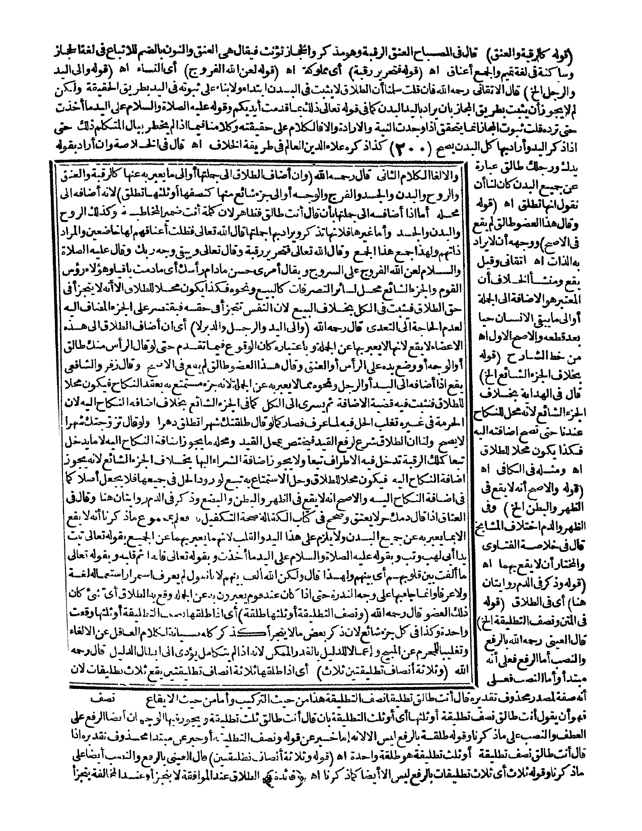 ـــــــــــــــــــــــــــــQقَوْلُهُ كَالرَّقَبَةِ وَالْعُنُقِ) قَالَ فِي الْمِصْبَاحِ الْعُنُقُ الرَّقَبَةُ وَهُوَ مُذَكَّرٌ وَالْحِجَازُ تُؤَنِّثُ فَيُقَالُ هِيَ الْعُنُقُ وَالنُّونُ بِالضَّمِّ لِلِاتِّبَاعِ فِي لُغَةِ الْحِجَازِ وَسَاكِنَةٌ فِي لُغَةِ تَمِيمٍ وَالْجَمْعُ أَعْنَاقٌ. اهـ. (قَوْلُهُ فَتَحْرِيرُ رَقَبَةٍ) أَيْ مَمْلُوكَةٍ. اهـ. (قَوْلُهُ لَعَنَ اللَّهُ الْفُرُوجَ) أَيْ النِّسَاءَ. اهـ. (قَوْلُهُ وَإِلَى الْيَدِ وَالرِّجْلِ إلَخْ) قَالَ الْأَتْقَانِيُّ - رَحِمَهُ اللَّهُ - فَإِنْ قُلْت سَلَّمْنَا أَنَّ الطَّلَاقَ لَا يَثْبُتُ فِي الْبَدَنِ ابْتِدَاءً وَلَا بِنَاءَ عَلَى ثُبُوتِهِ فِي الْيَدِ بِطَرِيقِ الْحَقِيقَةِ وَلَكِنْ لِمَ لَا يَجُوزُ أَنْ يَثْبُتَ بِطَرِيقِ الْمَجَازِ بِأَنْ يُرَادَ بِالْيَدِ الْبَدَنُ كَمَا فِي قَوْله تَعَالَى {ذَلِكَ بِمَا قَدَّمَتْ أَيْدِيكُمْ} [آل عمران: 182]. وَقَوْلُهُ - عَلَيْهِ الصَّلَاةُ وَالسَّلَامُ - «عَلَى الْيَدِ مَا أَخَذَتْ حَتَّى تَرُدَّهُ» قُلْت ثُبُوتُ الْمَجَازِ إنَّمَا يَتَحَقَّقُ إذَا وُجِدَتْ النِّيَّةُ وَالْإِرَادَةُ وَإِلَّا فَالْكَلَامُ عَلَى حَقِيقَتِهِ وَكَلَامُنَا فِيمَا إذَا لَمْ يَخْطِرْ بِبَالِ الْمُتَكَلِّمِ ذَلِكَ حَتَّى إذَا ذَكَرَ الْيَدَ وَأَرَادَ بِهَا كُلَّ الْبَدَنِ يَصِحُّ كَذَا ذَكَرَهُ عَلَاءُ الدِّينِ الْعَالِمُ فِي طَرِيقَةِ الْخِلَافِ اهـ قَالَ فِي الْخُلَاصَةِ وَإِنْ أَرَادَ بِقَوْلِهِ يَدُك وَرِجْلُك طَالِقٌ عِبَارَةً عَنْ جَمِيعِ الْبَدَنِ كَانَ لَنَا أَنْ نَقُولَ إنَّهَا تَطْلُقُ. اهـ. (قَوْلُهُ، وَقَالَ هَذَا الْعُضْوُ طَالِقٌ لَمْ يَقَعْ فِي الْأَصَحِّ) وَوَجْهُهُ أَنْ لَا يُرَادَ بِهِ الذَّاتُ. اهـ. أَتْقَانِيٌّ وَقِيلَ يَقَعُ وَمَنْشَأُ الْخِلَافِ أَنَّ الْمُعْتَبَرَ هُوَ الْإِضَافَةُ إلَى الْجُمْلَةِ أَوْ إلَى مَا يَبْقَى الْإِنْسَانُ حَيًّا بَعْدَ قَطْعِهِ وَالْأَصَحُّ الْأَوَّلُ اهـ مِنْ خَطِّ الشَّارِحِ. (قَوْلُهُ بِخِلَافِ الْجُزْءِ الشَّائِعِ إلَخْ) قَالَ فِي الْهِدَايَةِ بِخِلَافِ الْجُزْءِ الشَّائِعِ؛ لِأَنَّهُ مَحَلٌّ لِلنِّكَاحِ عِنْدَنَا حَتَّى تَصِحَّ إضَافَتُهُ إلَيْهِ فَكَذَا يَكُونُ مَحَلًّا لِلطَّلَاقِ اهـ وَمِثْلُهُ فِي الْكَافِي. اهـ. (قَوْلُهُ وَالْأَصَحُّ أَنَّهُ لَا يَقَعُ فِي الظَّهْرِ وَالْبَطْنِ إلَخْ) وَفِي الظَّهْرِ وَالدَّمِ اخْتِلَافُ الْمَشَايِخِ قَالَ فِي خُلَاصَةِ الْفَتَاوَى وَالْمُخْتَارُ أَنْ لَا يَقَعَ بِهِمَا. اهـ. (قَوْلُهُ وَذُكِرَ فِي الدَّمِ رِوَايَتَانِ هُنَا) أَيْ فِي الطَّلَاقِ.