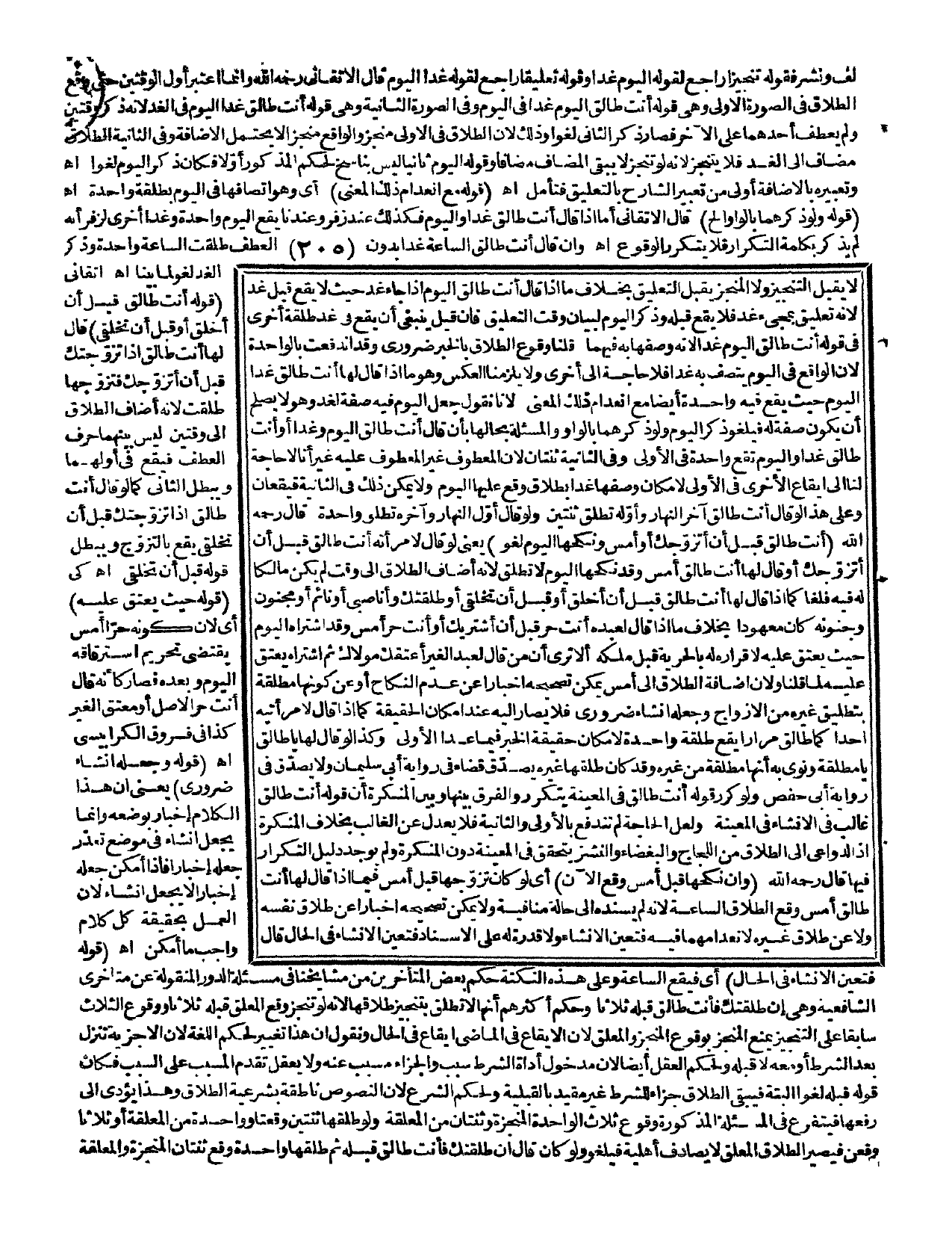 لَا يَقْبَلُ التَّنْجِيزَ وَلَا الْمُنَجَّزُ يَقْبَلُ التَّعْلِيقَ بِخِلَافِ مَا إذَا قَالَ أَنْتِ طَالِقٌ الْيَوْمَ إذَا جَاءَ غَدٌ حَيْثُ لَا يَقَعُ قَبْلَ غَدٍ؛ لِأَنَّهُ تَعْلِيقٌ بِمَجِيءِ غَدٍ فَلَا يَقَعُ قَبْلَهُ، وَذَكَرَ الْيَوْمَ لِبَيَانِ وَقْتِ التَّعْلِيقِ فَإِنْ قِيلَ يَنْبَغِي أَنْ يَقَعَ فِي غَدٍ طَلْقَةٌ أُخْرَى فِي قَوْلِهِ أَنْتِ طَالِقٌ الْيَوْمَ غَدًا؛ لِأَنَّهُ وَصَفَهَا بِهِ فِيهِمَا قُلْنَا وُقُوعُ الطَّلَاقِ بِالْخَبَرِ ضَرُورِيٌّ وَقَدْ انْدَفَعَتْ بِالْوَاحِدَةِ؛ لِأَنَّ الْوَاقِعَ فِي الْيَوْمِ يَتَّصِفُ بِهِ غَدًا فَلَا حَاجَةَ إلَى أُخْرَى وَلَا يَلْزَمُنَا الْعَكْسُ وَهُوَ مَا إذَا قَالَ لَهَا أَنْتِ طَالِقٌ غَدًا الْيَوْمَ حَيْثُ يَقَعُ فِيهِ وَاحِدَةٌ أَيْضًا مَعَ انْعِدَامِ ذَلِكَ الْمَعْنَى؛ لِأَنَّا نَقُولُ جَعَلَ الْيَوْمَ فِيهِ صِفَةً لِغَدٍ وَهُوَ لَا يَصْلُحُ أَنْ يَكُونَ صِفَةً لَهُ فَيَلْغُوَ ذِكْرُ الْيَوْمِ، وَلَوْ ذَكَرَهُمَا بِالْوَاوِ وَالْمَسْأَلَةُ بِحَالِهَا بِأَنْ قَالَ أَنْتِ طَالِقٌ الْيَوْمَ وَغَدًا أَوْ أَنْتِ طَالِقٌ غَدًا وَالْيَوْمَ تَقَعُ وَاحِدَةٌ فِي الْأُولَى وَفِي الثَّانِيَةِ ثِنْتَانِ؛ لِأَنَّ الْمَعْطُوفَ غَيْرُ الْمَعْطُوفِ عَلَيْهِ غَيْرَ أَنَّا لَا حَاجَةَ لَنَا إلَى إيقَاعِ الْأُخْرَى فِي الْأُولَى لِإِمْكَانِ وَصْفِهَا غَدًا بِطَلَاقٍ وَقَعَ عَلَيْهَا الْيَوْمَ وَلَا يُمْكِنُ ذَلِكَ فِي الثَّانِيَةِ فَيَقَعَانِ وَعَلَى هَذَا لَوْ قَالَ أَنْتِ طَالِقٌ آخِرَ النَّهَارِ وَأَوَّلَهُ تَطْلُقُ ثِنْتَيْنِ وَلَوْ قَالَ أَوَّلَ النَّهَارِ وَآخِرَهُ تَطْلُقُ وَاحِدَةً.