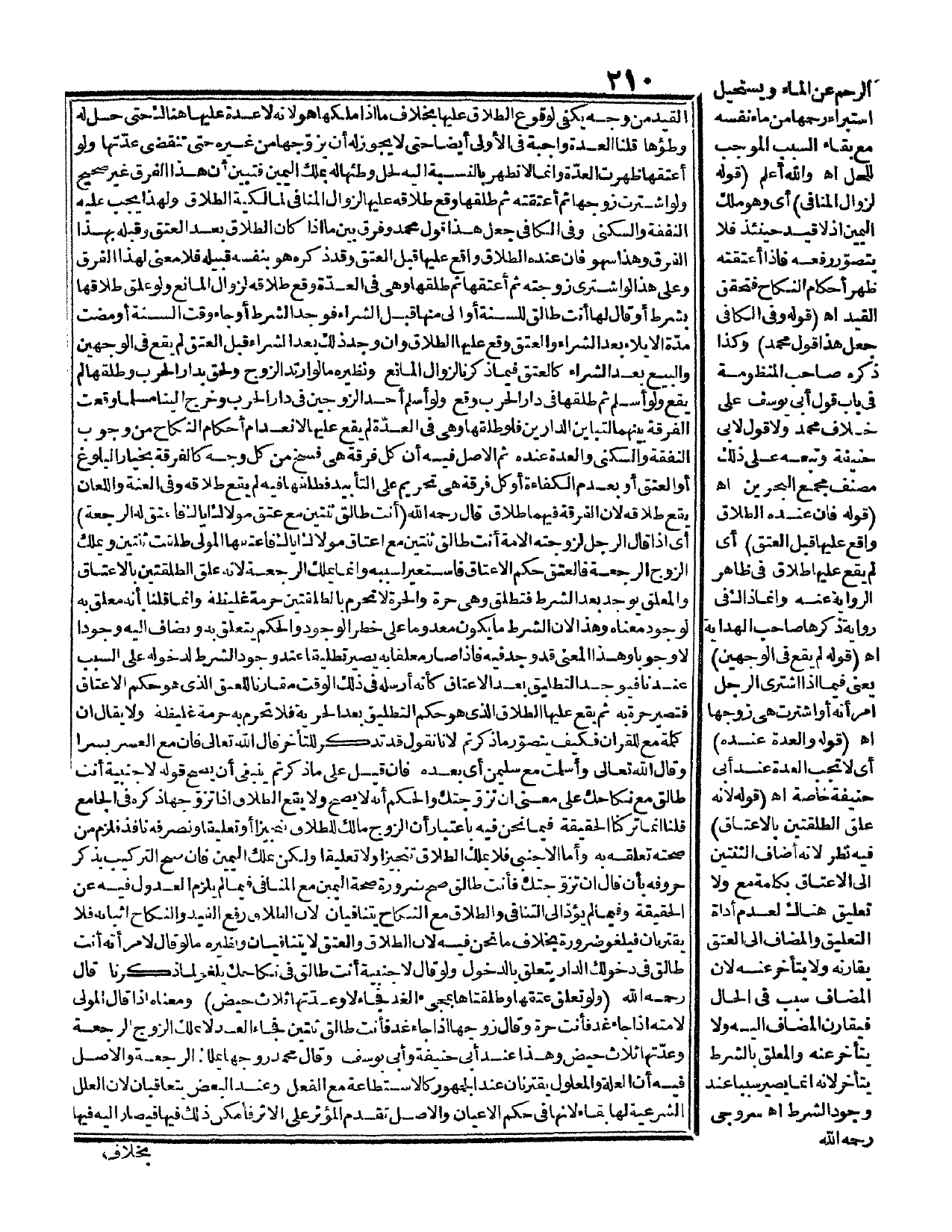 الْقَيْدِ مِنْ وَجْهٍ يَكْفِي لِوُقُوعِ الطَّلَاقِ عَلَيْهَا بِخِلَافِ مَا إذَا مَلَكَهَا هُوَ؛ لِأَنَّهُ لَا عِدَّةَ عَلَيْهَا هُنَاكَ حَتَّى حَلَّ لَهُ وَطْؤُهَا قُلْنَا الْعِدَّةُ وَاجِبَةٌ فِي الْأُولَى أَيْضًا حَتَّى لَا يَجُوزَ لَهُ أَنْ يُزَوِّجَهَا مِنْ غَيْرِهِ حَتَّى تَنْقَضِيَ عِدَّتُهَا، وَلَوْ أَعْتَقَهَا ظَهَرَتْ الْعِدَّةُ وَإِنَّمَا لَا تَظْهَرُ بِالنِّسْبَةِ إلَيْهِ لِحِلِّ وَطْئِهَا لَهُ بِمِلْكِ الْيَمِينِ فَتَبَيَّنَ أَنَّ هَذَا الْفَرْقَ غَيْرُ صَحِيحٍ وَلَوْ اشْتَرَتْ زَوْجَهَا ثُمَّ أَعْتَقَتْهُ ثُمَّ طَلَّقَهَا وَقَعَ طَلَاقُهُ عَلَيْهَا لِزَوَالِ الْمُنَافِي لِمَالِكِيَّةِ الطَّلَاقِ، وَلِهَذَا يَجِبُ عَلَيْهِ النَّفَقَةُ وَالسُّكْنَى وَفِي الْكَافِي جَعَلَ هَذَا قَوْلَ مُحَمَّدٍ وَفَرَّقَ بَيْنَ مَا إذَا كَانَ الطَّلَاقُ بَعْدَ الْعِتْقِ وَقَبْلَهُ بِهَذَا الْفَرْقِ، وَهَذَا سَهْوٌ فَإِنَّ عِنْدَهُ الطَّلَاقُ وَاقِعٌ عَلَيْهَا قَبْلَ الْعِتْقِ وَقَدْ ذَكَرَهُ هُوَ بِنَفْسِهِ قُبَيْلَهُ فَلَا مَعْنَى لِهَذَا الْفَرْقِ وَعَلَى هَذَا لَوْ اشْتَرَى زَوْجَتَهُ ثُمَّ أَعْتَقَهَا ثُمَّ طَلَّقَهَا وَهِيَ فِي الْعِدَّةِ وَقَعَ طَلَاقُهُ لِزَوَالِ الْمَانِعِ، وَلَوْ عَلَّقَ طَلَاقَهَا بِشَرْطٍ أَوْ قَالَ لَهَا أَنْتِ طَالِقٌ لِلسَّنَةِ أَوْ إلَى مِنْهَا قَبْلَ الشِّرَاءِ فَوُجِدَ الشَّرْطُ أَوْ جَاءَ وَقْتُ السَّنَةِ أَوْ مَضَتْ مُدَّةُ الْإِيلَاءِ بَعْدَ الشِّرَاءِ وَالْعِتْقِ وَقَعَ عَلَيْهَا الطَّلَاقُ وَإِنْ وُجِدَ ذَلِكَ بَعْدَ الشِّرَاءِ قَبْلَ الْعِتْقِ لَمْ يَقَعْ فِي الْوَجْهَيْنِ وَالْبَيْعُ بَعْدَ الشِّرَاءِ كَالْعِتْقِ فِيمَا ذَكَرْنَا لِزَوَالِ الْمَانِعِ وَنَظِيرُهُ مَا لَوْ ارْتَدَّ الزَّوْجُ وَلَحِقَ بِدَارِ الْحَرْبِ وَطَلَّقَهَا لَمْ يَقَعْ، وَلَوْ أَسْلَمَ ثُمَّ طَلَّقَهَا فِي دَارِ الْحَرْبِ وَقَعَ، وَلَوْ أَسْلَمَ أَحَدُ الزَّوْجَيْنِ فِي دَارِ الْحَرْبِ وَخَرَجَ إلَيْنَا مُسْلِمًا وَقَعَتْ الْفُرْقَةُ بَيْنَهُمَا لِتَبَايُنِ الدَّارَيْنِ فَلَوْ طَلَّقَهَا وَهِيَ فِي الْعِدَّةِ لَمْ يَقَعْ عَلَيْهَا لِانْعِدَامِ أَحْكَامِ النِّكَاحِ مِنْ وُجُوبِ النَّفَقَةِ وَالسُّكْنَى وَالْعِدَّةِ عِنْدَهُ ثُمَّ الْأَصْلُ فِيهِ أَنَّ كُلَّ فُرْقَةٍ هِيَ فَسْخٌ مِنْ كُلِّ وَجْهٍ كَالْفُرْقَةِ بِخِيَارِ الْبُلُوغِ أَوْ الْعِتْقِ أَوْ بِعَدَمِ الْكَفَاءَةِ أَوْ كُلُّ فُرْقَةٍ هِيَ تَحْرِيمٌ عَلَى التَّأْبِيدِ فَطَلَّقَهَا فِيهِ لَمْ يَقَعْ طَلَاقُهُ وَفِي الْعُنَّةِ وَاللِّعَانِ يَقَعُ طَلَاقُهُ؛ لِأَنَّ الْفُرْقَةَ فِيهِمَا طَلَاقٌ.