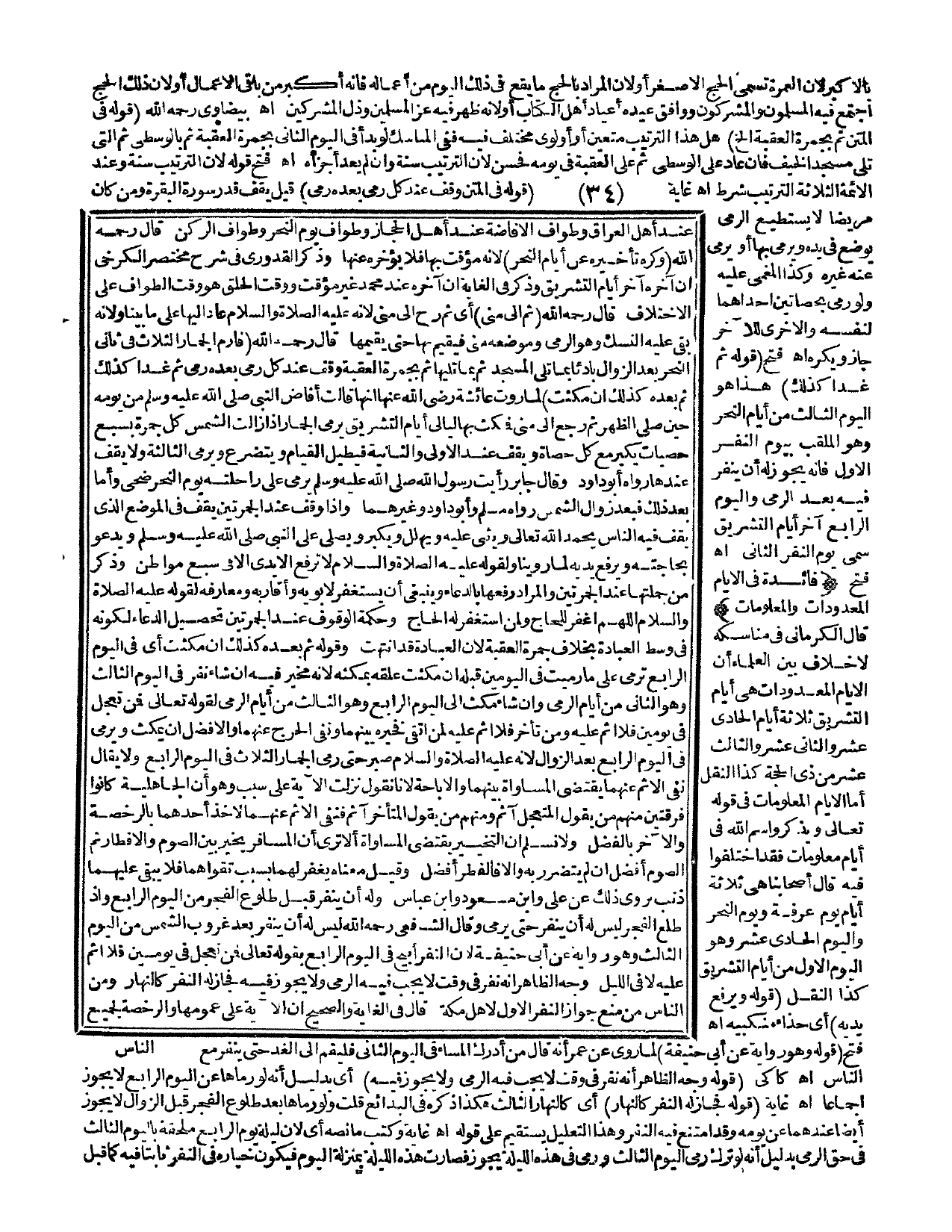 عِنْدَ أَهْلِ الْعِرَاقِ وَطَوَافَ الْإِفَاضَةِ عِنْدَ أَهْلِ الْحِجَازِ وَطَوَافَ يَوْمِ النَّحْرِ وَطَوَافَ الرُّكْنِ قَالَ - رَحِمَهُ اللَّهُ - (وَكُرِهَ تَأْخِيرُهُ عَنْ أَيَّامِ النَّحْرِ)؛ لِأَنَّهُ مُؤَقَّتٌ بِهَا فَلَا يُؤَخِّرْهُ عَنْهَا وَذَكَرَ الْقُدُورِيُّ فِي شَرْحِ مُخْتَصَرِ الْكَرْخِيِّ إنْ أَخَّرَهُ آخِرَ أَيَّامِ التَّشْرِيقِ وَذَكَرَ فِي الْغَايَةِ إنْ أَخَّرَهُ عِنْدَ مُحَمَّدٍ غَيْرَ مُؤَقَّتٍ وَوَقْتُ الْحَلْقِ هُوَ وَقْتُ الطَّوَافِ عَلَى الِاخْتِلَافِ قَالَ - رَحِمَهُ اللَّهُ - (ثُمَّ إلَى مِنًى) أَيْ ثُمَّ رُحْ إلَى مِنًى؛ لِأَنَّهُ - عَلَيْهِ الصَّلَاةُ وَالسَّلَامُ - عَادَ إلَيْهَا عَلَى مَا بَيَّنَّا؛ وَلِأَنَّهُ بَقِيَ عَلَيْهِ النُّسُكُ، وَهُوَ الرَّمْيُ وَمَوْضِعُهُ مِنًى فَيُقِيمُ بِهَا حَتَّى يُقِيمَهَا قَالَ - رَحِمَهُ اللَّهُ - (فَارْمِ الْجِمَارَ الثَّلَاثَ فِي ثَانِي النَّحْرِ بَعْدَ الزَّوَالِ بَادِئًا بِمَا تَلِي الْمَسْجِدَ ثُمَّ بِمَا تَلِيهَا ثُمَّ بِجَمْرَةِ الْعَقَبَةِ وَقِفْ عِنْدَ كُلِّ رَمْيٍ بَعْدَهُ رَمْيٌ ثُمَّ غَدًا كَذَلِكَ ثُمَّ بَعْدَهُ كَذَلِكَ إنْ مَكَثْت) لِمَا رَوَتْ عَائِشَةُ - رَضِيَ اللَّهُ عَنْهَا - أَنَّهَا قَالَتْ «أَفَاضَ النَّبِيُّ - صَلَّى اللَّهُ عَلَيْهِ وَسَلَّمَ - مِنْ يَوْمِهِ حِينَ صَلَّى الظُّهْرَ ثُمَّ رَجَعَ إلَى مِنًى فَمَكَثَ بِهَا لَيَالِيَ أَيَّامِ التَّشْرِيقِ يَرْمِي الْجِمَارَ إذَا زَالَتْ الشَّمْسُ كُلُّ جَمْرَةٍ بِسَبْعِ حَصَيَاتٍ يُكَبِّرُ مَعَ كُلِّ حَصَاةٍ وَيَقِفُ عِنْدَ الْأُولَى وَالثَّانِيَةِ فَيُطِيلُ الْمَقَامَ وَيَتَضَرَّعُ وَيَرْمِي الثَّالِثَةَ وَلَا يَقِفُ عِنْدَهَا» رَوَاهُ أَبُو دَاوُد وَقَالَ جَابِرٌ: «رَأَيْت رَسُولَ اللَّهِ - صَلَّى اللَّهُ عَلَيْهِ وَسَلَّمَ - يَرْمِي عَلَى رَاحِلَتِهِ يَوْمَ النَّحْرِ ضُحًى وَأَمَّا بَعْدَ ذَلِكَ فَبَعْدَ زَوَالِ الشَّمْسِ» رَوَاهُ مُسْلِمٌ وَأَبُو دَاوُد وَغَيْرُهُمَا، وَإِذَا وَقَفَ عِنْدَ الْجَمْرَتَيْنِ يَقِفُ فِي الْمَوْضِعِ الَّذِي يَقِفُ فِيهِ النَّاسُ يَحْمَدُ اللَّهَ تَعَالَى وَيُثْنِي عَلَيْهِ وَيُهَلِّلُ وَيُكَبِّرُ وَيُصَلِّي عَلَى النَّبِيِّ - صَلَّى اللَّهُ عَلَيْهِ وَسَلَّمَ - وَيَدْعُو بِحَاجَتِهِ وَيَرْفَعُ يَدَيْهِ لِمَا رَوَيْنَا وَلِقَوْلِهِ - عَلَيْهِ الصَّلَاةُ وَالسَّلَامُ - «لَا تُرْفَعُ الْأَيْدِي إلَّا فِي سَبْعِ مَوَاطِنَ وَذَكَرَ مِنْ جُمْلَتِهَا عِنْدَ الْجَمْرَتَيْنِ» وَالْمُرَادُ رَفْعُهَا بِالدُّعَاءِ وَيَنْبَغِي أَنْ يَسْتَغْفِرَ لِأَبَوَيْهِ وَأَقَارِبِهِ وَمَعَارِفِهِ لِقَوْلِهِ - عَلَيْهِ الصَّلَاةُ وَالسَّلَامُ - «اللَّهُمَّ اغْفِرْ لِلْحَاجِّ وَلِمَنْ اسْتَغْفَرَ لَهُ الْحَاجُّ» وَحِكْمَةُ الْوُقُوفِ عِنْدَ الْجَمْرَتَيْنِ تَحْصِيلُ الدُّعَاءِ لِكَوْنِهِ فِي وَسَطِ الْعِبَادَةِ بِخِلَافِ جَمْرَةِ الْعَقَبَةِ؛ لِأَنَّ الْعِبَادَةَ قَدْ انْتَهَتْ وَقَوْلُهُ ثُمَّ بَعْدَهُ كَذَلِكَ إنْ مَكَثْت أَيْ فِي الْيَوْمِ الرَّابِعِ تَرْمِي عَلَى مَا رَمَيْت فِي الْيَوْمَيْنِ قَبْلَهُ إنْ مَكَثْت عَلَّقَهُ بِمُكْثِهِ؛ لِأَنَّهُ مُخَيَّرٌ فِيهِ إنْ شَاءَ نَفَرَ فِي الْيَوْمِ الثَّالِثِ، وَهُوَ الثَّانِي مِنْ أَيَّامِ الرَّمْيِ، وَإِنْ شَاءَ مَكَثَ إلَى الْيَوْمِ الرَّابِعِ. وَهُوَ الثَّالِثُ مِنْ أَيَّامِ الرَّمْيِ لِقَوْلِهِ تَعَالَى {فَمَنْ تَعَجَّلَ فِي يَوْمَيْنِ فَلا إِثْمَ عَلَيْهِ وَمَنْ تَأَخَّرَ فَلا إِثْمَ عَلَيْهِ لِمَنِ اتَّقَى} [البقرة: 203] فَخَيَّرَهُ بَيْنَهُمَا وَنَفَى الْحَرَجَ عَنْهُمَا وَالْأَفْضَلُ أَنْ يَمْكُثَ وَيَرْمِيَ فِي الْيَوْمِ الرَّابِعِ بَعْدَ الزَّوَالِ؛ لِأَ