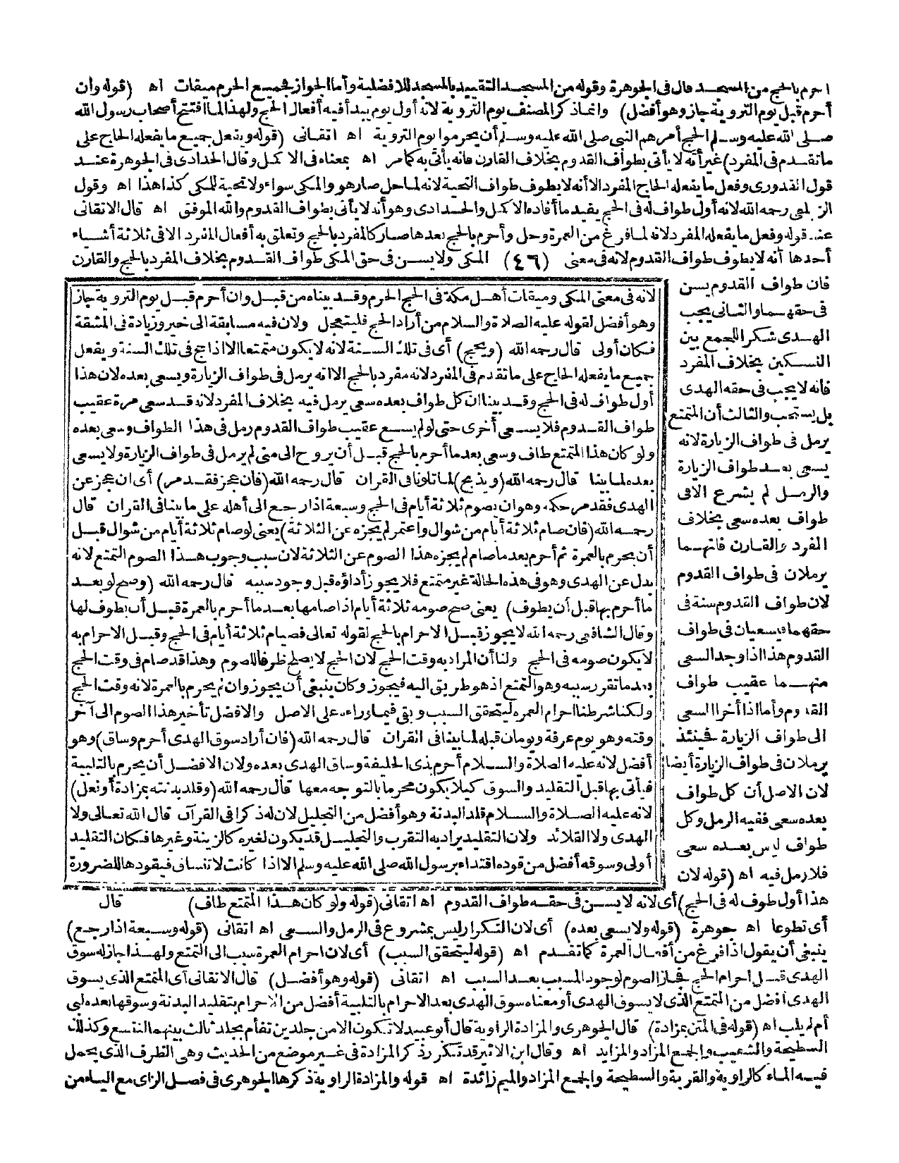 وَالثَّانِي يَجِبُ الْهَدْيُ شُكْرًا لِلْجَمْعِ بَيْنَ النُّسُكَيْنِ بِخِلَافِ الْمُفْرِدِ فَإِنَّهُ لَا يَجِبُ فِي حَقِّهِ الْهَدْيُ بَلْ يُسْتَحَبُّ، وَالثَّالِثُ: أَنَّ الْمُتَمَتِّعَ يَرْمُلُ فِي طَوَافِ الزِّيَارَةِ؛ لِأَنَّهُ يَسْعَى بَعْدَ طَوَافِ الزِّيَارَةِ، وَالرَّمَلُ لَمْ يُشْرَعْ إلَّا فِي طَوَافٍ بَعْدَهُ سَعْيٌ بِخِلَافِ الْمُفْرِدِ وَالْقَارِنِ، فَإِنَّهُمَا يَرْمُلَانِ فِي طَوَافِ الْقُدُومِ؛ لِأَنَّ طَوَافَ الْقُدُومِ سُنَّةٌ فِي حَقِّهِمَا فَيَسْعَيَانِ فِي طَوَافِ الْقُدُومِ هَذَا إذَا وُجِدَ السَّعْيُ مِنْهُمَا عَقِيبَ طَوَافِ الْقُدُومِ، وَأَمَّا إذَا أَخَّرَ السَّعْيَ إلَى طَوَافِ الزِّيَارَةِ فَحِينَئِذٍ يَرْمُلَانِ فِي طَوَافِ الزِّيَارَةِ أَيْضًا؛ لِأَنَّ الْأَصْلَ أَنَّ كُلَّ طَوَافٍ بَعْدَهُ سَعْيٌ فَفِيهِ الرَّمَلُ، وَكُلُّ طَوَافٍ لَيْسَ بَعْدَهُ سَعْيٌ فَلَا رَمَلَ فِيهِ. اهـ. (قَوْلُهُ: لِأَنَّ هَذَا أَوَّلُ طَوَافٍ لَهُ فِي الْحَجِّ) أَيْ؛ لِأَنَّهُ لَا يُسَنُّ فِي حَقِّهِ طَوَافُ الْقُدُومِ. اهـ. أَتْقَانِيٌّ (قَوْلُهُ: وَلَوْ كَانَ هَذَا الْمُتَمَتِّعُ طَافَ) أَيْ تَطَوُّعًا. اهـ. جَوْهَرَةٌ (قَوْلُهُ: وَلَا يَسْعَى بَعْدَهُ) أَيْ؛ لِأَنَّ التَّكْرَارَ لَيْسَ بِمَشْرُوعٍ فِي الرَّمَلِ وَالسَّعْيِ. اهـ. أَتْقَانِيٌّ (قَوْلُهُ وَسَبْعَةً إذَا رَجَعَ) يَنْبَغِي أَنْ يَقُولَ: إذَا فَرَغَ مِنْ أَفْعَالِ الْعُمْرَةِ كَمَا تَقَدَّمَ. اهـ. (قَوْلُهُ لِيَتَحَقَّقَ السَّبَبُ) أَيْ؛ لِأَنَّ إحْرَامَ الْعُمْرَةِ سَبَبٌ إلَى التَّمَتُّعِ؛ وَلِهَذَا جَازَ لَهُ سَوْقُ الْهَدْيِ قَبْلَ إحْرَامِ الْحَجِّ فَجَازَ الصَّوْمُ لِوُجُودِ الْمُسَبَّبِ بَعْدَ السَّبَبِ. اهـ. أَتْقَانِيٌّ (قَوْلُهُ وَهُوَ أَفْضَلُ) قَالَ الْأَتْقَانِيُّ أَيْ الْمُتَمَتِّعُ الَّذِي يَسُوقُ الْهَدْيَ أَفْضَلُ مِنْ الْمُتَمَتِّعِ الَّذِي لَا يَسُوقُ الْهَدْيَ أَوْ مَعْنَاهُ سَوْقُ الْهَدْيِ بَعْدَ الْإِحْرَامِ بِالتَّلْبِيَةِ أَفْضَلُ مِنْ الْإِحْرَامِ بِتَقْلِيدِ الْبَدَنَةِ، وَسَوْقُهَا بَعْدَهُ لَبَّى أَمْ لَمْ يُلَبِّ اهـ