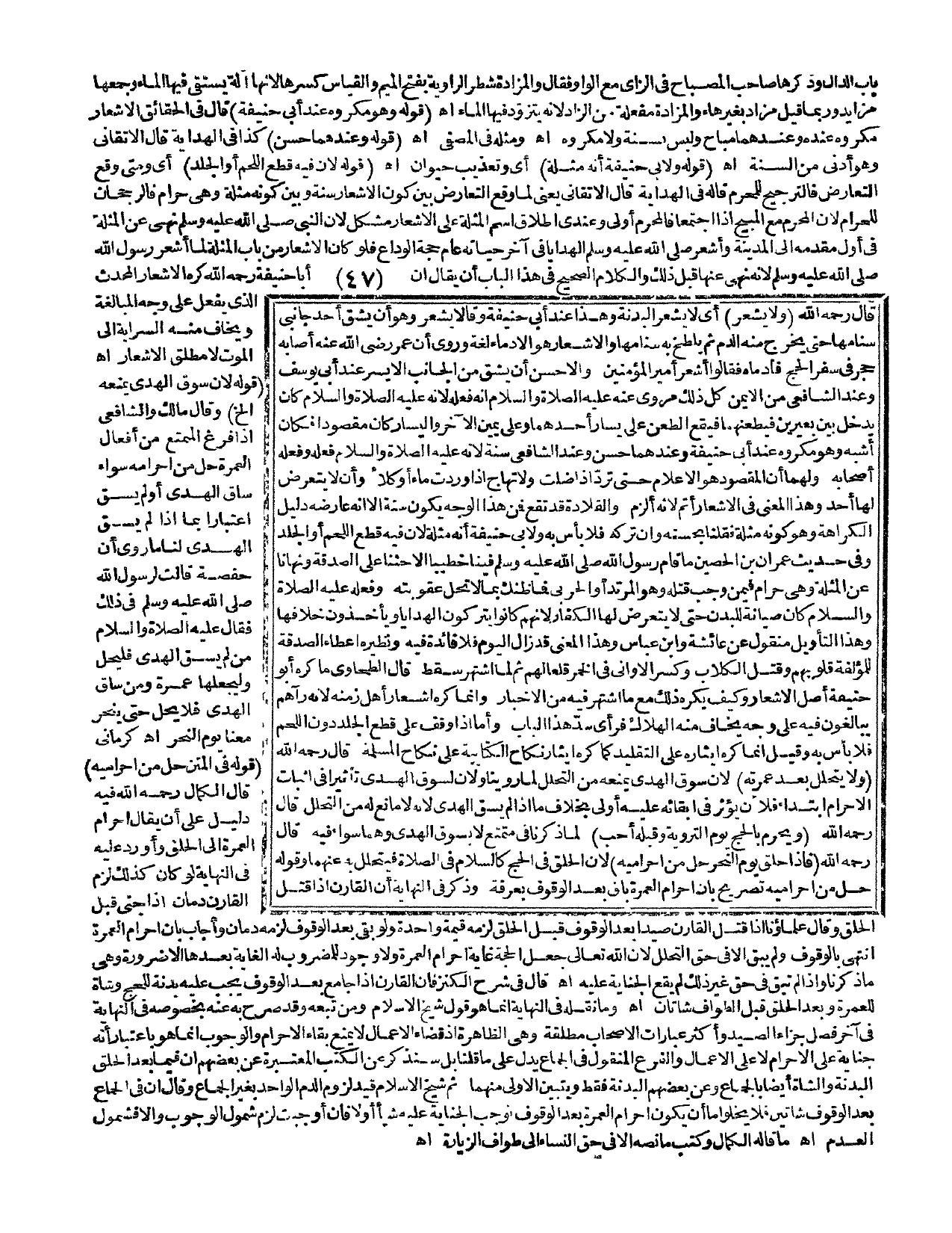(قَوْلُهُ وَلَأَبِي حَنِيفَةَ: أَنَّهُ مُثْلَةٌ) أَيْ وَتَعْذِيبُ حَيَوَانٍ. اهـ. (قَوْلُهُ: لِأَنَّ فِيهِ قَطْعَ اللَّحْمِ أَوْ الْجِلْدِ) أَيْ وَمَتَى وَقَعَ التَّعَارُضُ فَالتَّرْجِيحُ لِلْمُحْرِمِ قَالَهُ فِي الْهِدَايَةِ قَالَ الْأَتْقَانِيُّ: يَعْنِي لَمَّا وَقَعَ التَّعَارُضُ بَيْنَ كَوْنِ الْإِشْعَارِ سُنَّةً وَبَيْنَ كَوْنِهِ مُثْلَةً، وَهِيَ حَرَامٌ فَالرُّجْحَانُ لِلْحَرَامِ؛ لِأَنَّ الْمُحَرِّمَ مَعَ الْمُبِيحِ إذَا اجْتَمَعَا فَالْمُحَرِّمُ أَوْلَى، وَعِنْدِي إطْلَاقُ اسْمِ الْمُثْلَةِ عَلَى الْإِشْعَارِ مُشْكِلٌ؛ لِأَنَّ النَّبِيَّ - صَلَّى اللَّهُ عَلَيْهِ وَسَلَّمَ - «نَهَى عَنْ الْمُثْلَةِ فِي أَوَّلِ مَقْدَمِهِ إلَى الْمَدِينَةِ وَأَشْعَرَ - صَلَّى اللَّهُ عَلَيْهِ وَسَلَّمَ - الْهَدَايَا فِي آخِرِ حَيَاتِهِ عَامَ حَجَّةِ الْوَدَاعِ» فَلَوْ كَانَ الْإِشْعَارُ مِنْ بَابِ الْمُثْلَةِ لَمَا أَشْعَرَ رَسُولُ اللَّهِ - صَلَّى اللَّهُ عَلَيْهِ وَسَلَّمَ -؛ لِأَنَّهُ نَهَى عَنْهَا قَبْلَ ذَلِكَ، وَالْكَلَامُ الصَّحِيحُ فِي هَذَا الْبَابِ أَنْ يُقَالَ: إنَّ أَبَا حَنِيفَةَ - رَحِمَهُ اللَّهُ - كَرِهَ الْإِشْعَارَ الْمُحْدَثَ الَّذِي يُفْعَلُ عَلَى وَجْهِ الْمُبَالَغَةِ، وَيُخَافُ مِنْهُ السِّرَايَةُ إلَى الْمَوْتِ لَا مُطْلَقُ الْإِشْعَارِ. اهـ.