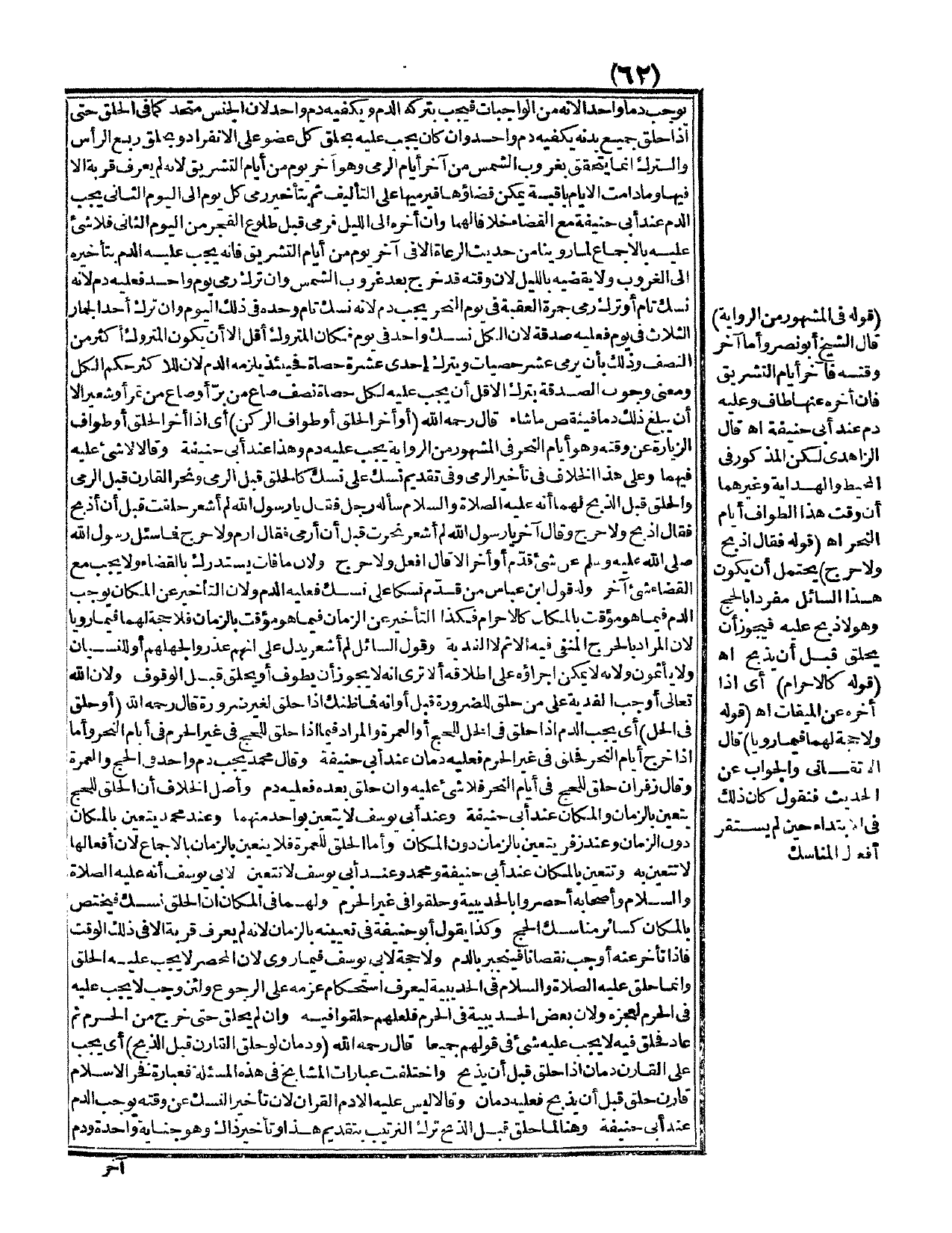 ـــــــــــــــــــــــــــــQقَوْلُهُ فِي الْمَشْهُورِ مِنْ الرِّوَايَةِ) قَالَ الشَّيْخُ أَبُو نَصْرٍ: وَأَمَّا آخِرُ وَقْتِهِ فَآخِرُ أَيَّامِ التَّشْرِيقِ، فَإِنْ أَخَّرَهُ عَنْهَا طَافَ، وَعَلَيْهِ دَمٌ عِنْدَ أَبِي حَنِيفَةَ اهـ قَالَ الزَّاهِدِيُّ: لَكِنَّ الْمَذْكُورَ فِي الْمُحِيطِ وَالْهِدَايَةِ وَغَيْرِهِمَا أَنَّ وَقْتَ هَذَا الطَّوَافِ أَيَّامُ النَّحْرِ. اهـ. (قَوْلُهُ «فَقَالَ: اذْبَحْ وَلَا حَرَجَ») يُحْتَمَلُ أَنْ يَكُونَ هَذَا السَّائِلُ مُفْرِدًا بِالْحَجِّ وَهُوَ لَا ذَبْحَ عَلَيْهِ فَيَجُوزُ أَنْ يَحْلِقَ قَبْلَ أَنْ يَذْبَحَ. اهـ. (قَوْلُهُ كَالْإِحْرَامِ) أَيْ إذَا أَخَّرَهُ عَنْ الْمِيقَاتِ. اهـ. (قَوْلُهُ وَلَا حَجَّةَ لَهُمَا فِيمَا رَوَيَا) قَالَ الْأَتْقَانِيُّ: وَالْجَوَابُ عَنْ الْحَدِيثِ فَنَقُولُ: كَانَ ذَلِكَ فِي الِابْتِدَاءِ حِينَ لَمْ يَسْتَقِرَّ أَفْعَالُ الْمَنَاسِكِ