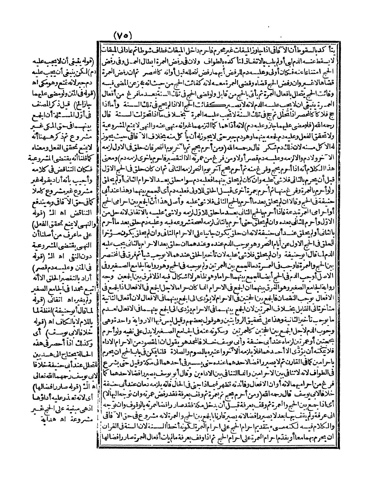 (قَوْلُهُ فِي الْمَتْنِ: وَعَلَيْهِ دَمُ قَصْرٍ) أَرَادَ بِالتَّقْصِيرِ الْحَلْقَ إلَّا أَنَّهُ اتَّبَعَ مُحَمَّدًا فِي الْجَامِعِ الصَّغِيرِ وَلَمْ يُغَيِّرْهُ. اهـ. أَتْقَانِيٌّ (قَوْلُهُ: لِمَا قَالَ أَبُو حَنِيفَةَ) لَفْظَةُ لِمَا بِاللَّامِ لَا بِالْكَافِ. اهـ. (قَوْلُهُ: خِلَافًا لِأَبِي يُوسُفَ) أَيْ وَكَذَلِكَ إذَا أُحْصِرَ فِي هَذِهِ الْحَالَةِ يَحْتَاجُ إلَى هَذَيْنِ لِلتَّحَلُّلِ عِنْدَ أَبِي حَنِيفَةَ خِلَافًا لِأَبِي يُوسُفَ - رَحِمَهُمَا اللَّهُ تَعَالَى اهـ اك