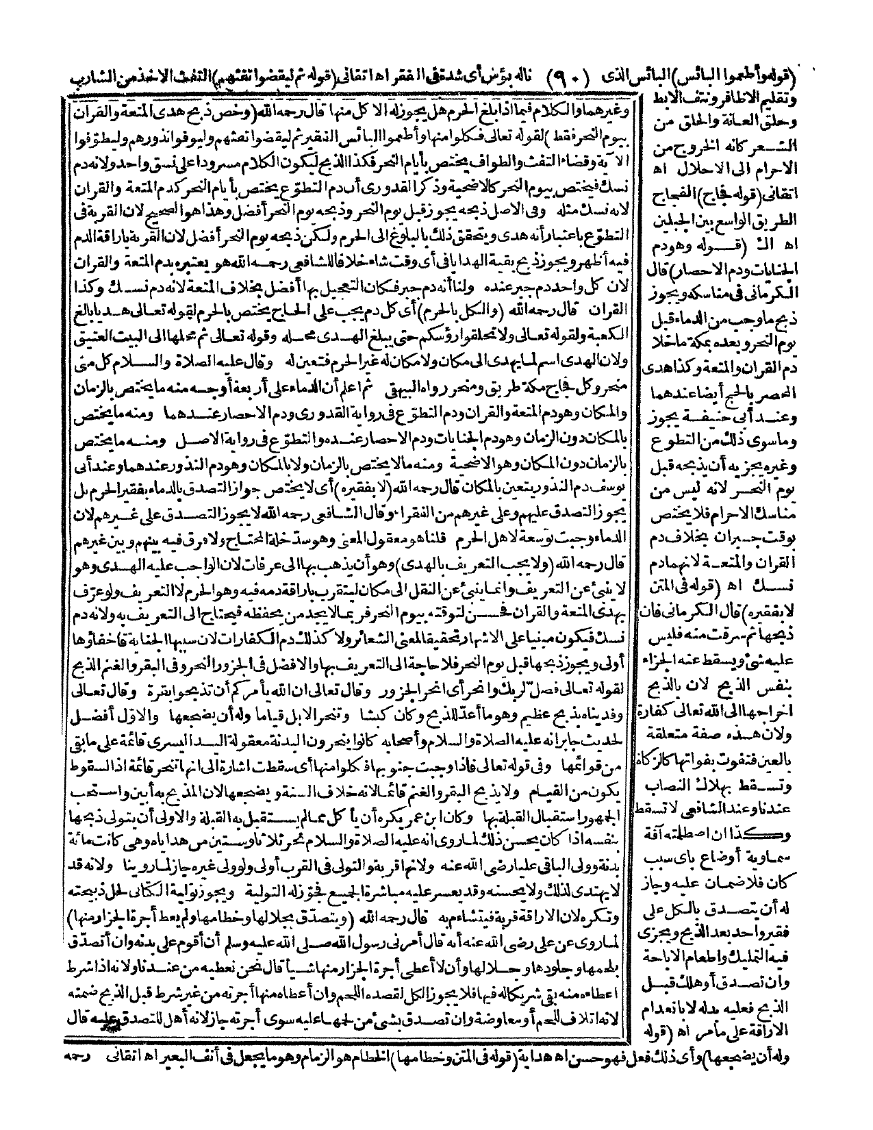 قَالَ - رَحِمَهُ اللَّهُ - (وَالْكُلُّ بِالْحَرَمِ) أَيْ كُلُّ دَمٍ يَجِبُ عَلَى الْحَاجِّ يَخْتَصُّ بِالْحَرَمِ لِقَوْلِهِ تَعَالَى هَدْيًا بَالِغَ الْكَعْبَةِ وَلِقَوْلِهِ تَعَالَى {وَلا تَحْلِقُوا رُءُوسَكُمْ حَتَّى يَبْلُغَ الْهَدْيُ مَحِلَّهُ} [البقرة: 196] وقَوْله تَعَالَى: {ثُمَّ مَحِلُّهَا إِلَى الْبَيْتِ الْعَتِيقِ} [الحج: 33] وَلِأَنَّ الْهَدْيَ اسْمٌ لِمَا يُهْدَى إلَى مَكَان، وَلَا مَكَانَ لَهُ غَيْرُ الْحَرَمِ فَتَعَيَّنَ لَهُ وَقَالَ - عَلَيْهِ الصَّلَاةُ وَالسَّلَامُ - «كُلُّ مِنًى مَنْحَرٌ، وَكُلُّ فِجَاجِ مَكَّةَ طَرِيقٌ وَمَنْحَرٌ» رَوَاهُ الْبَيْهَقِيُّ ثُمَّ اعْلَمْ إنَّ الدِّمَاءَ عَلَى أَرْبَعَةِ أَوْجُهٍ مِنْهُ مَا يَخْتَصُّ بِالزَّمَانِ وَالْمَكَانِ وَهُوَ دَمُ الْمُتْعَةِ وَالْقِرَانِ وَدَمُ التَّطَوُّعِ فِي رِوَايَةِ الْقُدُورِيِّ وَدَمُ الْإِحْصَارِ عِنْدَهُمَا، وَمِنْهُ مَا يَخْتَصُّ بِالْمَكَانِ دُونَ الزَّمَانِ، وَهُوَ دَمُ الْجِنَايَاتِ، وَدَمُ الْإِحْصَارِ عِنْدَهُ، وَالتَّطَوُّعُ فِي رِوَايَةِ الْأَصْلِ وَمِنْهُ مَا يَخْتَصُّ بِالزَّمَانِ دُونَ الْمَكَانِ، وَهُوَ الْأُضْحِيَّةُ، وَمِنْهُ مَا لَا يَخْتَصُّ بِالزَّمَانِ، وَلَا بِالْمَكَانِ، وَهُوَ دَمُ النُّذُورِ عِنْدَهُمَا وَعِنْدَ أَبِي يُوسُفَ دَمُ النُّذُورِ يَتَعَيَّنُ بِالْمَكَانِ قَالَ - رَحِمَهُ اللَّهُ - (لَا بِفَقِيرِهِ) أَيْ لَا يَخْتَصُّ جَوَازُ التَّصَدُّقِ بِالدِّمَاءِ بِفَقِيرِ الْحَرَمِ بَلْ يَجُوزُ التَّصَدُّقُ عَلَيْهِمْ وَعَلَى غَيْرِهِمْ مِنْ الْفُقَرَاءِ وَقَالَ الشَّافِعِيُّ - رَحِمَهُ اللَّهُ -: لَا يَجُوزُ التَّصَدُّقُ عَلَى غَيْرِهِمْ؛ لِأَنَّ الدِّمَاءَ وَجَبَتْ تَوْسِعَةً لِأَهْلِ الْحَرَمِ قُلْنَا: هُوَ مَعْقُولُ الْمَعْنَى، وَهُوَ سَدُّ خَلَّةِ الْمُحْتَاجِ، وَلَا فَرْقَ فِيهِ بَيْنَهُمْ وَبَيْنَ غَيْرِهِمْ