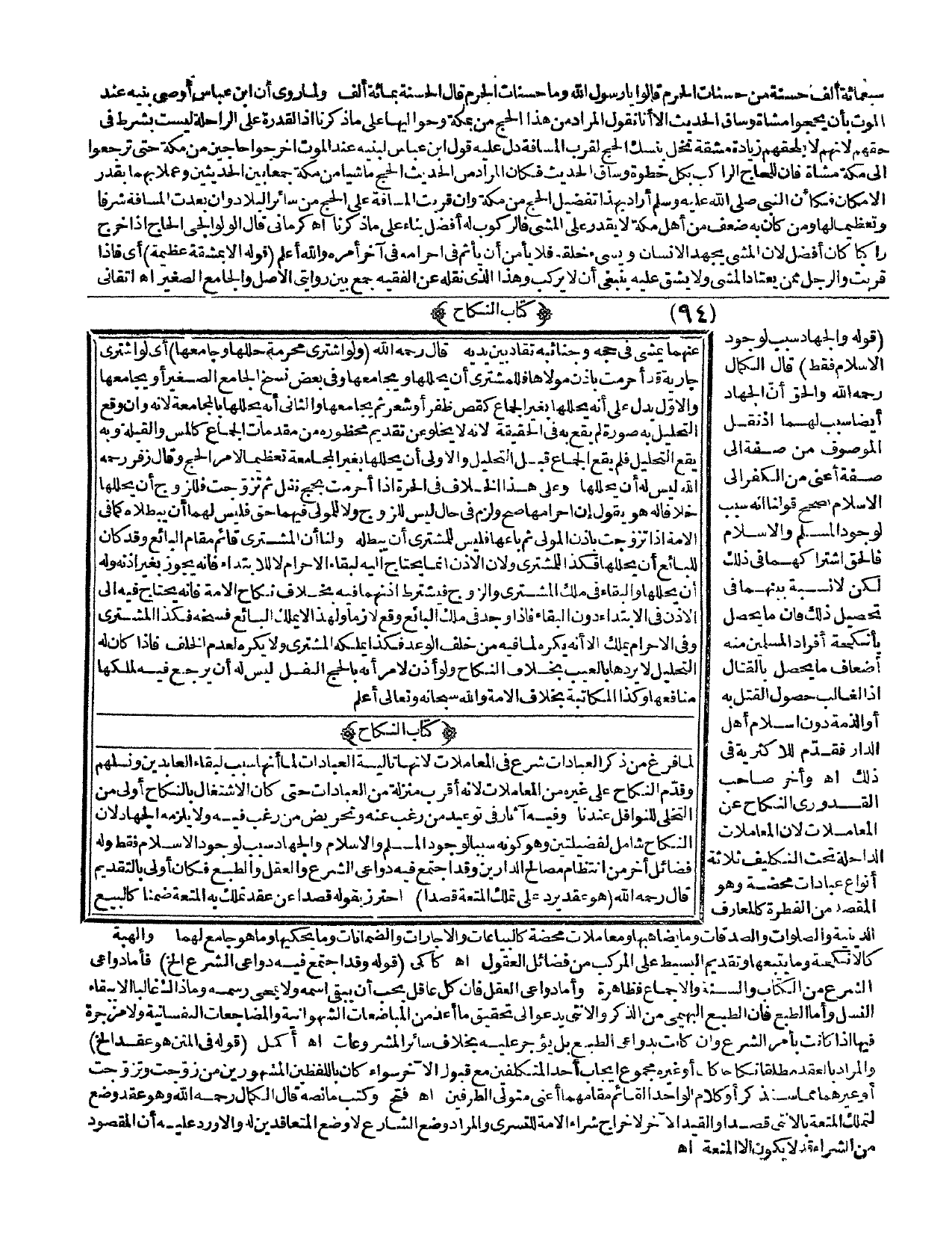 (كِتَابُ النِّكَاحِ) (قَوْلُهُ: وَالْجِهَادُ سَبَبٌ لِوُجُودِ الْإِسْلَامِ فَقَطْ) قَالَ الْكَمَالُ - رَحِمَهُ اللَّهُ -: وَالْحَقُّ أَنَّ الْجِهَادَ أَيْضًا سَبَبٌ لَهُمَا؛ إذْ نَقْلُ الْمَوْصُوفِ مِنْ صِفَةٍ إلَى صِفَةٍ أَعَنَى مِنْ الْكُفْرِ إلَى الْإِسْلَامِ يُصَحِّحُ قَوْلَنَا: إنَّهُ سَبَبٌ لِوُجُودِ الْمُسْلِمِ وَالْإِسْلَامِ فَالْحَقُّ اشْتِرَاكُهُمَا فِي ذَلِكَ لَكِنْ لَا نِسْبَةَ بَيْنَهُمَا فِي تَحْصِيلِ ذَلِكَ فَإِنَّ مَا يَحْصُلْ بِأَنْكِحَةِ أَفْرَادِ الْمُسْلِمِينَ مِنْهُ أَضْعَافُ مَا يَحْصُلُ بِالْقِتَالِ؛ إذْ الْغَالِبُ حُصُولُ الْقَتْلِ بِهِ أَوْ الذِّمَّةِ دُونَ إسْلَامِ أَهْلِ الدَّارِ فَقُدِّمَ لِلْأَكْثَرِيَّةِ فِي ذَلِكَ اهـ وَأَخَّرَ صَاحِبُ الْقُدُورِيِّ النِّكَاحَ عَنْ الْمُعَامَلَاتِ؛ لِأَنَّ الْمُعَامَلَاتِ الدَّاخِلَةَ تَحْتَ التَّكْلِيفِ ثَلَاثَةُ أَنْوَاعٍ عِبَادَاتٌ مَحْضَةٌ، وَهُوَ الْمَقْصِدُ مِنْ الْفِطْرَةِ كَالْمَعَارِفِ الدِّينِيَّةِ وَالصَّلَوَاتِ وَالصَّدَقَاتِ، وَمَا يُضَاهِيهَا وَمُعَامَلَاتٌ مَحْضَةٌ كَالْبِيَاعَاتِ وَالْإِجَارَاتِ وَالضَّمَانَاتِ وَمَا يَحْكِيهَا وَمَا هُوَ جَامِعٌ لَهُمَا كَالْأَنْكِحَةِ وَمَا يَتْبَعُهَا وَتَقْدِيمُ الْبَسِيطِ عَلَى الْمُرَكَّبِ مِنْ فَضَائِلِ الْعُقُولِ. اهـ. كَاكِيٌّ (قَوْلُهُ: وَقَدْ اجْتَمَعَ فِيهِ دَوَاعِي الشَّرْعِ إلَخْ) فَأَمَّا دَوَاعِي الشَّرْعِ مِنْ الْكِتَابِ وَالسُّنَّةِ وَالْإِجْمَاعِ فَظَاهِرَةٌ، وَأَمَّا دَوَاعِي الْعَقْلِ فَإِنَّ كُلَّ عَاقِلٍ يُحِبُّ أَنْ يَبْقَى اسْمُهُ وَلَا يُمْحَى رَسْمُهُ وَمَا ذَاكَ غَالِبًا إلَّا بِبَقَاءِ النَّسْلِ، وَأَمَّا الطَّبْعُ فَإِنَّ الطَّبْعَ الْبَهِيمِيَّ مِنْ الذَّكَرِ وَالْأُنْثَى يَدْعُو إلَى تَحْقِيقِ مَا أُعِدَّ مِنْ الْمُبَاضَعَاتِ الشَّهْوَانِيَّةِ وَالْمُضَاجَعَاتِ النَّفْسَانِيَّةِ وَلَا مَزْجَرَةَ فِيهَا إذَا كَانَتْ بِأَمْرِ الشَّرْعِ، وَإِنْ كَانَتْ بِدَوَاعِي الطَّبْعِ بَلْ يُؤْجَرُ عَلَيْهِ بِخِلَافِ سَائِرِ الْمَشْرُوعَاتِ. اهـ. أَكْمَلُ (قَوْلُهُ فِي الْمَتْنِ: هُوَ عَقْدٌ إلَخْ) وَالْمُرَادُ بِالْعَقْدِ مُطْلَقًا نِكَاحًا كَانَ أَوْ غَيْرَهُ: مَجْمُوعُ إيجَابِ أَحَدِ الْمُتَكَلِّفِينَ مَعَ قَبُولِ الْآخَرِ سَوَاءٌ كَانَ بِاللَّفْظَيْنِ الْمَشْهُورَيْنِ مِنْ زَوَّجْتُ وَتَزَوَّجْتُ أَوْ غَيْرِهِمَا مِمَّا سَنَذْكُرُ أَوْ كَلَامِ الْوَاحِدِ الْقَائِمِ مَقَامَهُمَا أَعْنِي مُتَوَلِّيَ الطَّرَفَيْنِ. اهـ. فَتْحٌ وَكَتَبَ مَا نَصُّهُ قَالَ الْكَمَالُ - رَحِمَهُ اللَّهُ -: وَهُوَ عَقْدٌ وُضِعَ لِتَمَلُّكِ الْمُتْعَةِ بِالْأُنْثَى قَصْدًا، وَالْقَيْدُ الْآخَرُ لِإِخْرَاجِ شِرَاءِ الْأَمَةِ لِلتَّسَرِّي، وَالْمُرَادُ وَضْعُ الشَّارِعِ لَا وَضْعُ الْمُتَعَاقِدَيْنِ لَهُ، وَإِلَّا وَرَدَ عَلَيْهِ أَنَّ الْمَقْصُودَ مِنْ الشِّرَاءِ قَدْ لَا يَكُونُ إلَّا الْمُتْعَةَ اهـ