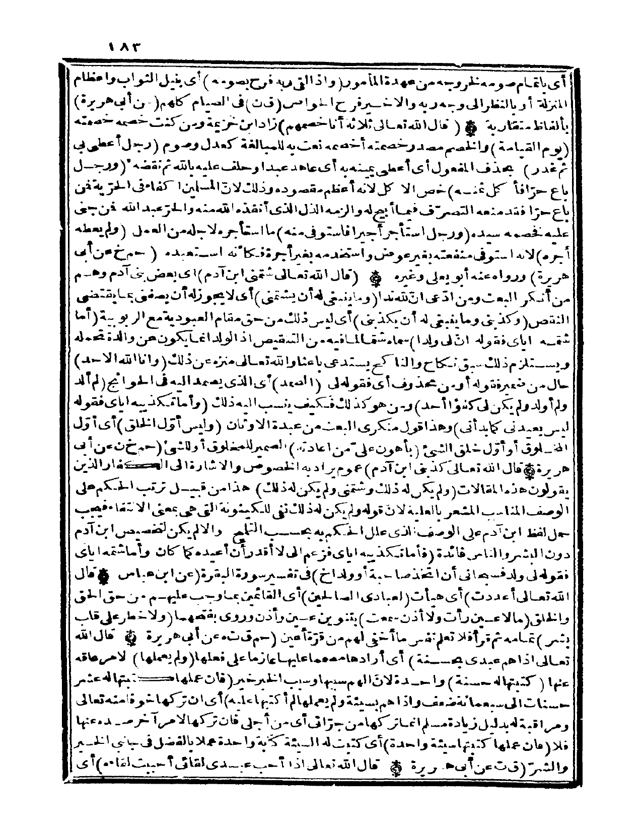 قَالَ الله تَعَالَى كَذبَنِي ابْن آدم) عُمُوم يُرَاد بِهِ الْخُصُوص وَالْإِشَارَة إِلَى الْكفَّار الَّذين يَقُولُونَ هَذِه المقالات (وَلم يكن لَهُ ذَلِك وَشَتَمَنِي وَلم يكن لَهُ ذَلِك) هَذَا من قبيل ترَتّب الحكم على الْوَصْف الْمُنَاسب الْمشعر بالعلية لِأَن قَوْله وَلم يكن لَهُ ذَلِك نفي للكينونة الَّتِي هِيَ بِمَعْنى الانتفاء فَيجب حمل لفظ ابْن آدم على الْوَصْف الَّذِي علل الحكم بِهِ بِحَسب التلميح وَإِلَّا لم يكن لتخصيص ابْن آدم دون الْبشر وَالنَّاس فَائِدَة (فَأَما تَكْذِيبه إيَّايَ فَزعم إِلَى لَا أقدر أَن أُعِيدهُ كَمَا كَانَ وَأما شَتمه إيَّايَ فَقَوله لي ولد فسبحاني أَن اتخذ صَاحبه أَو ولد أَخ) فِي تَفْسِير سُورَة الْبَقَرَة (عَن ابْن عَبَّاس